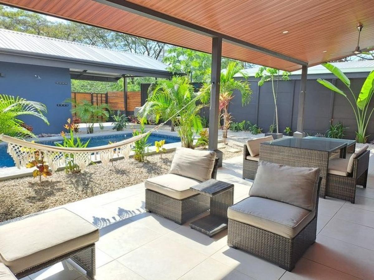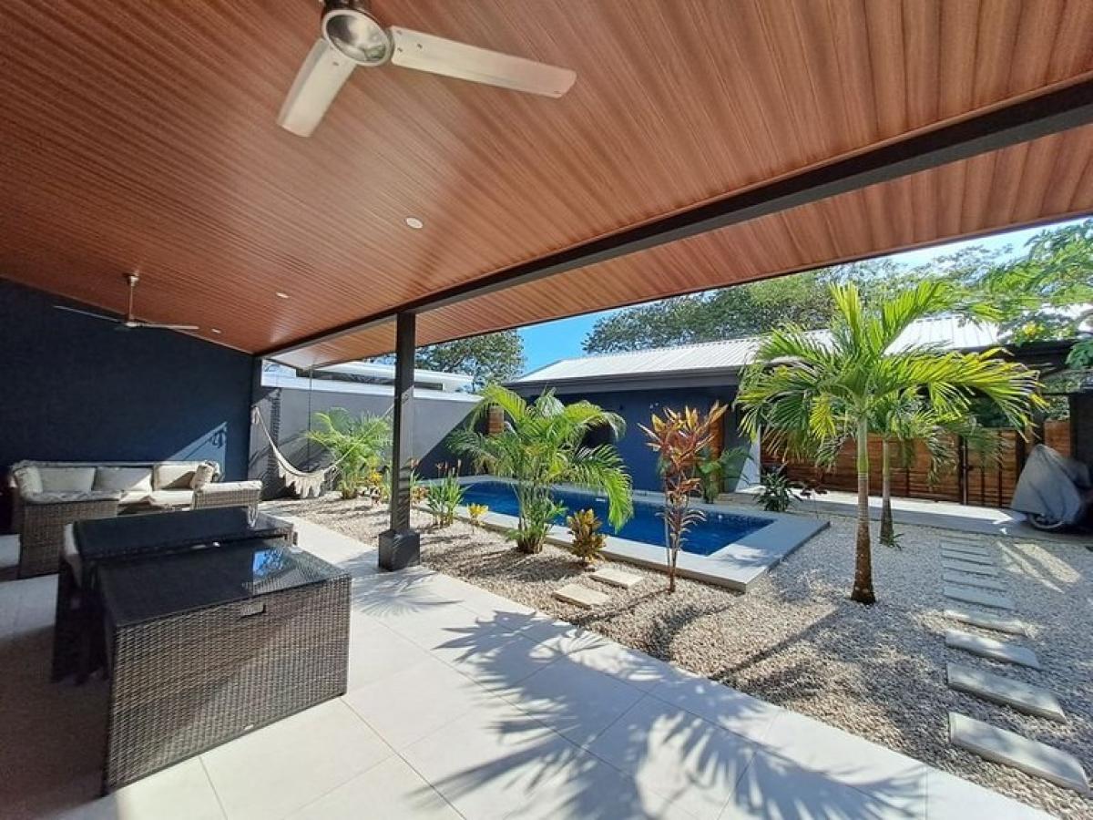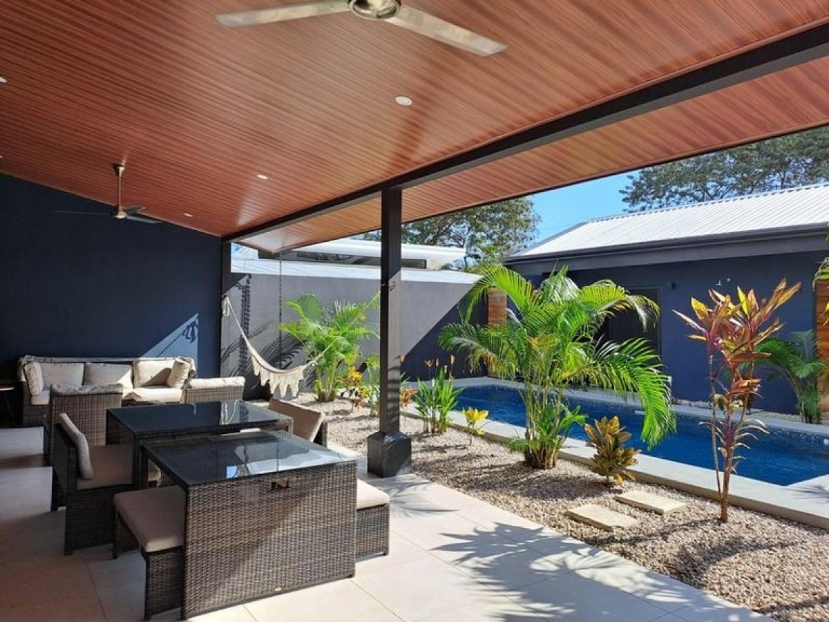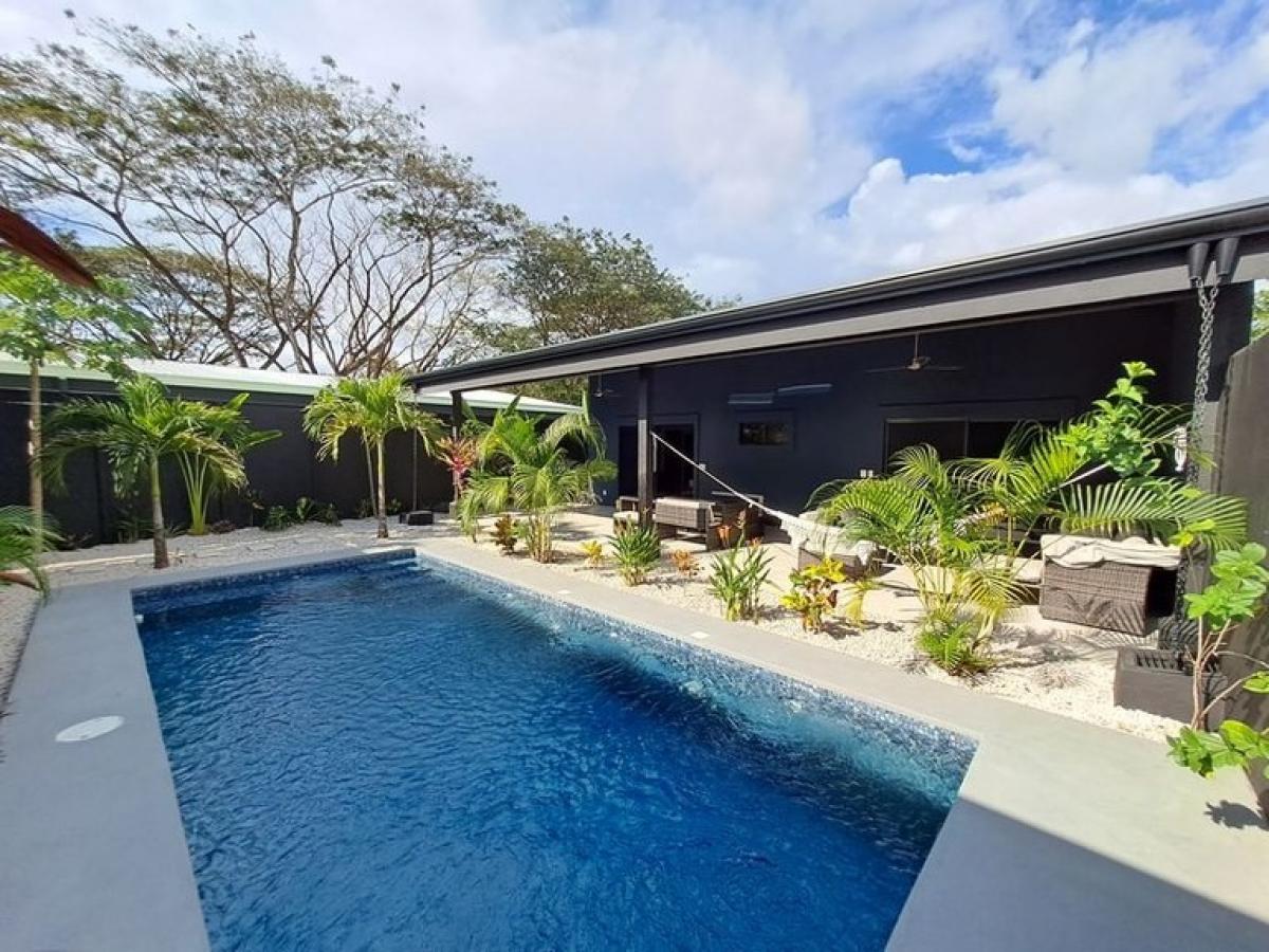 Entering Casa Nueva is like waking from a beautiful dream, upon stepping foot onto this property through its solid exterior gate one is welcomed by a mosaic of alternating blue tiles set within the 21 square meter private pool, stylish hardscape and low maintenance garden surrounds the relaxing outdoor lounge area with overstuffed outdoor sofas all of which combines to create a memorable dreamy setting, mornings, afternoons and all through the night. Casa Nueva is located in the most popular and sought after neighborhood in Playa Samara, Canton de las Gavilanes, the property is a few minute walk to the sandy shores of Playa Samara Beach and all the amenities, shops, restaurants and bars available in Down Town Samara. Whether you desire to lounge by the pool, ascend the rock climbing wall, zip line with your kids or join in on the many water sports at Playa Samara Beach you will always have something to keep you busy or the perfect spot to do nothing at all? Casa Nuevas floor plan was painstakingly designed by an experienced architect that maximized the 355 m2 lot to include a main house with 3 spacious bedrooms and a large shared bathroom with dual sinks, an open concept Kitchen ? Dining and Living room / Lounge area that is illuminated by floor to ceiling laminated sliding glass doors, recessed lighting throughout the vaulted ceilings and multiple well placed windows. The main house is 121 m2 and the detached poolside casita offers its own private en suite bathroom and ample kitchenette with refrigerator including a large countertop space and sink, all within 24 m2 living space, not to mention a private balcony accessible through a large sliding glass door that frames the poolside. Casa Nueva includes 5 wall mounted air conditioning units, one in each bedroom and 8 total ceiling fans to help cool the property inside and out. The large outdoor covered patio lounge area is 4 meters x 11 meters and runs the length of the main house, it is tastefully decorated with overstuffed designer outdoor sofas, glass covered dining and card tables with hideaway seating, hammocks and plenty of extra space to walk and socialize with family and friends. This home currently enjoys Cable Tica high speed Internet and Television, on demand hot water and boasts Samsung Stainless Steel Refrigerator with filtered water dispenser and remaining 9 Year warranty, Samsung Stainless Steel 6 Burner Gas Stove with Commercial grade grates, double deep well stainless steel sink with retractable faucet, and floating thick wood slab kitchen shelving. The property is conveyed fully furnished with the exception of the kid?s bunk beds and some personal artwork. The 7 meter by 3 Meter Saltwater pool is about 1.4 meters deep and separates the main house from the detached 24 meter Casita designed for the highest possible future Airbnb income and to allow multiple families or in laws to vacation together on this property and enjoy their privacy. There is an exterior security camera facing the street which allows for smartphone monitoring and a secure double entry front gate as well fully fenced concrete wall surrounding and securing Casa Nueva 24/7. Please contact us today to inquire further about this property or to schedule your own private tour and showing of Casa Nueva in the heart of Gavilanes
