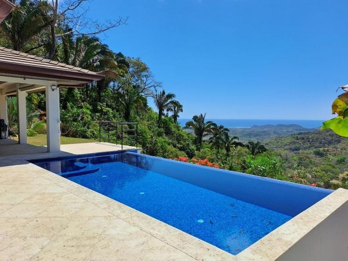 Villa Tucancillo owes its name to the toucans that frequent the property. Along with other exotic species of birds, they are attracted by the abundance of fruit trees, such as the mango, citrus, avocado, cashew and soursop. Together with the coral trees, the plumerias and the aromatic ylang-ylang, they make up a rich biodiversity that is the absolute delight of the numerous butterflies and hummingbirds that visit. Villa Tucancillo sits at the top of the secure Residence Montana and offers an impregnable view of the Pacifc Ocean, emanating a strong sense of serenity and tranquility. The villa is only an eight minute drive from the paved public road leading to the town of Samara. A further eight minutes gets you to its centre, with all its shops, restaurants, bars and the diverse water sports available at the Playa Samara. Villa Tucancillo welcomes its guests along a private driveway leading up to the property. Built on a plot of 5000 m2 of land, the villa is a premium quality construction with over 200 m2 of livable space. It has been designed and constructed by professional and demanding architects and builders, with the goal of minimising maintenance needs.The insulated thick concrete roof and glass wool ensure an excellent thermal insulation, maintaining freshness all year long, so that air conditioning is not necessary, whilst the Mexican terra cotta tiles produce an excellent phonic insulation. Hot water is supplied by two on-demand heaters, independently supplying the bedrooms (and their ensuite bathrooms), as well as the laundry room and kitchen. The kitchen itself is fully equipped with high quality appliances: a Frigidaire fridge, a four-burner gas stove below an exhaust fan, a microwave, an electric oven, a dishwasher, and a large and deep kitchen sink with a retractable tap. The kitchen opens to a vast dining room that itself opens to the outside deck through large sliding glass doors. Villa Tucancillo comprises two ensuite bedrooms and one guest toilet. The master bedroom has a king-size bed and plenty of natural light thanks to sliding glass doors. Its ensuite contains a "rain-effect" shower, a toilet, a bidet, and a granite sink.The second bedroom contains two single beds that can be placed together to make up one king-size bed. The second living room presents a perfect opportunity, if needed, to be converted into a third bedroom accessing the external deck, the infinity pool and the magnificent view on the ocean. It can also have its own ensuite. The 45 m2 terrace has a dining table for 6-8 persons and a large couch. It surrounds the sides and back of the house with access to the 7mx3.5m infinity pool. Once inside the pool, it is impossible to distinguish between the blue pool water and the distant ocean. The gravel courtyard at the front of the house can easily accommodate 4 vehicles, allowing the family and its guests to take full advantage of everything this haven of peace has to offer.