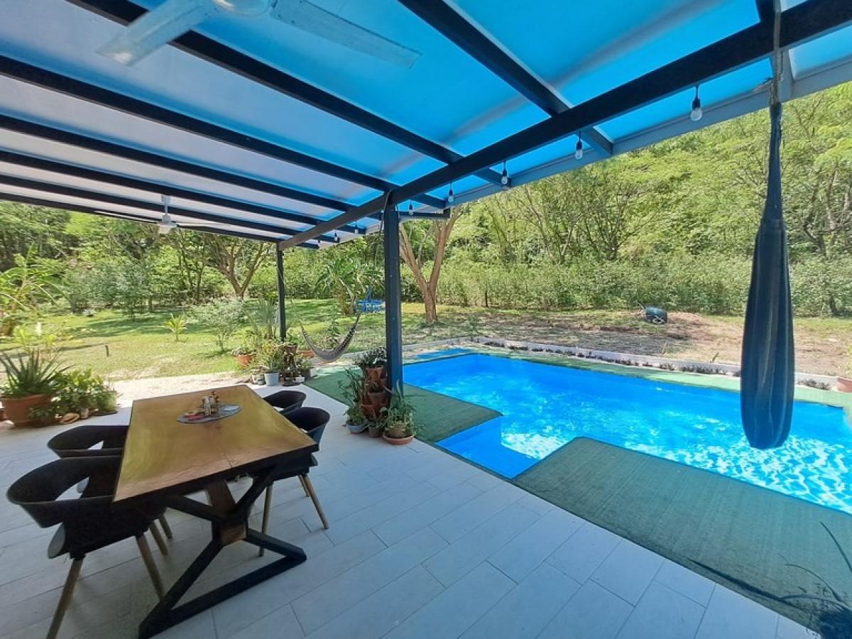 NEW LISTING! Casa Jungla Seca is located in Pueblo Buena Vista and has been constructed at the rear of its large lot - set back and away from the road that leads one to Down Town Samara in 10 minutes by vehicle, with all its amenities like, Shops, Restaurants, Bars, Groceries and Banks as well as the multiple Water Sports available on the White Sandy Shores of Playa Samara Beach. The Dream - Casa Jungla Seca is a uniquely designed 4 Bedroom property that offers 4 Entrances to the home, with Private Entrances for Two Master Bedrooms with En - suite Bathrooms, allowing Married Children or Multiple Couples to live comfortably amongst Family and Friends. Its large grass yard welcomes local horses as they graze and you and your family enjoy the Backyard Pool. The homes location at the rear of the lot and just below the properties Tree Line creates privacy from the road and extra refreshing breezes full of freshly created Oxygen from the numerous species of green vegetation and trees bordering the lot. Imagine the quality of life your family would experience while Tiki Torches are well lit around the garden at night as your family enjoys an evening Pool Party and BBQ ? Casa Jungla Seca?s 4 bedrooms and spacious living room allow up to 8 guests to comfortably rest in Tranquility and Peace - resulting from its unique floor plan and surrounding greenery. With over 6,660 square meters of flat and gently rolling land, Casa Jungla Seca beckons ones creativity in utilizing this parcel for outdoor sports, crafts, gardening or whatever you can dream up. 8 Ceiling Fans and 5 Air Conditioning units throughout the property guarantee cool summers and fresh flowing air the rest of the year through its floor to ceiling glass panel retractable wall that opens to the exterior covered deck and pool. Casa Jungla Seca is a 180 m2 / 1937 sq ft home worth exploring for a large extended family or one or more groups of friends to share and enjoy for years to come? Please contact us today to inquire further about Casa Jungla Seca and for your private showing of this property and its spacious lot