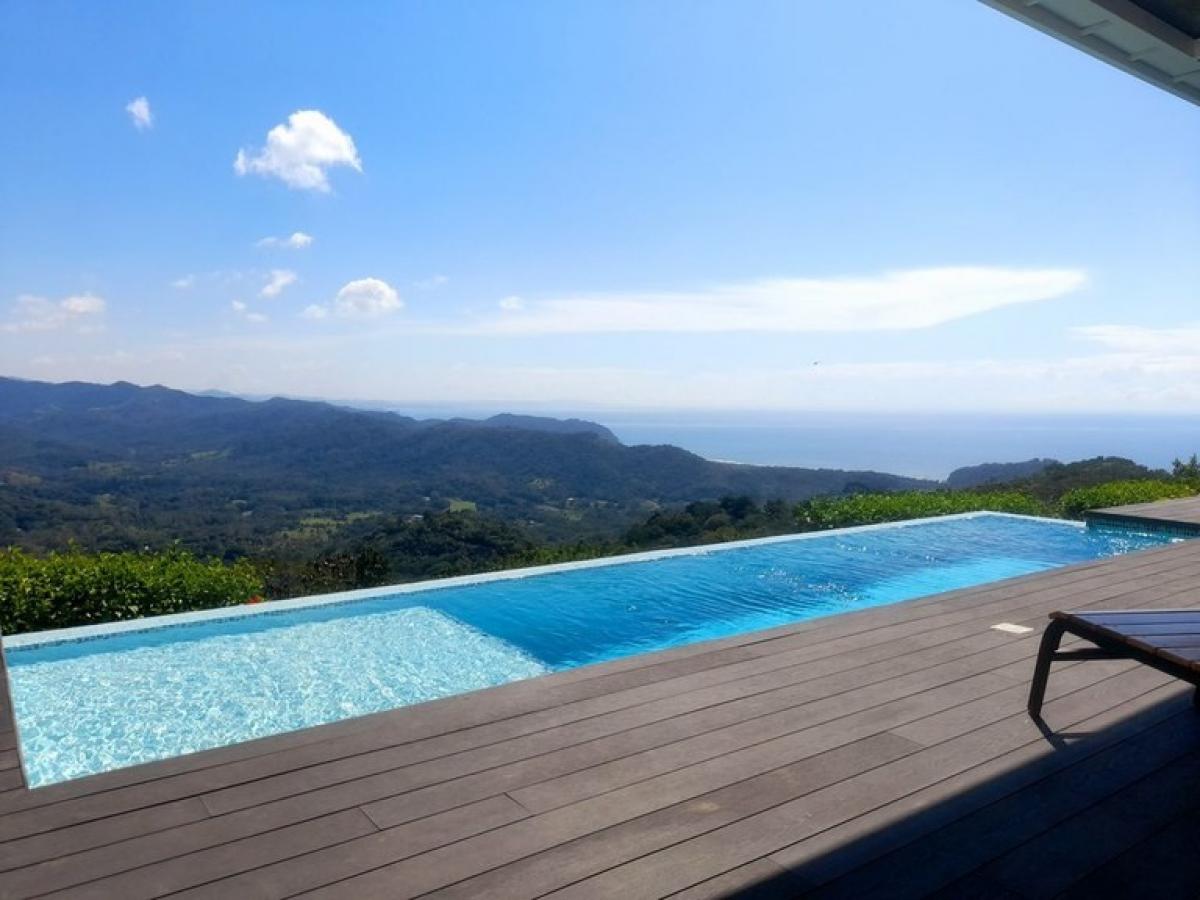 Casa Ying Yang is a newly constructed 2 story home located within an exclusive and luxurious community directly above Play Carrillo. This property is minutes away from the white sandy shores of Playa Carrillo Beach and all the amenities, shops and restaurants of Down Town Samara as well as the water sports on Playa Samara Beach. Casa Ying Yang boasts a spacious 2637 square feet of covered living space with 3 bedrooms and 3.5 bathrooms on two stories accentuated by large Moroccan floor statues, 7 - piece colored chandeliers, 78 inch Smart TV, Quartz White Diamond kitchen countertops, six total wall to ceiling sliding glass doors, 3 of which are enormous tri - paneled, and finally a full glass wall that retracts in 4 panels to display the infinity pool and Panoramic Ocean Views from the welcoming, oversized and properly angled solid wood entry door, viewed as well from throughout the entire living room lounge area. The Master Bedroom is the sole bedroom on the main floor of the home and has been strategically placed on its own wing providing privacy and seclusion, once within the Master, dual hidden wooden pocket doors reveal the walk in closet with more storage space for clothes than is necessary, then leading one into the master bathroom, a sight to see, with frosted glass double French doors which uncover a multi person Rain Shower with hand held shower wand - dual master bath sinks reflected by a huge vanity mirror. The Master Bedroom boarders the grey colored composite paneled deck with access from one of the aforementioned floor to ceiling laminated glass sliding doors which are designed to provide protection and security.