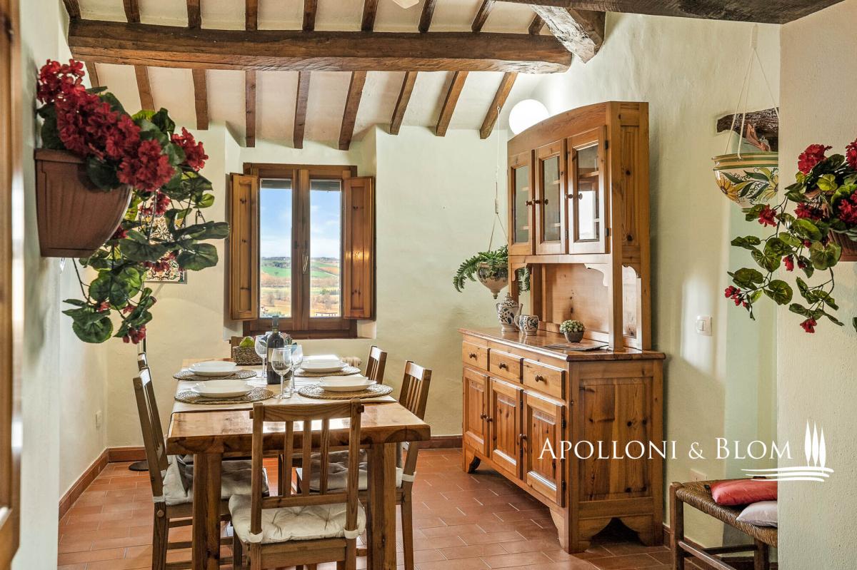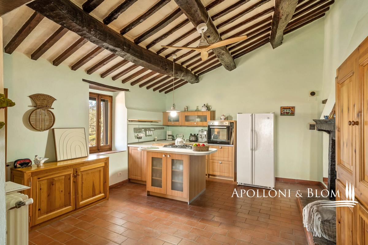 Prime location, historic farmhouse tastefully renovated with solar energy, swimming pool, two outbuildings, and olive grove, for sale in Paciano. Set amid the softly rolling countryside of western Umbria, just outside the medieval hill town of Paciano, this finely restored casale enjoys a prime position moments from the shimmering shores of Lake Trasimeno and only a short drive from the Tuscan border. The approach is quintessentially Umbrian, along a scenic gravel road that winds through fields and olive groves before opening onto a private driveway that leads discreetly to the property. Dating back to1700 and comprehensively restored in 2024, the two-storey stone house offers 396 square meters (4,260 sq ft) of living space, complemented by two traditional annexes providing a further 60 square meters (650 sq ft). Great care has been taken to preserve the authentic character of the building while introducing modern comfort and efficiency, including a 3 kW photovoltaic system and an electric car charging station. The interiors are arranged to allow flexibility of use. The principal accommodation unfolds on the first floor with generous, light-filled rooms, including a welcoming kitchen centred around a large fireplace, elegant dining and a living room, two bedrooms and two bathrooms; on the ground floor a study, a thrid berdoom and a bathroom and a study. On the garden level, independent entrances lead to a cellar, deposit rooms, and to a one-bedroom guest apartment, making the property equally suited to private use or hospitality. The grounds extend to 1.6 hectares (4 acres), landscaped to blend seamlessly with the surrounding landscape and planted with an established olive grove. At the heart of the garden lies a striking swimming pool designed for long summer days overlooking the Umbrian hills. All essential services are within easy reach, at just over 3 km from the property. This is a refined Umbrian retreat, offering tranquillity, privacy and timeless rural beauty, with Lake Trasimeno, Tuscany and some of central Italy’s most celebrated towns close at hand. PROPERTY Ref: PAC3508 Location: Paciano, Province: Perugia, Region: Umbria Type: 396 sq m/4250 sq ft two-story country house finely restored with swimming pool, 2 annexes for further 60 sq m/650 sq ft of surface and an olive grove Year of construction: 1700 Year of restoration: 2024 Conditions: excellent Land/Garden: 1,6 hectares/4 acres including landscaped garden and an olive grove Swimming pool: 13x3,8m featuring a Roman-style step and a paved sundeck Utilities: Fixed telephone network: available Internet: available Heating: LPG Water: mains city supply + 3000 liters cistern for the swimming pool; 1 artesian well not owned by the property with right of use Electricity: active + 3kW photovoltaic system + electric car charging station Distance from services: 3,5km Distance from main airports: Perugia 55 km Gravel road: 900 mt Layout: Casale: Apartment 1 - First floor: entrance, kitchen with large fireplace and access to the dining room, living room, 1 bedroom, large hallway, 2 bathrooms, and 1 double bedroom; Ground Floor: hallway, study, and 1 single bedroom Ground Floor: with independent entrances from the garden: 1 cellar, 1 large storage room/utility room, 1 closet; Apartment 2: living room, 1 double bedroom and 1 bathroom Annex 1: 2 large rooms used as storage/tool shed Annex 2: storage room (for pool equipment)- bathroom