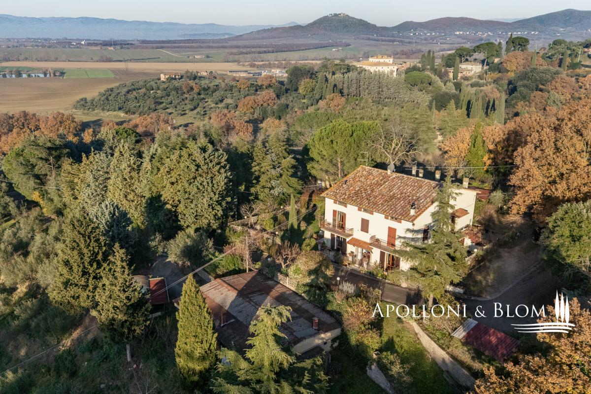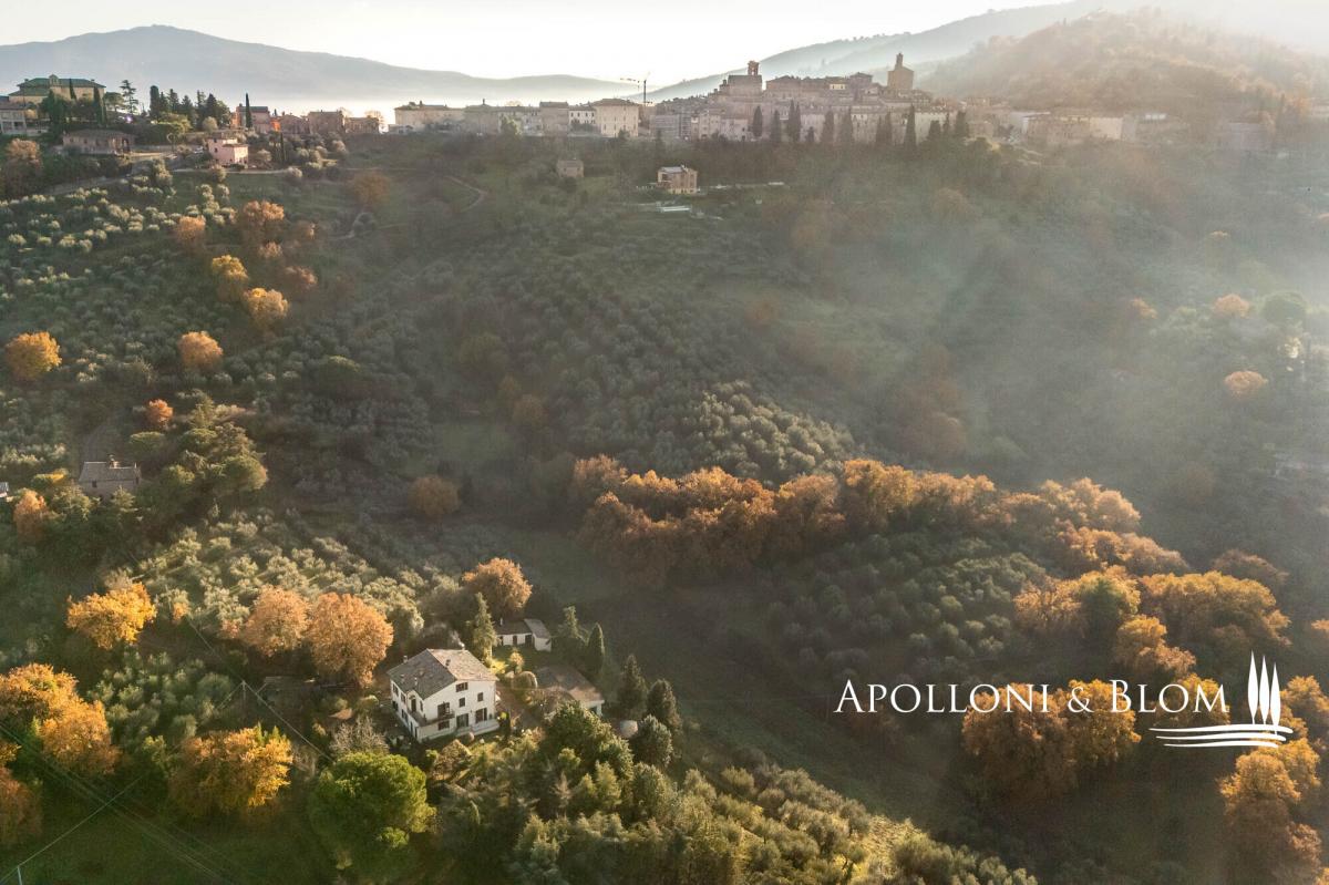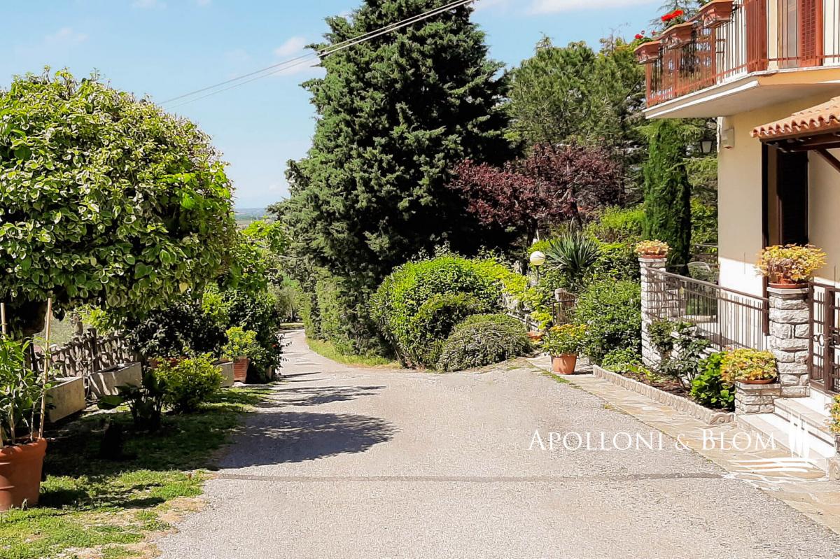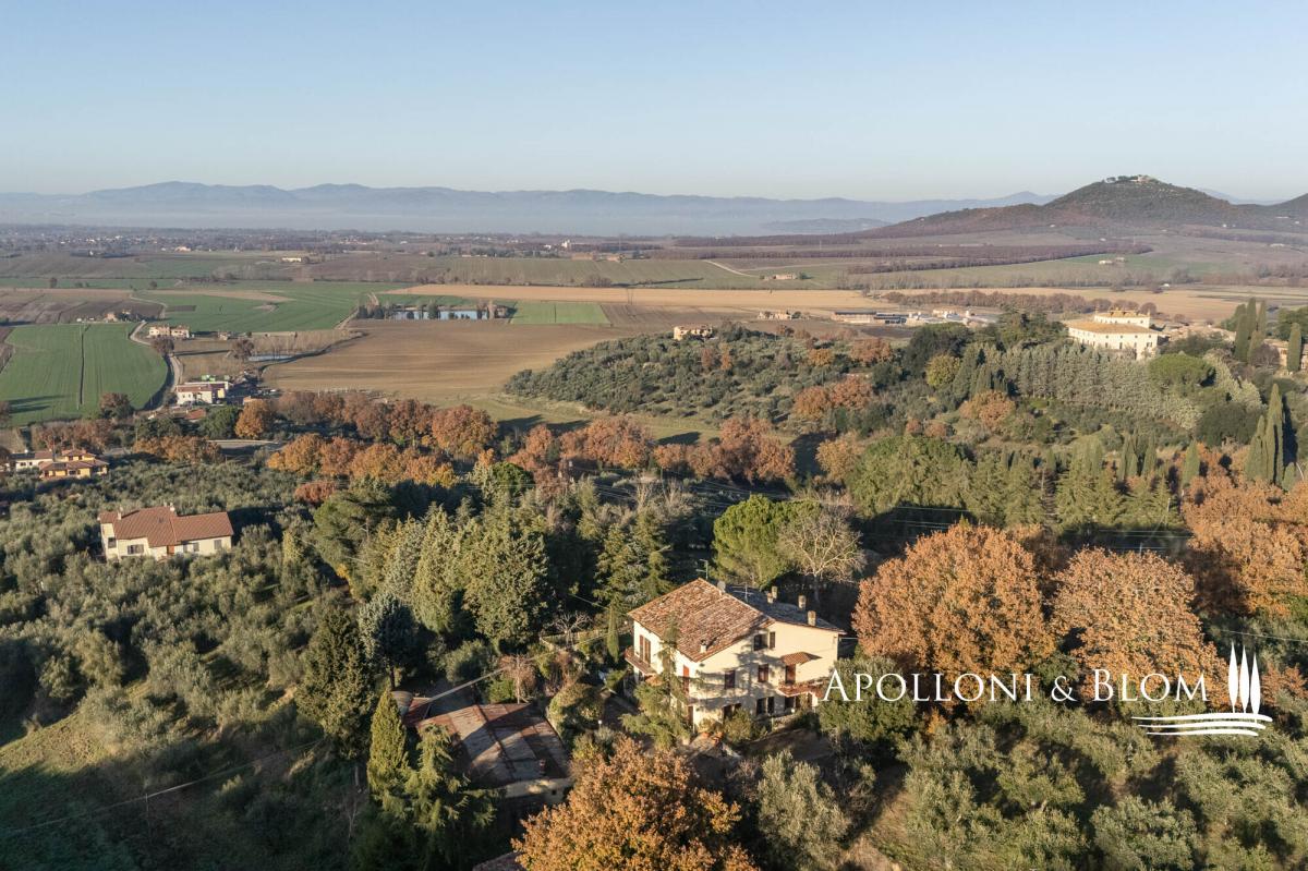A classic Umbrian home with outstanding views, great potential, on three levels, annex with double garage, for sale in Panicale. Set on a panoramic hillside overlooking the Umbrian countryside and the shores of Lake Trasimeno, this villa offers the opportunity to upgrade and tailor your new home in an exceptional setting, just 600 metres on foot from the historic Borgo of Panicale and uninterrupted views. The three-storey house extends to 372 square metres (4004 sq ft), partially renovated in 2005, and features bright interiors with stone arches, fireplaces and balconies on all sides framing the landscape. Currently arranged as two independent apartments, it can easily be reconfigured as a single elegant residence or adapted into guest quarters for tourist accommodation or rentals. The structure is in good condition, and offers clear scope for contemporary upgrading. Set within 1.38 hectares of grounds with garden and the possibility of creating a swimming pool, it stars an olive grove in full production and a total of 229 square metres (2464 sq ft) of separate barns including a double garage, storage rooms, cellar and bread oven. Apolloni Blom stand ready to assist at every stage, drawing on a trusted local network of architects, designers and constructors. From initial design concepts to complete turnkey delivery, we offer the local expertise to transform this lake-view villa into a bespoke home perfectly attuned to its extraordinary setting. PROPERTY Ref: PAN3462 Location: Panicale, Province: Perugia, Region: Umbria Type: 372 sq m/4004 sq ft three-story detached house with panoramic balconies on all sides, annex with garage, and 1.38 hectares/3,4 acres of grounds with garden, possibility of building a swimming pool and olive grove Year of construction: 1960s Year of restoration: part renovated in 2005 Conditions: good Garden: 1,38 hectares/3,4 acres of grounds with garden, possibility of building a swimming pool and olive grove Terrace/Balcony: 4 balconies on the first floor, 1 terrace on the ground floor Parking: outdoor parking facility and separate double garage Annexes: 229 sq m/2464 sq ft i total including a barn with a double garage, deposit rooms, cellar and bread oven Utilities: Fixed telephone network: available Internet: available Heating: LPG Water: mains city supply Electricity: available Water waste: mains city connection Wooden window frames with double glazing Distance from services: 600 meters Distance from main airports: Perugia 45 km, Roma 190 km- garden