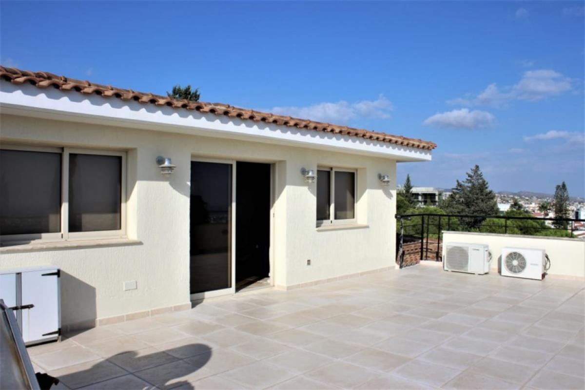 A 4+1 bedroom detached villa for sale in Panthea, Limassol. The property is located in a quiet neighborhood next to a park and large green area. There are sea views from all levels and a short drive to local amenities. There are mature gardens on a 700sqm plot with room for a pool, well and irrigation for garden. The house is split over 3 levels with underfloor heating on all. There is 1 large bedroom downstairs currently being used as an office, 3 on the first floor and 1 on the upper level with kitchenette and en-suite. There is a family bathroom with jacuzzi, separate kitchen with family room and formal open plan dining and living areas.A A A