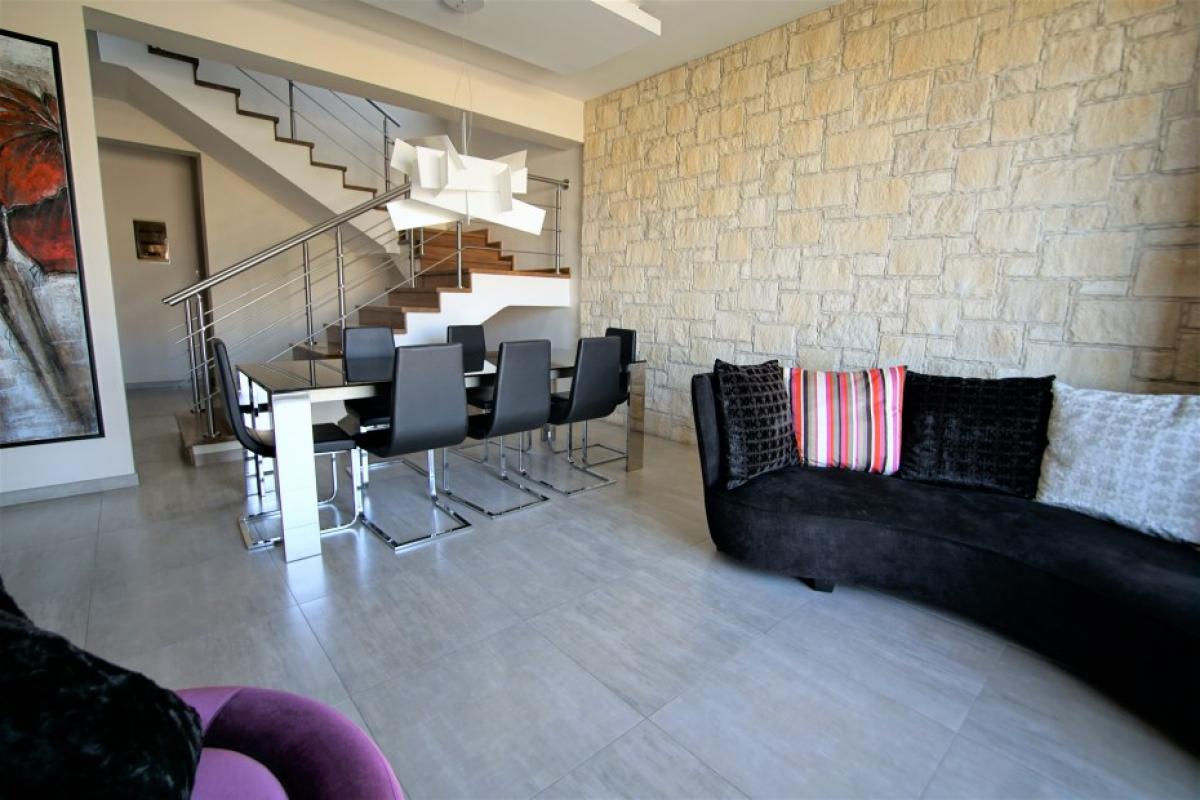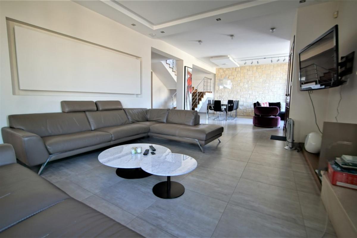 A spacious 4 bedroom detached house for sale in Panthea, Limassol. It is located in a quiet residential area on a hill, with Limassol city and sea views. All necessities are nearby and are just a short drive to the beaches and center. The house is split into 3 levels. The ground level consists of a big living room with a dining and seating area, separate kitchen, office, and guest WC. The first level has 4 bedrooms with a master en suite and walk-in closet, family bathroom, and balconies. The basement offers 100sqm of space with a separate room and WC with shower. Parking for 2 cars, storage space, and provision for another studio. The garden around has an automated watering system and bbq area. Perfect for a big or growing family!