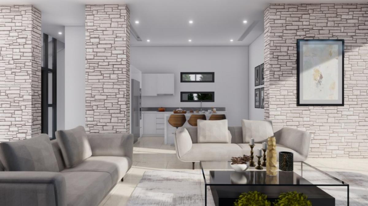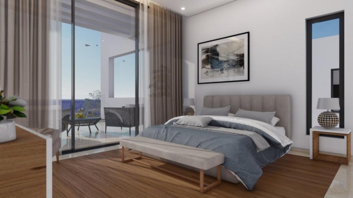 Nesting on a hillside in the St. George area, the project is set in a spectacular panoramic location offering breathtaking sea views of one of the most beautiful and unspoiled areas of the island. This luxury project consists of 9 two-story independent villas with 3 bedrooms and a private pool each, located within a convenient 5-mins walking distance from the nearest beach. Throughout, the view enhances those stunning villas, but it is the interior bespoke design, which reflects the ambience of those views. The concept of the floor plan design capitalizes on the astounding sea views, and its modern aesthetic honors the natural surrounding elements with the use of generous glazing that allows the natural sunlight into the home. The interior of each villa is organized into two levels. On the ground floor, there is the main living area with large floor-to-ceiling windows, a well-equipped open space kitchen, and a welcoming dining area. The three bedrooms with en suite bathrooms are spread on the ground and first floor. The en-suite dressing room and walking closet add a touch of luxury and serve the modern needs for functionality and comfort. To make this project even more impressive, the exterior areas are dominated by the imposing spacious pool surrounded by sunbeds and sitting and dining areas that offer the feeling of enjoyment and relaxation throughout the day and the night.A Delivery-December 2024