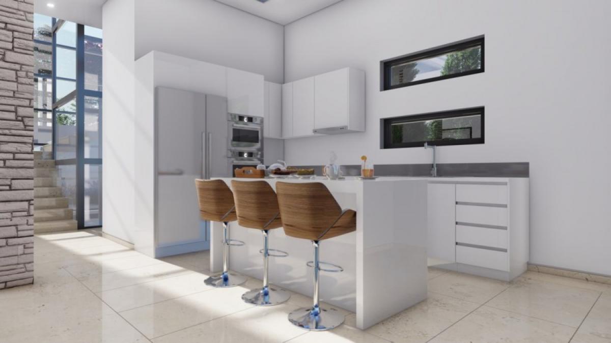 Nesting on a hillside in the St. George area, the project is set in a spectacular panoramic location offering breathtaking sea views of one of the most beautiful and unspoiled areas of the island. This luxury project consists of 9 two-story independent villas with 3 bedrooms and a private pool each, located within a convenient 5-mins walking distance from the nearest beach. Throughout, the view enhances those stunning villas, but it is the interior bespoke design, which reflects the ambience of those views. The concept of the floor plan design capitalizes on the astounding sea views, and its modern aesthetic honors the natural surrounding elements with the use of generous glazing that allows the natural sunlight into the home. The interior of each villa is organized into two levels. On the ground floor, there is the main living area with large floor-to-ceiling windows, a well-equipped open space kitchen, and a welcoming dining area. The three bedrooms with en suite bathrooms are spread on the ground and first floor. The en-suite dressing room and walking closet add a touch of luxury and serve the modern needs for functionality and comfort. To make this project even more impressive, the exterior areas are dominated by the imposing spacious pool surrounded by sunbeds and sitting and dining areas that offer the feeling of enjoyment and relaxation throughout the day and the night.A Delivery-December 2024A