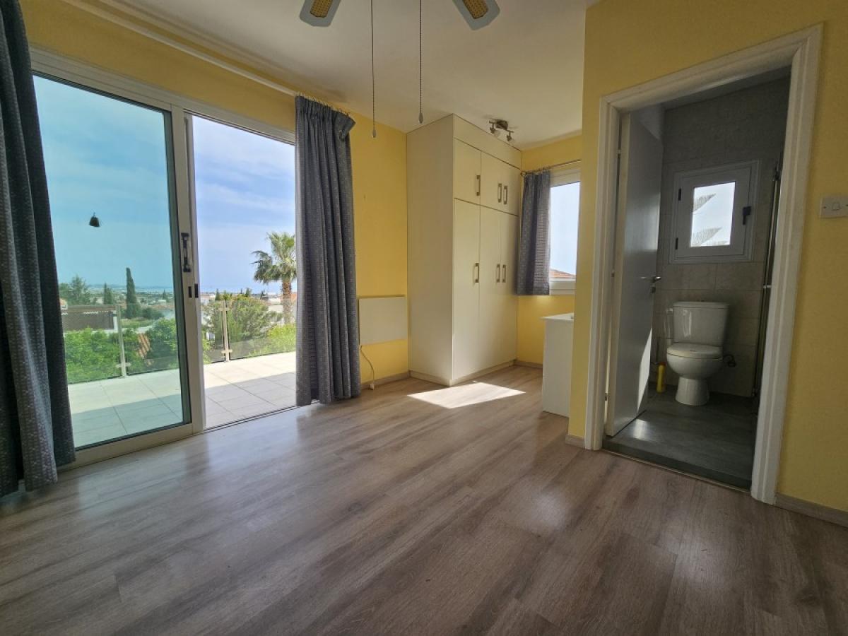 With a super outlook and views to the mountains and the sea across Coral Bay and beyond to Paphos. This lovely detached, home is a very spacious 3 bedroom, 3 bath/shower room villa and offers light and bright accommodation. Also it is within a walking distance to Peyia and a 3 minute drive to the well-known sandy beaches of Coral Bay!The property sits on a large corner plot of approx. 650 sq.m. and has a private 4A?8 m swimming pool, car port and wooden lock-up garage. Beautiful landscaped gardens with auto irrigation system and many fruit trees. One large and one small shed.On the ground floor there is a bright and spacious open plan living/dining area with a modern log burner and sets of sliding patio doors leading out to the large covered veranda overlooking the pool. There is a spacious separate kitchen with fan, ceramic Neff hob, AEG cooker, dishwasher and Bosch fridge freezer. Also, there is filtered water in the kitchen and the property has the luxury of a plumbed in ion water softener which makes for lovely showers! There is also a double bedroom and guest shower room on this level. The washing machine is also in the bathroom.On the first floor there are 2 double bedrooms with en-suite shower rooms and along with ample fitted wardrobes. The views are spectacular from both bedrooms. The master bedroom benefits from a fan and a large balcony which is also accessible by external stairs. The second bedroom has a Juliet balcony with space for 2 chairs and small table. This wonderful villa, in excellent condition has air conditioning in the 3 bedrooms and lounge/diner. A beautiful property in a prime location!
