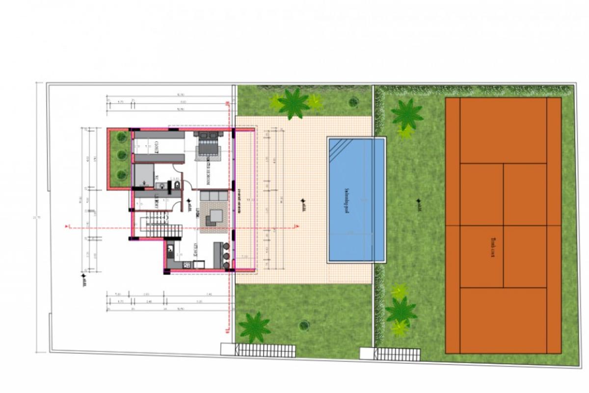 Luxury Villa in the Peyia area. Spacious bedrooms and living area. There is a walk in closet in the master bedroom which is en suite and another bedroom upstairs is en suite. Large terrace,A quality marble effect tiles from Spain. Smart home system and underfloor heating, there is also a basement that consists of a large laundry room, an extra bathroom, large storage areas and a mechanical room. Private overflow system swimming pool, large modern garden and private tennis court are featured outside.A
