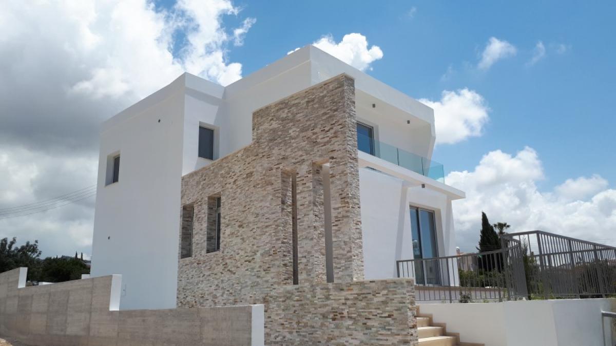 This beautiful 3 bedroom 4 bathroom villa is situated in a big plot of approximately 410m2 and a covered area of 195m2. The property offers an open plan living/dining area fully furnished and equipped with high quality finishes. Additionally there is a guest toilet on the same level. Sliding patio doors open towards the pool and the big plot. It features landscaped gardens, double private parking, large private pool and comes fully furnished, all of the bedrooms en-suite bathrooms and are double glazed. There is air condition throughout as well as central heating provisions and fitted wardrobes. Peyia is a town in Cyprus with a population of approximately 10,000 residents. Peyia is situated mainly on the steep slopes of the coastal hills inland from Coral Bay, at the southern end of the Akamas Peninsula, and it lies 14 km north of Paphos. It has a large population of British ex-pats and a growing number of holiday homes and apartments. In the town center can be found a town hall, church, police station and several small shops, restaurants, and banks. Due to its hillside location, many parts of the town offer views over Coral Bay and Paphos.