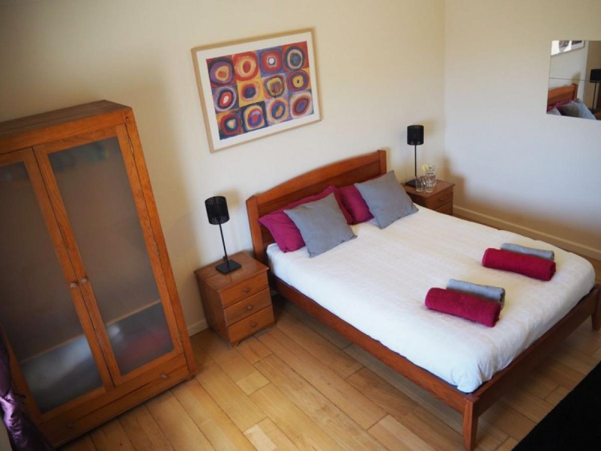 - This ground floor apartment has a large kitchen / dining space and patio doors leading to the garden. There is a wood burner in the lounge where there is space for three double sofas. The kitchen has an electric hob and oven, a tall fridge freezer and washing machine. it has two bedrooms (double and twin), family bathroom and access to the courtyard / BBQ area.