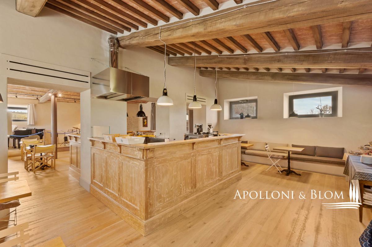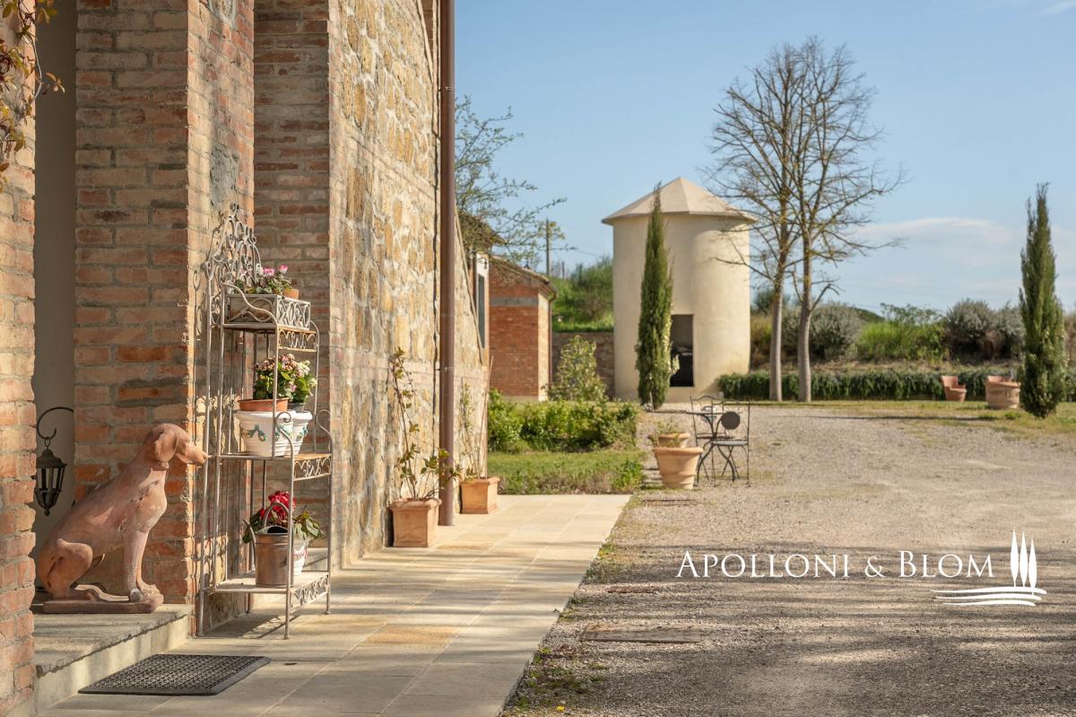 Class A+ luxury country house for sale in Pienza, Siena - Tuscany Historical former farmhouse, fine architectural and style for sale in Val d'Orcia, Pienza. In the countryside of Pienza—the ideal city of the Renaissance imagined by Pius II and Leon Battista Alberti—this charming country house is seamlessly integrated into its natural surroundings, offering breathtaking views that change with the light and seasons, including a privileged panorama of Mount Amiata. Rooted in rural tradition, the house features classic stone and brick exteriors and a two-level structure. Carefully renovated for modern living, it emphasizes energy efficiency and sustainability, using natural materials that respect the local context. The 9,000 sqm property includes two buildings. The main villa (422 sqm, energy class A) offers a spacious living room with open kitchen, a unique stage area for concerts, and a bathroom on the ground floor. Upstairs is an apartment with living room, kitchen, two bedrooms, and two bathrooms. A gazebo allows for relaxed outdoor dining. The first floor, accessed via internal and external staircases, features five bedrooms with en-suite bathrooms, a laundry, and a closet. The second building (81 sqm) houses two independent mini-apartments, each with a kitchenette, bedroom with garden view, and bathroom. A small warehouse and silo complete the property. Beautifully furnished with creative taste, the home blends contemporary elements with traditional details like metal beams, terracotta vaults, wooden ceilings, parquet, and terracotta floors. It includes a separate technical room, heat pump for heating and cooling, double glazing, and solar panels. The landscaped garden is filled with lavender, roses, and a green lawn irrigated via a private well. There's potential to add a bio-lake or bio-pool - project already approved and planning permission already granted. Perfect as both a private residence and hospitality venture, this property sits in one of Italy’s most iconic and sought-after locations, beloved for its views, culture, and timeless charm.architecture, and thermal, food and wine itineraries. PROPERTY Ref: PNZ3025 Location: Pienza, Province: Siena, Region: Tuscany Type: two-story stone farmhouse with land; about sqm 422 + outbuilding, garden, silo, and land to build a natural swimming pool Annex: mq 81, residential Year of construction: about 1930 Year of renovation: 2020 Condition: excellent Land/Garden: approx. 9000 sq m/2.2 acres partly garden with tall trees, lavender, roses, lawn, partly uncultivated/seeded Terrace/Balcony: a small loggia on the 1st floor Pool: possibility to build a natural swimming pond (existing project) or possibility to build a natural swimming pool; with planning permission already granted Utilities: Fixed telephone network: available Internet: active Heating: heat pump (in the Villa) + LPG (in the dependance) Water: mains city supply + 1 well Electricity: active Water waste: Imhoff tank Distance to services: Pienza 14 km Distance to main airports: Perugia 90 km, Florence 159 km, Rome 207 km Layout: Villa: Ground Floor: Independent apartment: living room, kitchen, 2 bedrooms, 2 bathrooms Living area of the receptive part: hallway; open-plan living room with open kitchen and concert stage; bathroom; gazebo; wood-burning oven First Floor: living room, 5 bedrooms with en suite bathrooms, utility rooms, stairwell Dependance: 2 mini-apartments with kitchenette, bedroom, bathroom- garden