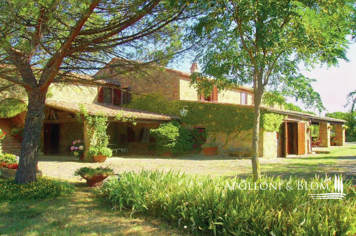 Characteristic Tuscan country house deeped in the silence and magical atmosphere of the Val d'Orcia, for sale with stunning views of Pienza. Set in a commanding position on a gentle hilltop in the UNESCO-protected Val d’Orcia, this elegant 19th-century residence offers an extraordinary blend of historic charm, natural beauty and lifestyle potential. Surrounded by olive groves, vineyards and manicured grounds, the property enjoys absolute privacy and breathtaking views over one of Tuscany’s most iconic landscapes—just moments from the celebrated Renaissance town of Pienza. With an internal surface area of 470 sq m (5,059 sq ft), the residence is arranged across two levels. On the ground floor, beneath an 80 sq m (861 sq ft) portico, you enter into an expansive living space that reflects the building’s authentic character—terracotta flooring, timber beams and a classic Tuscan fireplace all contribute to the warm, understated elegance. The layout flows into a formal dining area and a generously sized, masonry-style kitchen with adjoining pantry, designed for both family life and entertaining. A billiard room adds an atmospheric social space, while practical features include a wine cellar, technical rooms, a wood store, and a charming, fully functioning wood-fired oven. One wing of the ground floor hosts a 40 sqm (430 sq ft) self-contained studio with separate access, ideal for guests, caretakers, or short-term lets. Upstairs, accessible via both an internal staircase and a beautiful external loggia with original terracotta steps, you’ll find an additional living room, six comfortable bedrooms and three bathrooms, each filled with natural light and tranquil views of the surrounding hills and farmland. The estate extends over 4.5 hectares (11 acres), including 3 hectares of olive groves with 600 trees, 0.7 hectares of vineyard (70% Sangiovese, 30% Merlot), and further sections laid out as fruit orchard, vegetable garden and ornamental park. A private water spring supports irrigation, and a range of agricultural equipment—including a tractor—is included in the sale. Subject to planning approval, a swimming pool may be added to enhance leisure use. Naturally positioned on the highest point of the hill, always facing the light, this distinctive property offers excellent potential as a refined private residence, boutique hospitality venture, or lifestyle investment in the heart of Tuscany. PROPERTY Ref: PNZ321 Location: Pienza, Province: Siena, Region: Tuscany. Type: 470 sq m/5059 sq ft two-story country house Year of construction: 1800 Year of restoration: 2000s Condition: in a good state but needs some touch-ups, both in terms of energy and structural Land: 4.5 hectares/11 acres: 3 ha/7.4 acres olive grove with some 600 olive trees, 0.7 ha/1.7 acres vineyard (70% Sangiovese, 30% Merlot) planted between 2017 and 2018, 0.1 ha/0.2 acres vegetable garden, 0.2 ha/0.5 acres fruit trees, landscaped garden Swimming pool: subject to planning permission Utilities: Landline phone network: available Internet: available Heating: LPG + fireplace Water: 1 well for domestic and irrigation use Electricity: available Layout: Ground Floor: spacious living room with Tuscan fireplace, dining room, kitchen with pantry,billiards room, 1 bathroom, 2 patios totaling 80 sq m / 861 sq ft, outdoor wood-fired oven, cellar, separate and self-contained studio apartment First Floor: living room, patio, 6 bedrooms, 3 bathrooms- terrace
