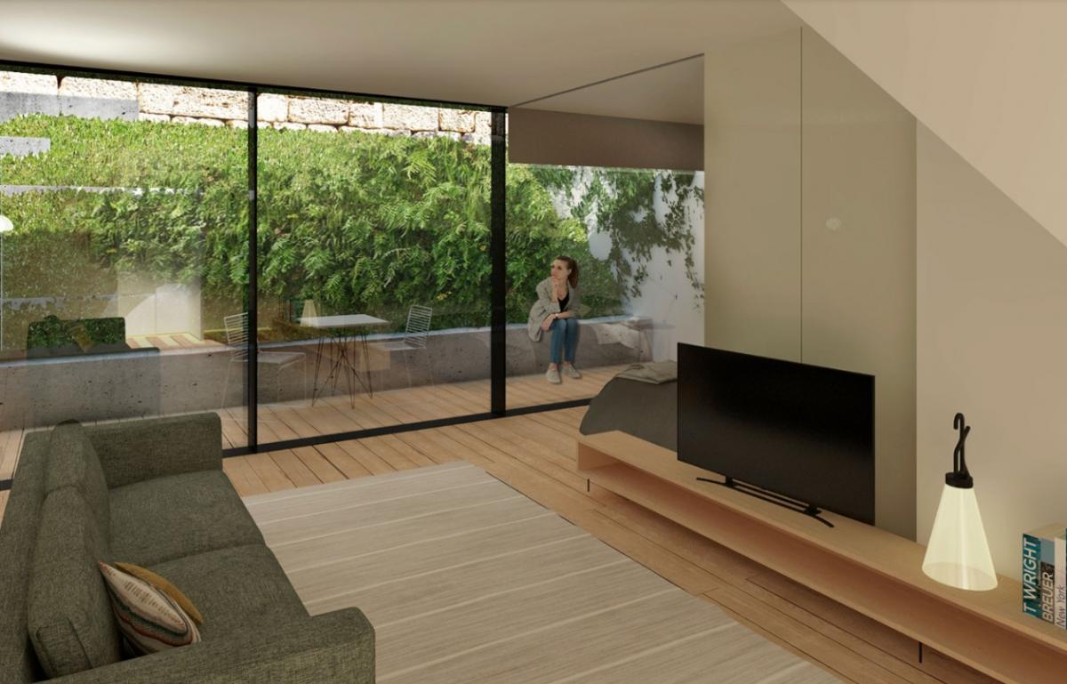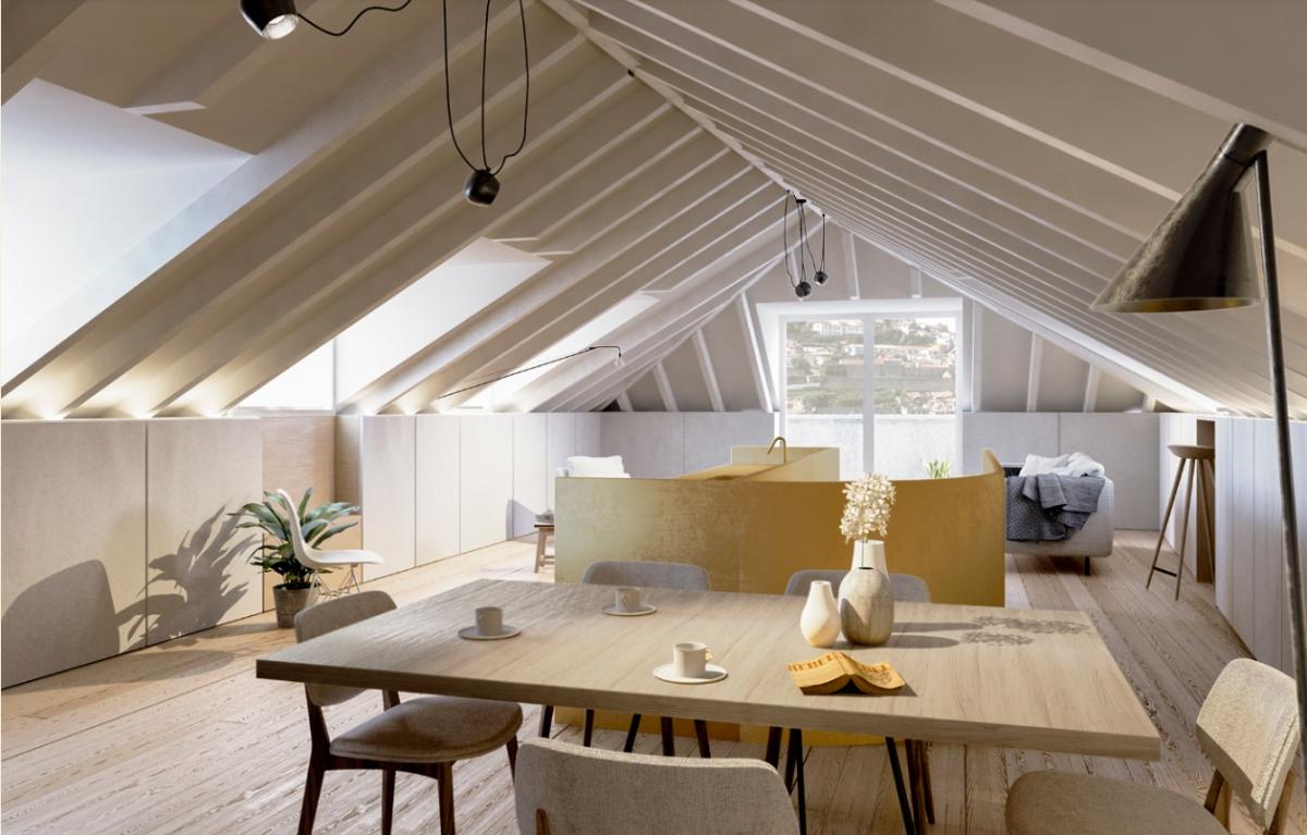 The residential complex AlfA?ndega 80 consists of six modern apartments and commercial space with a beautiful sunny exposure and stunning views of the Douro River.The complex is located in a picturesque location, surrounded by historic buildings, cultural sites, restaurants, recreational and commercial areas.The six apartments combine modern architectural elements with traces of the building's original style.Located on four floors, the apartments are divided into 1-bedroom and 2-bedroom typologies. The first floor keeps its original use as a commercial space.Finished hallway from the first to the second floor:- Pigmented concrete walls with vertical reguado cladding;- White marble floors with red marble aggregates;- Ceilings of pigmented concrete.Security:- Automatic intrusion detection and alarm system;- Automatic fire and gas leak detection system;- TRIZ - INVICTA security doors;- Video intercom.Parking:- ONLIFT rotating platform;- Individual pantry for all apartments.