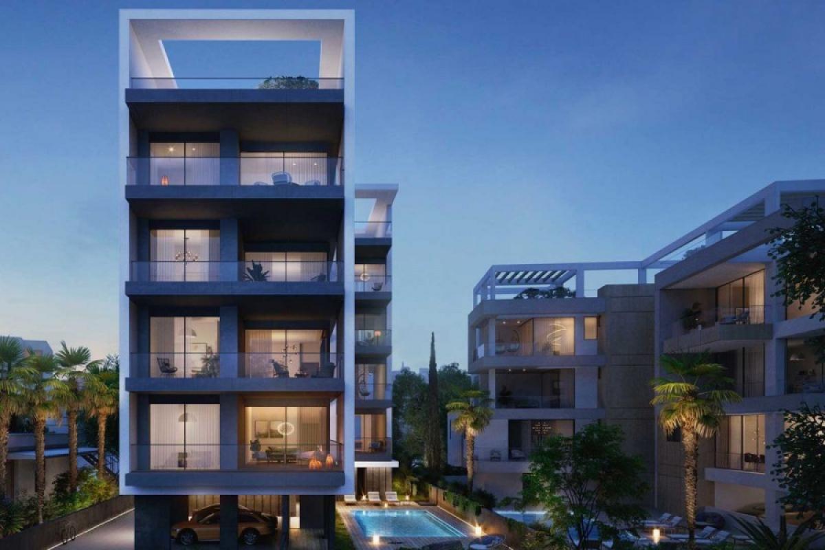 Contemporary residence in a quiet residential place in Limassol's tourist area; 700 meters to the sandy beaches and 5-star hotel Apollonia; common swimming pool and gym; high ceilings (3.15 meters); top standard finishes; underfloor heating and central VRV conditioning; penthouses with private roof terraces and swimming pools.