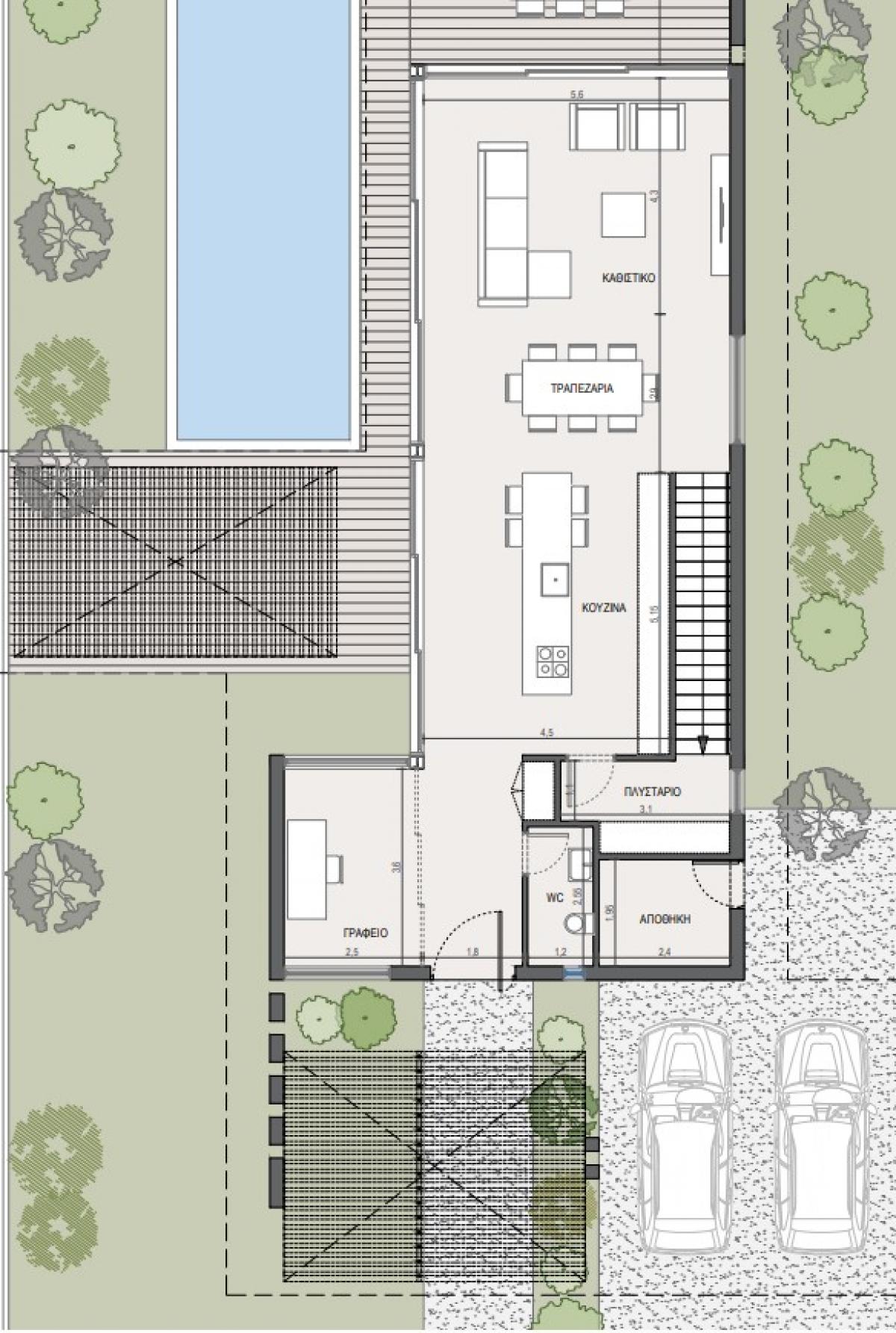In Pyrgos, you can enjoy the sandy beaches, indulge in water sports. It is a great place for relaxation and offers the luxury to enjoy the natural beauty of the region.A The contemporary design of the project offers two storey, 3-bedroom spacious housing units. Architectural clarity with clean contemporary lines of design and functionality provides not just a housing option but rather a feeling of HOME. The open floor plans at ground level create a sense of spaciousness and provide flexibility in space usage that is a signature for modern living. Expansive windows on ground and first floor allows ample sunlight entering the interior spaces providing warmth and comfort. This unit has an extra office room, 2 private parking and a garden area of 364 square meters.A A Delivery-July 2026