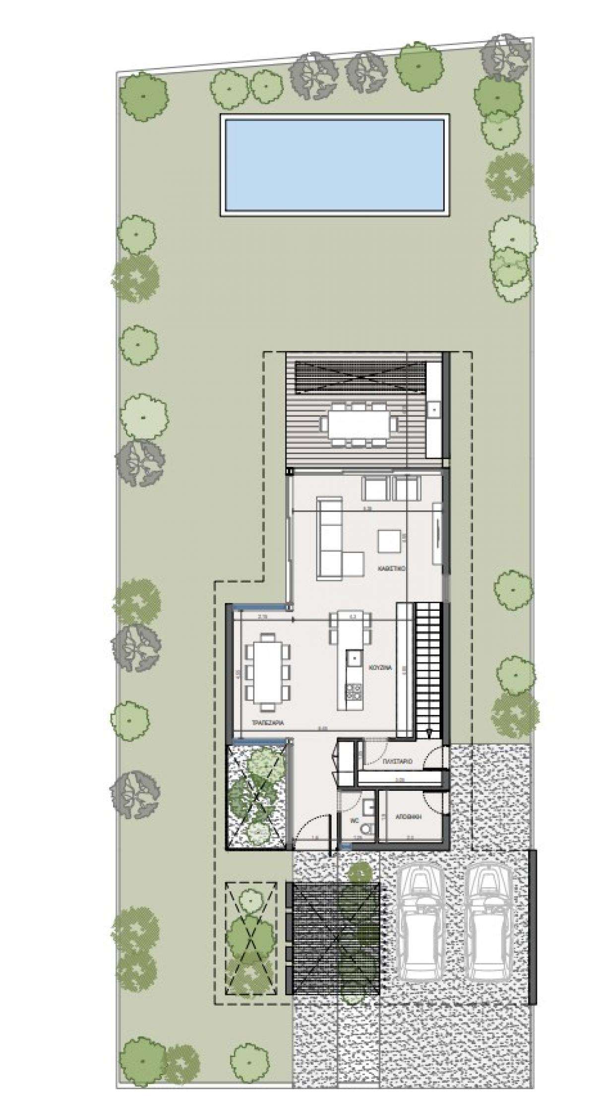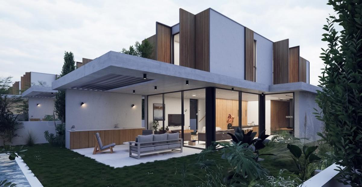 In Pyrgos, you can enjoy the sandy beaches, indulge in water sports. It is a great place for relaxation and offers the luxury to enjoy the natural beauty of the region.A The contemporary design of the project offers two storey, 3-bedroom spacious housing units. Architectural clarity with clean contemporary lines of design and functionality provides not just a housing option but rather a feeling of HOME. The open floor plans at ground level create a sense of spaciousness and provide flexibility in space usage that is a signature for modern living. Expansive windows on ground and first floor allows ample sunlight entering the interior spaces providing warmth and comfort. Swimming pool is optional and this property has a garden of 353 square meters and 2 private parkings.A A Delivery-July 2026