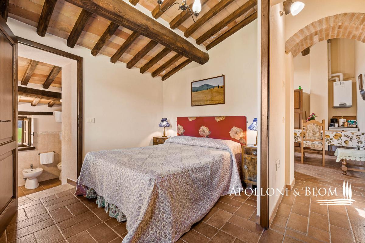 Stone country house with pool, surrounded by 30 hectares/74 acres of land, for sale in the countryside between Sarteano and Radicofani. In the heart of the Tuscan countryside, south of Siena, stands a charming stone former farmhouse dating back to the 1800s, fully renovated in 2006. The property is surrounded by 30 hectares/74 acres of land, primarily used for arable farming and forest. The house is in perfect condition, with a renovation that has preserved the rustic charm of the original building and its stone facades, while integrating modern comforts. On the ground floor, the property features a reception area, an open-plan kitchen ideal for managing an agriturismo business, a garage, and utility rooms. The first floor houses two apartments, each with two bedrooms and two ensuite bathrooms. The house is surrounded by a landscaped garden with a swimming pool and sundeck area. Thanks to its strategic location and the features of the property, this house offers excellent potential for those wishing to run a tourism-related business. It is located just 7 km from Sarteano and 8 km from Radicofani, two charming medieval villages in the Val d'Orcia, and is easily accessible while maintaining a high degree of privacy. Essential services are nearby, and the stunning Tuscan towns of Pienza, Montalcino, and Montepulciano are within easy reach for those wishing to explore the region. If you're looking for a home that combines the allure of the Tuscan countryside with modern comfort, this could be the perfect solution. PROPERTY Ref: VAL3153 Location: Radicofani, Province: Siena, Region: Tuscany Type: 300 sq m/3229 sq ft two-story former farmhouse restored into 2 self-contained apartments, garden, swimming pool and 30 hectares/74 acres of land Year of construction: 1800 Year of restoration: 2006 Land/Garden: 30 hectares/74 acres including arable land and forest Swimming pool: 10x5m and a paved sundeck Layout: Ground Floor: reception, communal kitchen, garage, and utility rooms First Floor: Apartment 1: living room/kitchen, 2 bedrooms, and 2 ensuite bathrooms Apartment 2: living room/kitchen, 2 bedrooms, and 2 ensuite bathrooms Utilities: Fixed telephone network: available Internet: available Heating: LPG Water: mains city supply + 1 well Electricity: available Water waste: Imhoff tank The property is owned by a private individual. The location, for privacy, is approximate. Please note all measurements cited are approximate Energy Efficiency Rating: F Distance from services: Sarteano 7 km, Radicofani 8 km Distance from main airports: Florence 150km, Perugia 85km, Rome 190km Gravel road: 800 meters- garden
