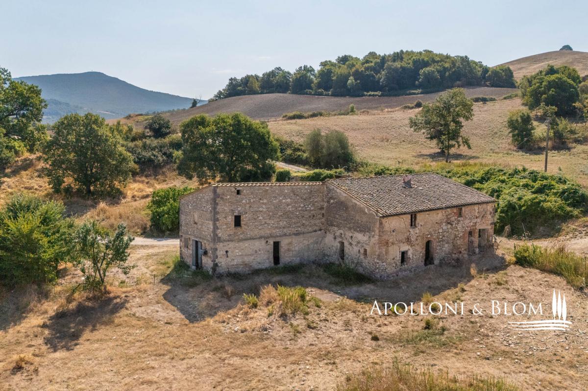 A Dream to Envision, a Project to be tailored! An authentic stone farmhouse with breathtaking views, for sale in Val d’Orcia, Siena. Set amidst the poetic landscape of rolling Tuscan hills between Sarteano and Radicofani, this 19th-century estate is a testament to the timeless charm of rural Tuscany. Nestled in a gently elevated position, the farmhouse is bathed in ever-changing light throughout the seasons, where the horizon melts into the sky and tranquillity reigns. Comprising approximately 600 square metres across two levels, the property offers a solid architectural foundation for the creation of an exclusive luxury country villa. The original stone façades, rustic features, and elegant simplicity of the existing structure evoke a story of heritage ready to be reimagined through a contemporary lens. Surrounded by three hectares of private land, the estate promises absolute peace and privacy, with open vistas stretching across golden fields and cypress-lined ridges. The only sounds are the soft chimes of sheep bells echoing across the valley - an enduring rhythm of the countryside that enhances the sense of seclusion and authenticity. Casale Le Stelle is more than a property - it is a canvas for beauty, a vision to be sculpted into a prestigious residence or a refined hospitality retreat. Apolloni Blom offers full support in tailoring and restoring selected properties, collaborating with an established network of local architects, artisans, and contractors, guiding you from initial concept through to turnkey delivery. Contact us for further information and to explore the full potential of this exceptional investment opportunity. PROPERTY Ref: VAL3310 Location: Radicofani, Province: Siena, Region: Tuscany Type: 600 sq m/6458 sq ft authentic Tuscan farmstead to restore featuring a two-storey stone country house, a small annex and 3 hectares of arable land Year of construction: 1800 Conditions: to be restored Land/Garden: 3 hectares/7.5 acres with garden area and arable land Utilities: Fixed telephone network: to be activated Internet: to be activated Heating: not present, 1 fireplace Water: mains city supply Electricity: to be activated Energy Efficiency Class: G Distance from services: Sarteano 10 km, Radicofani 10 km, Monte Calcinaio Astronomical Observatory 2.3 km Distance from main airports: Perugia 80 km, Florence 150 km, Rome 190 km Gravel road: 2 km Layout: Ground Floor: 5 large former stable rooms, 2 storage rooms, and a hallway First Floor: kitchen with fireplace, living room, 6 bedrooms Outbuilding: 20 sq m/215 sq ft former pigsty building- garden