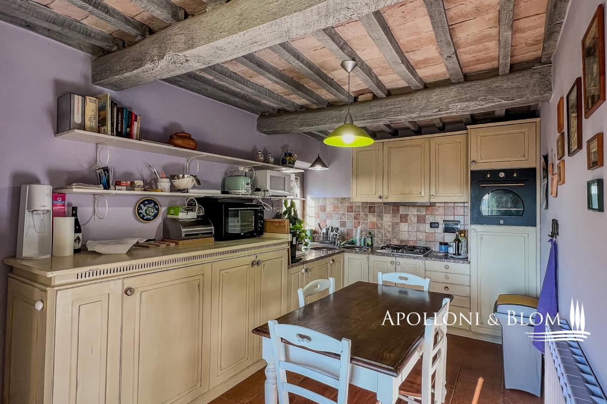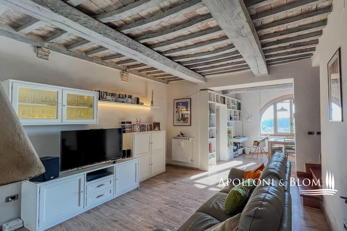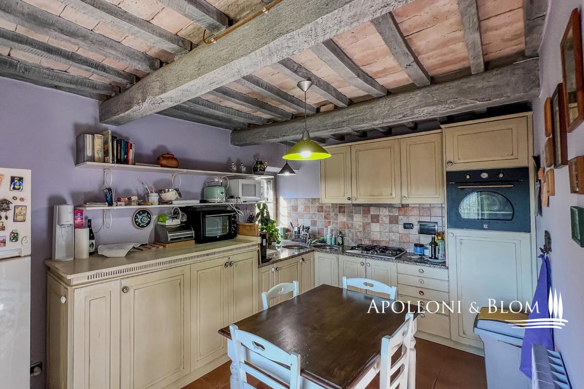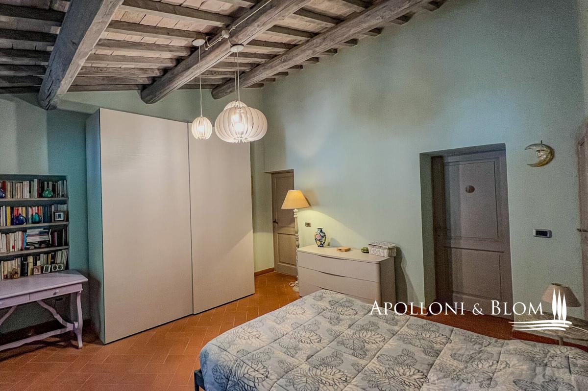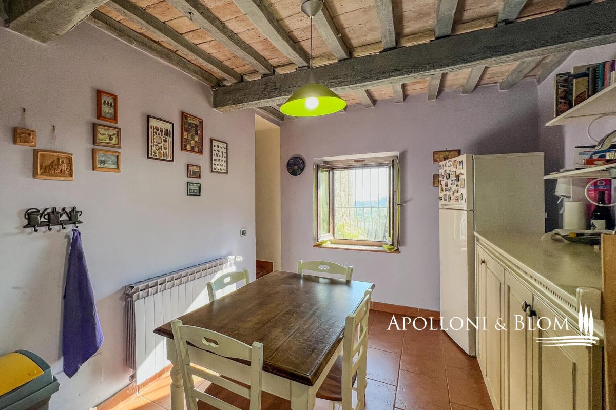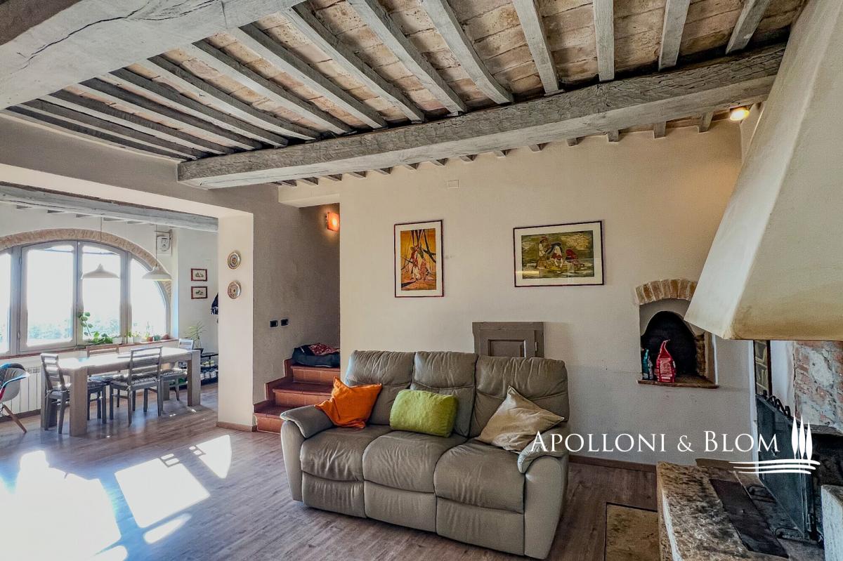 With a splendid, commanding view over the Tuscan countryside, three-story country hpuse with private garden for sale near the center of Sarteano. Commanding an uninterrupted view over the rolling hills of the Tuscan countryside, this exquisitely restored portion of an 18th-century stone farmhouse presents an exceptional opportunity to acquire a refined country jome just moments from the historic heart of Sarteano. Situated within a tranquil hamlet of period farmsteads, less than one kilometre from the town’s centre, the property sits atop a gentle hill and is accessed via a charming country track of 300 metres. Its elevated position affords panoramic vistas that stretch across olive groves and cypress-lined slopes to the rooftops and medieval towers of Sarteano itself. The house unfolds gracefully over three levels, offering 242 square metres (2,600 sq ft) of elegantly reimagined interiors. The restoration, executed with discerning attention to traditional materials and modern sensibilities, has created a residence ready for immediate enjoyment. The ground floor opens onto a living room defined by terracotta brick archways, with direct access to the exterior. This level also hosts a dedicated laundry room and utility room. On the first floor, the atmosphere becomes one of warm sophistication. A charming sitting room, complete with an original fireplace, is bathed in light from a large picture window framing the pastoral panorama beyond. This floor further comprises a well-appointed kitchen, a bathroom with separate hallway access, and two useful storage rooms—ideal for a pantry or wine storage. The second floor includes a master bedroom with en-suite bathroom and an adjoining study, offering the perfect retreat for writing or contemplation. A second double bedroom also benefits from a private en-suite, making it ideal for guests or family. Throughout, ceilings feature exposed wooden beams treated in a soft whitewashed finish, which imbues each space with a sense of airiness and refined rusticity. All windows and French doors are crafted from solid wood and fitted with insect screens, blending functionality with aesthetic continuity. Slightly set apart from the main structure lies a private garden of 288 square metres (just over 3,000 sq ft), a peaceful green haven for al fresco dining, reading, or simply soaking in the silence of the surrounding nature. A private parking space completes the offering. Whether as a year-round residence or a seasonal escape, this characterful country home represents the fusion of historical charm, contemporary comfort, and bucolic serenity: an idyllic base from which to savour the cultural and culinary treasures of southern Tuscany. PROPERTY Ref: SAR3373 Location: Sarteano, Province: Siena, Region: Tuscany Type: 242 sq m/2604 sq ft three-story semi-detached stone country house with private garden Year of construction: 1800 Conditions: excellent Garden: 288 sq m/3100 sq ft detached garden Parking: 1 outdoor car seat Utilities: Fixed telephone network: available Internet: available Heating: LPG Water: mains city supply Electricity: available Water waste: mains city connection Distance from services: 1 km Distance from main airports: Perugia 70km, Rome 195km Gravel road: 300 mt Layout: Ground Floor: rustic living room with brick arches, laundry and technical room First Floor: living room with fireplace, kitchen, 1 bathroom, 2 closets Second Floor: 1 master bedroom with ensuite and study, 1 double bedroom with ensuite- parking