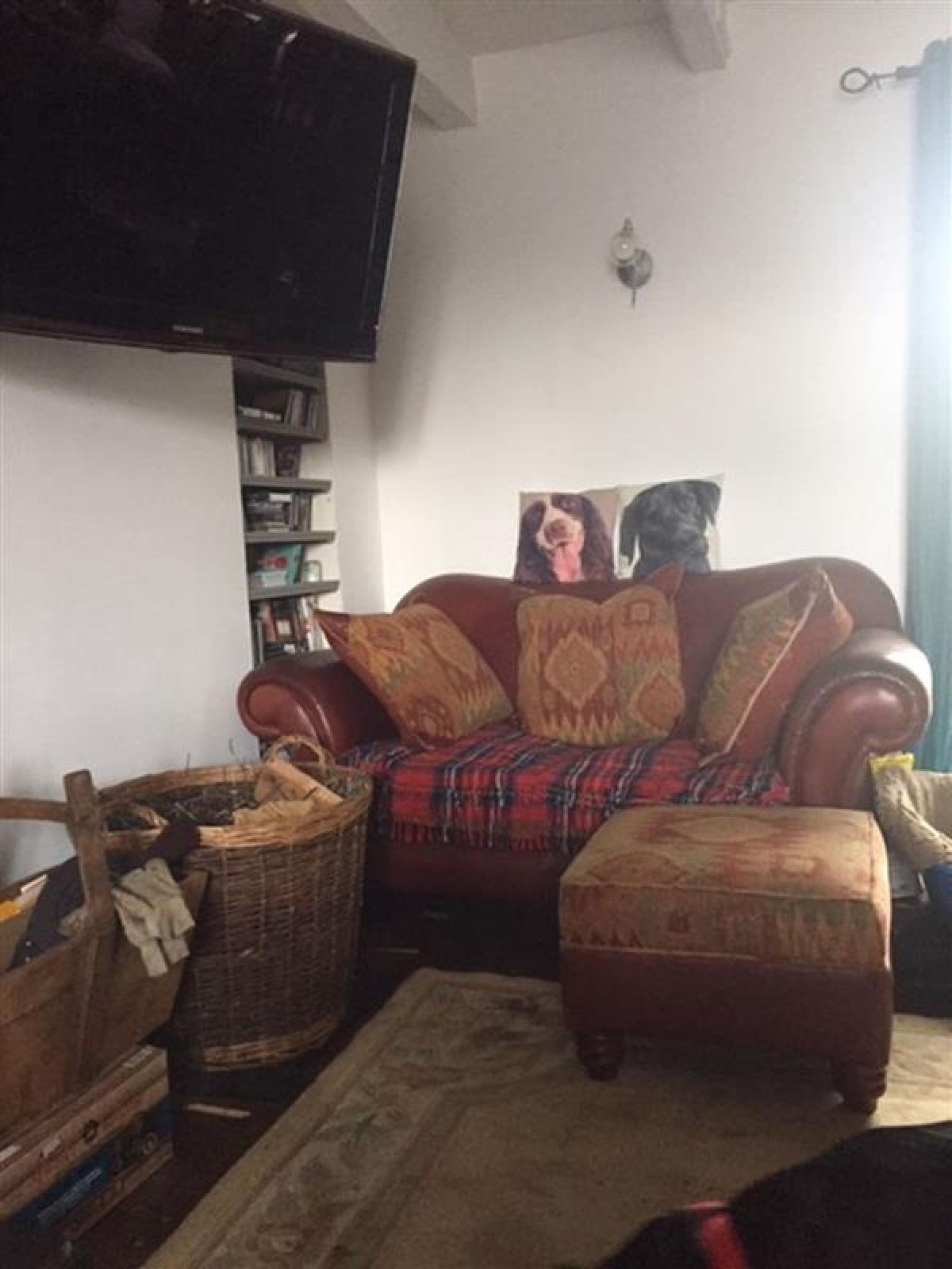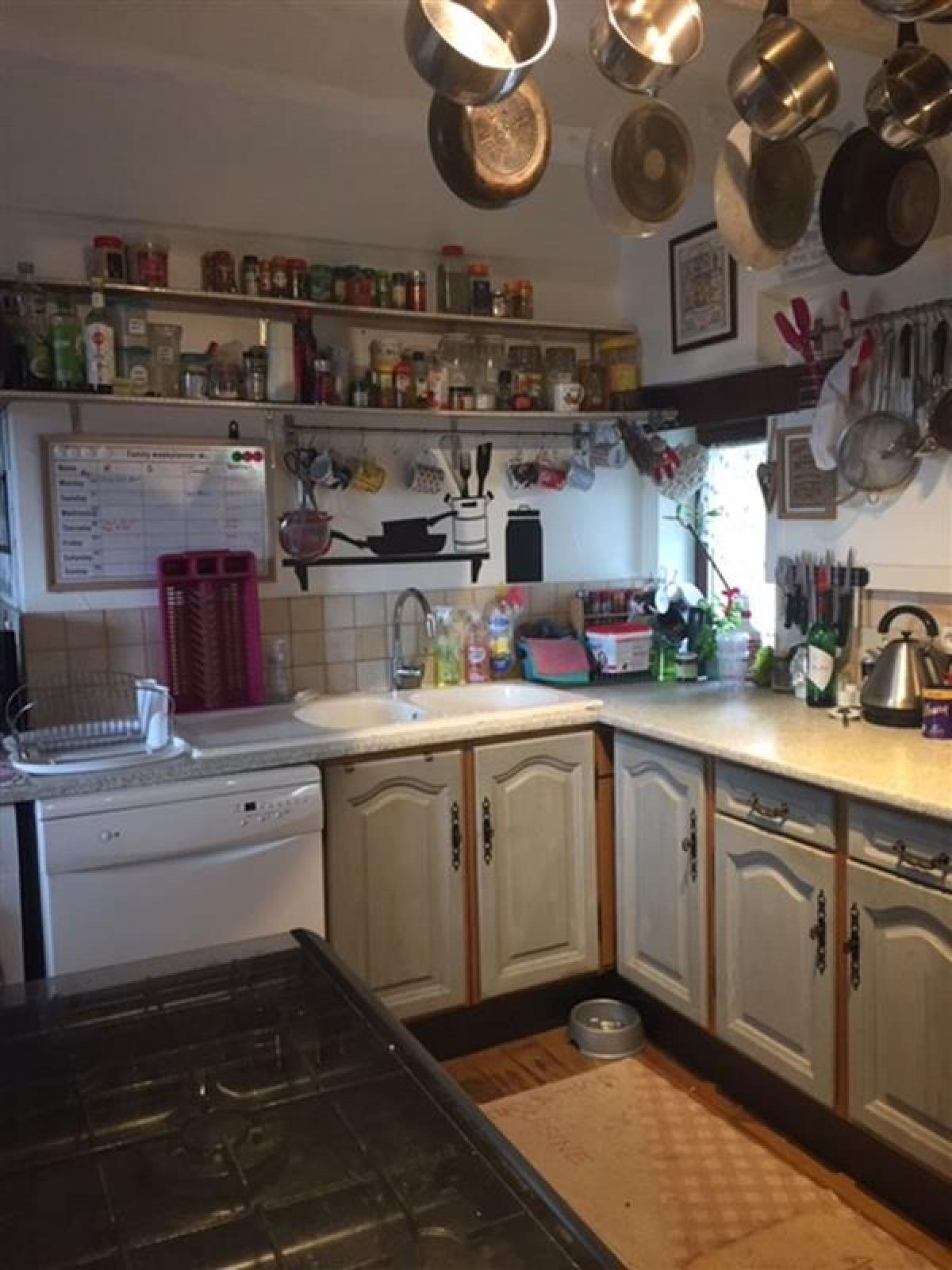 Kitchen: Part-tiled floor. Wood burner fitted 2016. Range of base and wall units. Central island with cupboards under rise and fall light above. Range cooker (bottled gas). Fridge freezer, double sink with mixer tap. Space for microwave. Window to rear, window to front. Large Breton dresser.