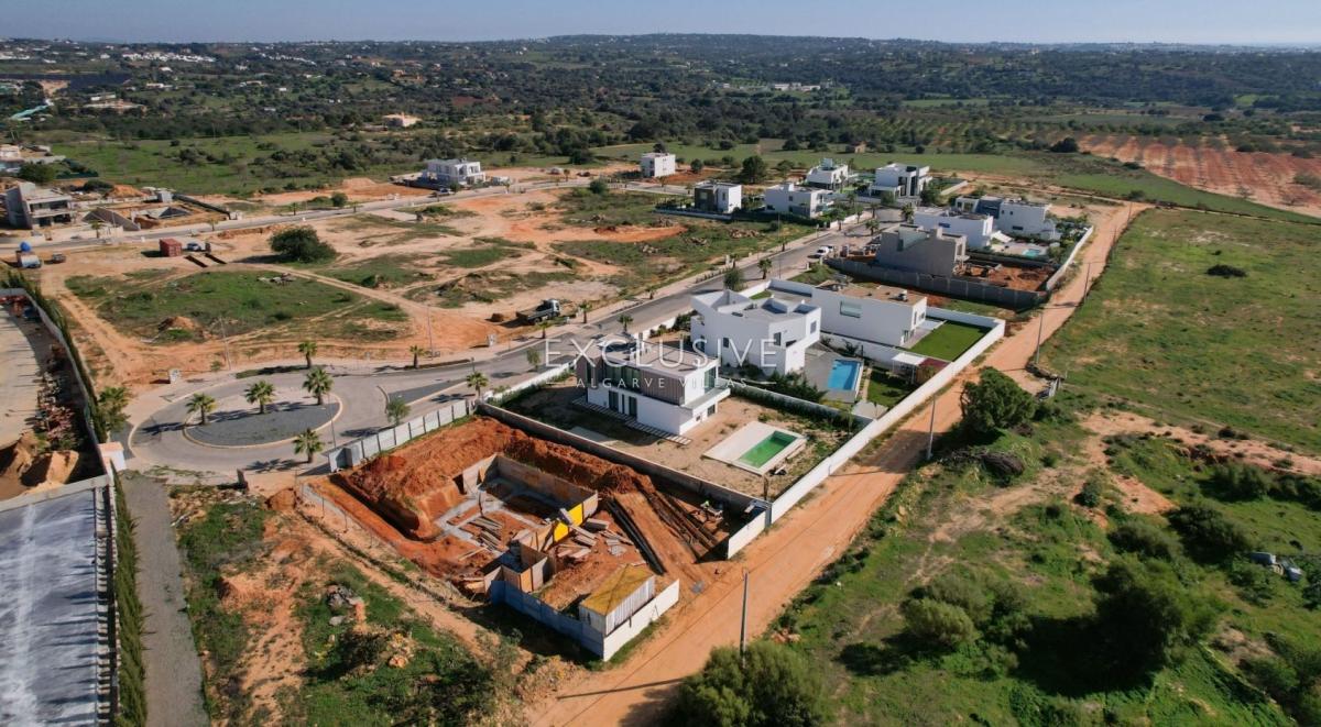 This plot is located in a new urbanization of contemporary homes. There is distant seaviews and has an approved project for a villa with 2 floors. The ground floor is composed of an entrance with double height ceilings, open concept living and dining area, kitchen and guest w/c, parking, swimming pool and equipment room. On the top floor, the primary bedroom with a private full bathroom and balcony, and two additional bedrooms with private balconies and one shared bathroom. The contemporary design of this villa has been developed to capture light and comfort for all year round living. The property is located within easy access and conveniently near all amenities. It is situated between the town of Guia and Pera, and only 15 minutes to the beach. This is a great opportunity to build your home and select your own finishes. This recently finished urbanization provides all the infra-structures for water, sewage and electricity, making this investment an opportunity to start to build immediately as the license is already in place.Features: