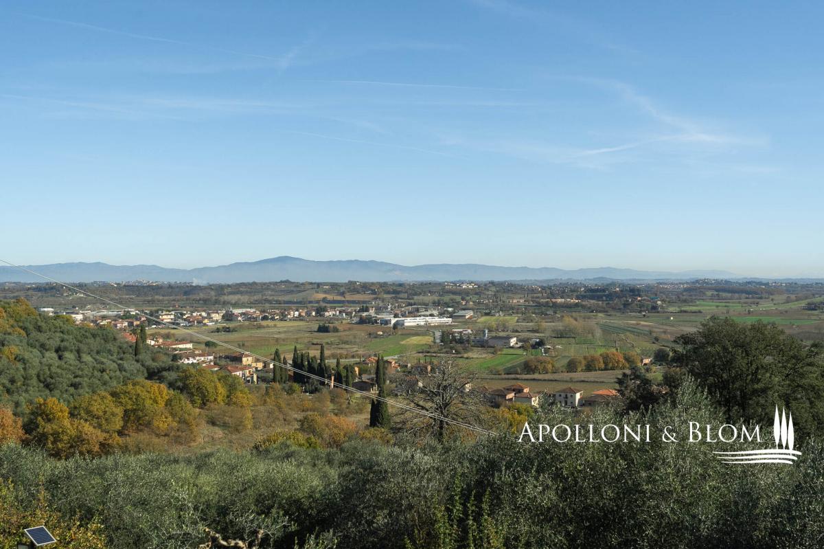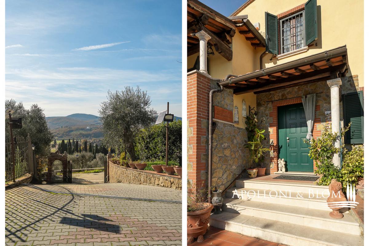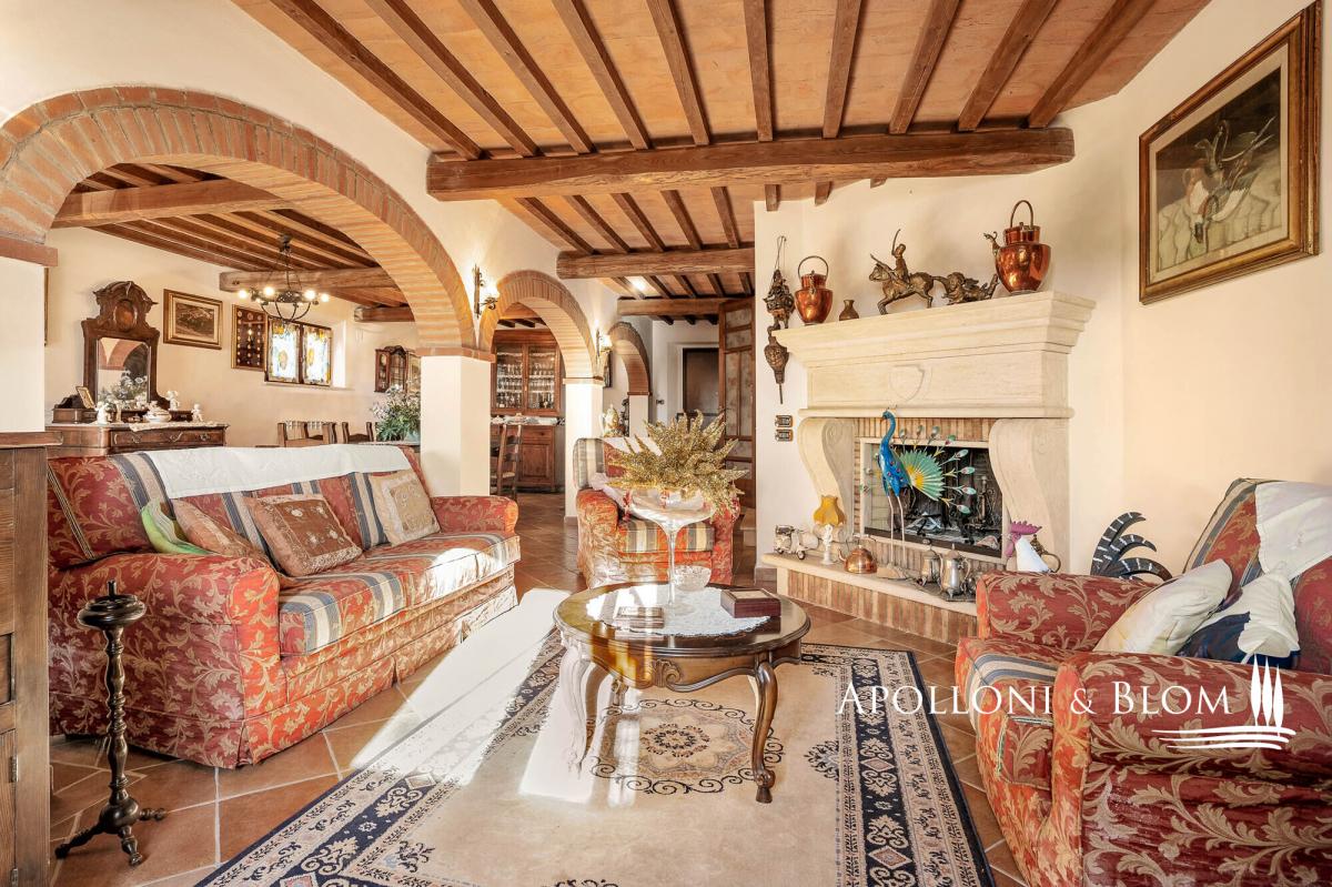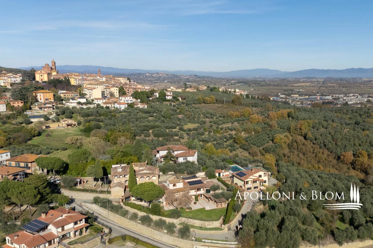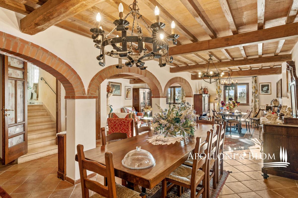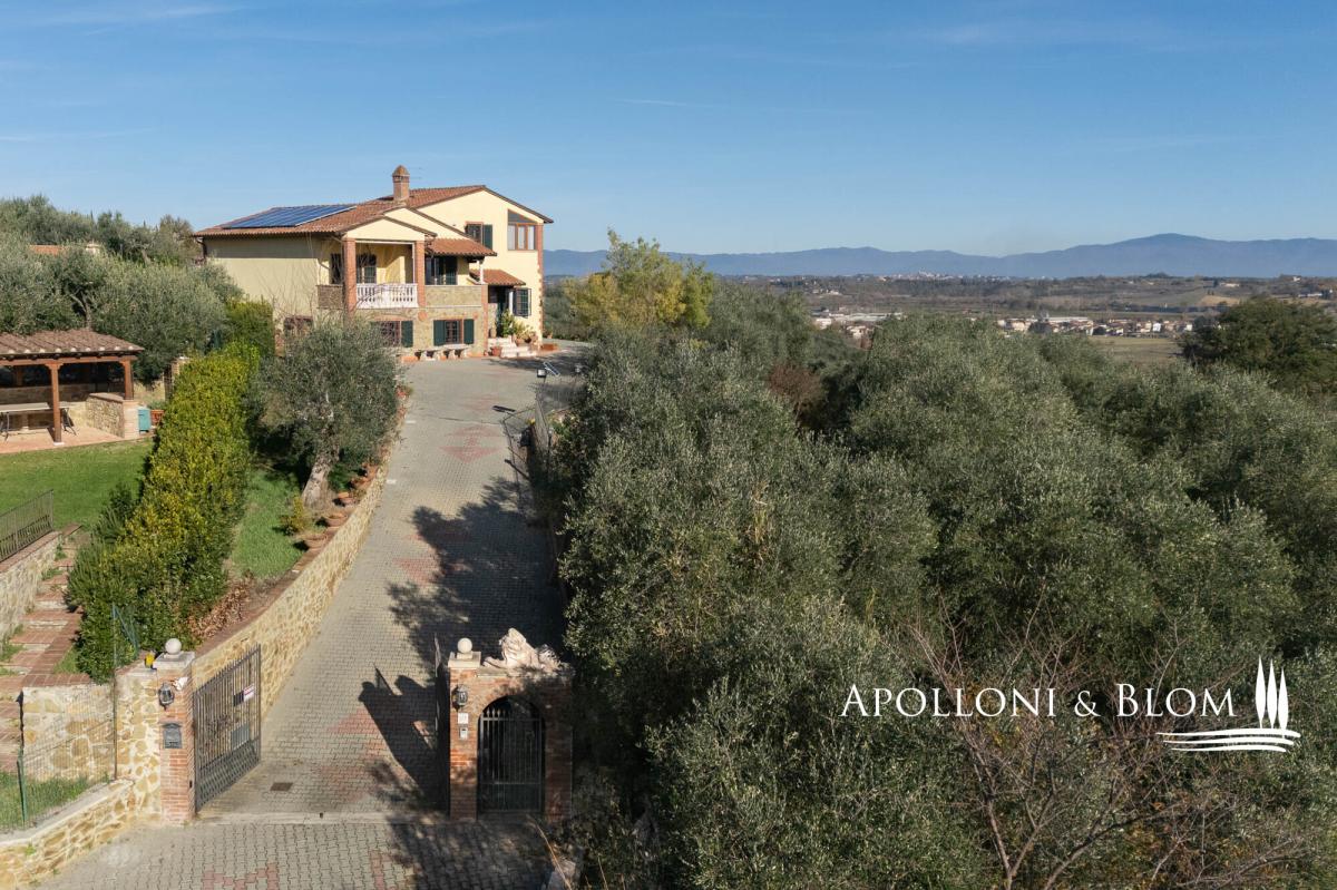 Hilltop with endless views, garden, olive grove, double garage, photovoltaic panels, for sale in Sinalunga, Siena. A captivating hilltop residence commands spectacular, far-reaching vistas across the Valdichiana and towards the distinctive silhouette of Cortona, perfectly embodying the coveted Tuscan dream. Set within a highly exclusive country enclave yet barely a mile from the historic heart of Sinalunga, this distinguished, three-storey villa of 273 square meters (2938 sq ft) occupies a unique, elevated position, offering unparalleled views over an extraordinary canvas of rolling hills and ancient olive groves. The property sits within 0,9 hectares (2.24 acres) of fully fenced private grounds, featuring an automatic gate, beautifully outdoor living areas with barbecue. An impressive olive grove adds to its rural charm. Constructed in 2003 and maintained in impeccable condition, the interior offers versatile accommodation, including a ground floor with a gracious living room with a fireplace, a main kitchen, a kitchenette, two bedrooms that open onto a panoramic terrace, complemented by two bathrooms (one with a Jacuzzi). The first floor presents a third bedroom with a charming glazed porch, while the basement level provides extensive utility and leisure space, featuring a rustic multi-purpose tavern room, two cellars, and direct access to the garage. Further practical amenities include a separate annex/car box, full air conditioning, and a photovoltaic system. Sold fully furnished and turnkey, in a private compound in an unrivalled Tuscan setting. Please note the photo shoot took place in December 2025 and the pool had already been prepared and covered for the winter season. PROPERTY Ref: SIN3438 Location: Sinalunga, Province: Siena, Region: Tuscany Type: 273 sq m/2938 sq ft three-story hill-top villa with panoramic terraces, double garage, solar energy, fully fenced garden with pool, and an olive grove Year of construction: 2003 Conditions: excellent Garden/land: 0,9 hectares/2.24 acres, fully fenced, automatic gate and driveway, great outdoor living areas with barbecue and pool, along with 0,68 ha/1.69 acres of olive grove Terrace/Balcony: spacious outdoor paved areas + a panoramic terrace on the main floor Parking: a 31 sq m/333 sq ft basement garage and a 43 sq m/462 sq ft separate annex with car box Utilities: Fixed telephone network: available Internet: available broadband Heating: radiators and split system (hot/cold air conditioning), fueled by wood or heat pump Water: mains city supply Electricity: active + 3 kW photovoltaic system Water waste: mains city connection Fully furnished Distance from services: 1,5 km Layout: Basement: porch, rustic multipurpose room/tavern, 1 bathroom, 2 cellars, wood storage room, garage, 3 storage rooms Ground Floor: living room with fireplace, 1 porch with kitchenette, main kitchen, 2 bedrooms both with access to the panoramic terrace, 1 bathroom with shower and window, 1 bathroom with Jacuzzi and panoramic window First Floor: 1 bedroom with glazed porch- garden