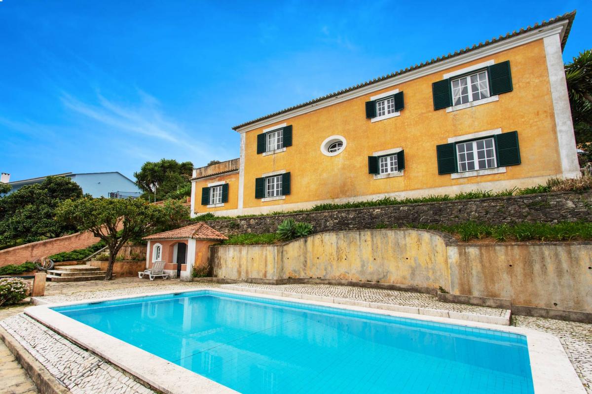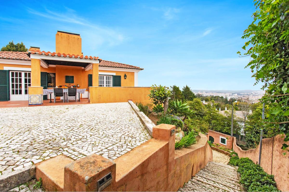 4-bedroom villa for sale in ChA?o de Meninos, set in a plot of two thousand square meters, with an excellent location next to the Serra de Sintra and with a stunning view of the PalA?cio da Pena. Built with materials and finishings of excellent quality, this traditional Portuguese style villa is in good condition and is distributed over two floors. The main floor consists of a living room with fireplace, dining room, kitchen with pantry and laundry area, bedroom with closet, full bathroom and another guest bathroom. Going downstairs to the lower floor, it is possible to find three more bedrooms and bathroom. With a large terrace along the living and dining rooms, a shed by the main entrance and garage for two cars, the property also has several annexes, one of them currently used as an office and another to support the pool with a bathroom. Outside, where there is a nice swimming pool, it is possible to find several garden areas with trees and shrubs bordered by small stone walls and Portuguese sidewalk. Located on a quiet street at the foot of the Serra de Sintra, the villa was built on a sloping, fully walled plot which gives it total privacy, thus being an excellent option, whether for permanent family residence or as a second vacation home. Located less than 10 minutes from the historical center of Sintra - World Heritage by UNESCO - which has all kinds of shops, services and restaurants and where you can visit PalA?cio da Pena, Castelo dos Mouros, or Quinta da Regaleira, the villa is close to the RamalhA?o school, the Alegro Sintra Shopping Center, Sintra Retail Park and the CUF Hospital. With good accessibility, it is about 20 minutes from Cascais and about 30 minutes from Lisbon and its airport.