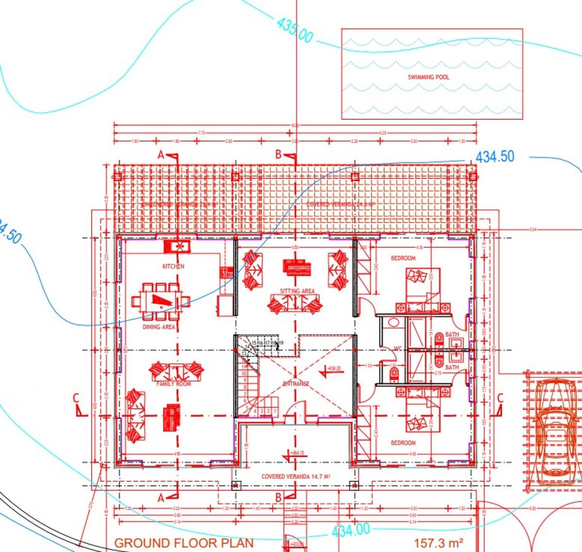 The house with 4 bedrooms, 5 bathrooms, kitchen/dining area, living room and a large uncovered veranda on the upper floor.The plot is 750 m2 and the total covered area of the house is 274 m2.A A