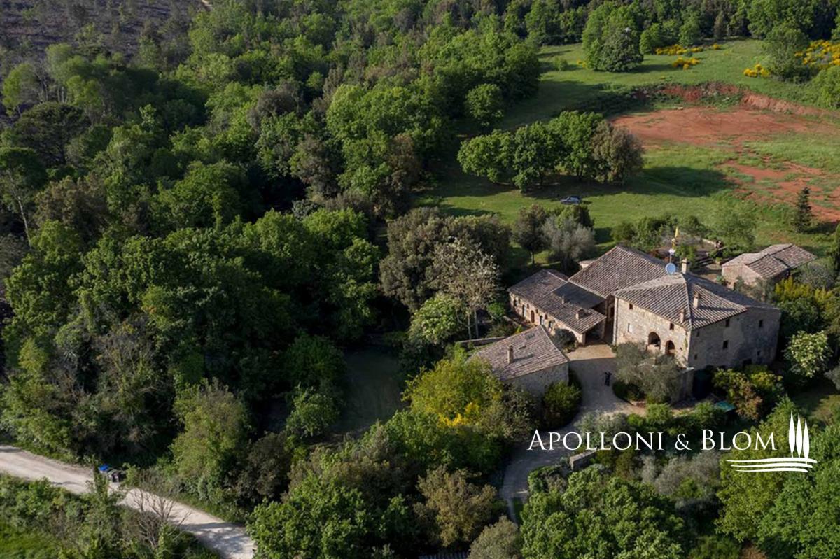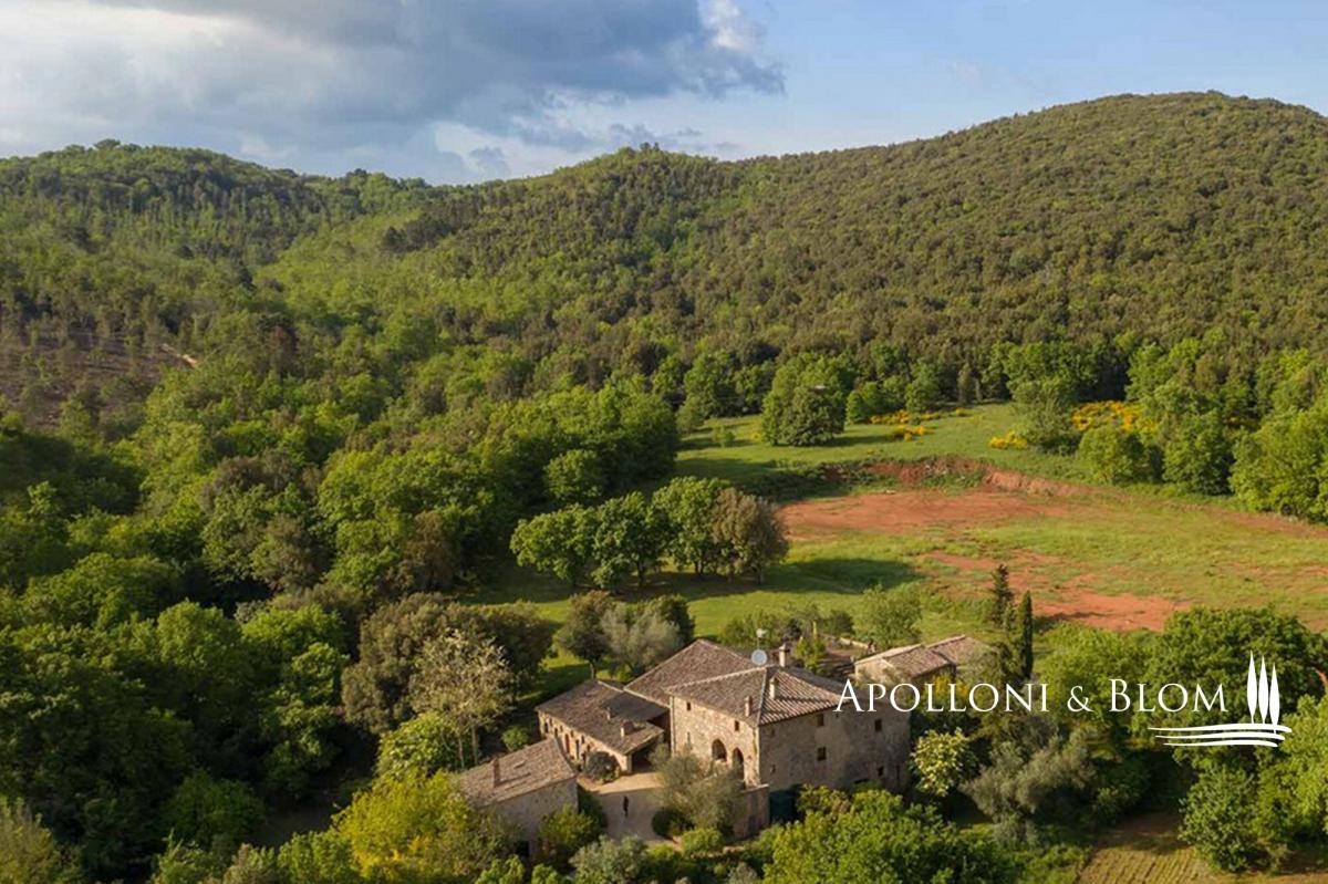 This historical country hamlet is for sale consisting of a manor house, guest homes, park with pool, land in the surroundings of Sovicille, Siena. Nestled in the rolling hills of the picturesque Montagnola Senese, just 10 minutes from Siena, this enchanting historical hamlet offers a rare blend of timeless elegance and modern comfort. Lovingly restored between 2005 and 2009, the estate is presented in excellent condition and is surrounded by the serene beauty of the Tuscan countryside. At the heart of the hamlet lies a stately two-story manor house, spanning approximately 550 square meters (5,920 sq ft), exuding character and refined charm. Complementing the main residence are two additional residential buildings totaling 450 square meters (4,840 sq ft), ideal for use as guest accommodations or holiday rentals, as well as a 30 square meters agricultural annexg. Set within 44 hectares (108 acres) of private land, the estate comprises approximately 4 hectares (9 acres) of landscaped parkland, 3.3 hectares (8 acres) of arable land, open pasture, and 36 hectares (89 acres) of enchanting forest. The property offers the potential for vineyard cultivation, subject to planning permission. A swimming pool area enhances the outdoor experience, currently featuring an above-ground pool, with the possibility to construct an in-ground pool for added luxury. An idyllic Tuscan retreat steeped in history, this property is perfectly suited for private use or as a refined hospitality venture amidst one of Italy’s most sought-after regions. PROPERTY Ref: SIE2229 Location: Sovicille, Province: Siena, Region: Tuscany Type: historical hamlet including a 550 sq m/5920 sq ft two-story manor house, further 450 sq m/4840 sq ft made of 2 residential buildings with holiday/guest quarters, an agricultural outbuilding, land and swimming pool Annexe: 30 sq m/322 sq ft agricultural building Year of restoration: 2005 - 2009 Conditions: excellent Land: 44 hectares/108 acres of land divided into pasture, 3.3 ha/8 acres arable land, 36 ha/89 acres of forest and 4 hectare/9 acres of landscaped park. Possible to plant vineyards, subject to planning permission Swimming pool: available an off-ground pool with option available to build an in-ground pool Utilities: Fixed telephone network: available Wi-Fi: available Heating: LPG (gas) Water Mains water supply + 1 well Electricity: available Distance to services: 5km/3 miles Distance to the main airports: Firenze 8 km/51 miles, Pisa 123km/76 miles Gravel road: 1 km/0.6 mile Layout: Ground Floor: porch, pantry, and multipurpose room First Floor – Apartment 1: porch with kitchenette, 4 rooms to be used as bedrooms and living room, 2 bathrooms Apartment 2: First Floor: Kitchen, 1 bathroom; Second Floor: 4 rooms to be used as bedrooms and living room, 1 bathroom Apartment 3: Basement Level: Kitchen-dining area, 1 bathroom, 1 room to be used as bedroom or living room; Ground Floor: 1 bedroom with en-suite bathroom Ground Floor: Mini apartment with living room-bedroom, kitchen, 1 bathroom, laundry room, and loft area Apartment 4: kitchen, living room, 1 bedroom, 2 bathrooms, study, porch, and wood-fired oven Studio Apartment: with loft and 1 bathroom- garden
