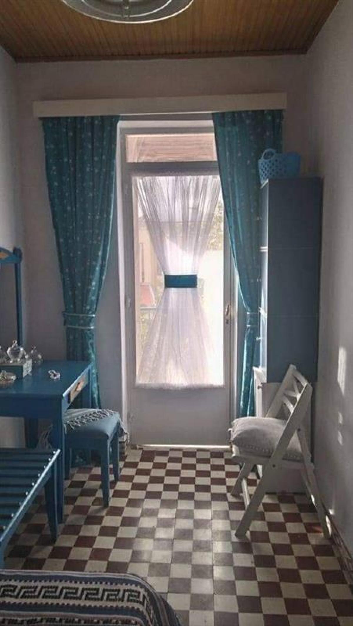 The second bedroom has traditional handmade tiles from the 1960s on the floor, in a chequered design. Each tile is uniquely handmade, which makes it even more beautiful. Also, in the second bedroom there is a large glass door leading out to the balcony.
