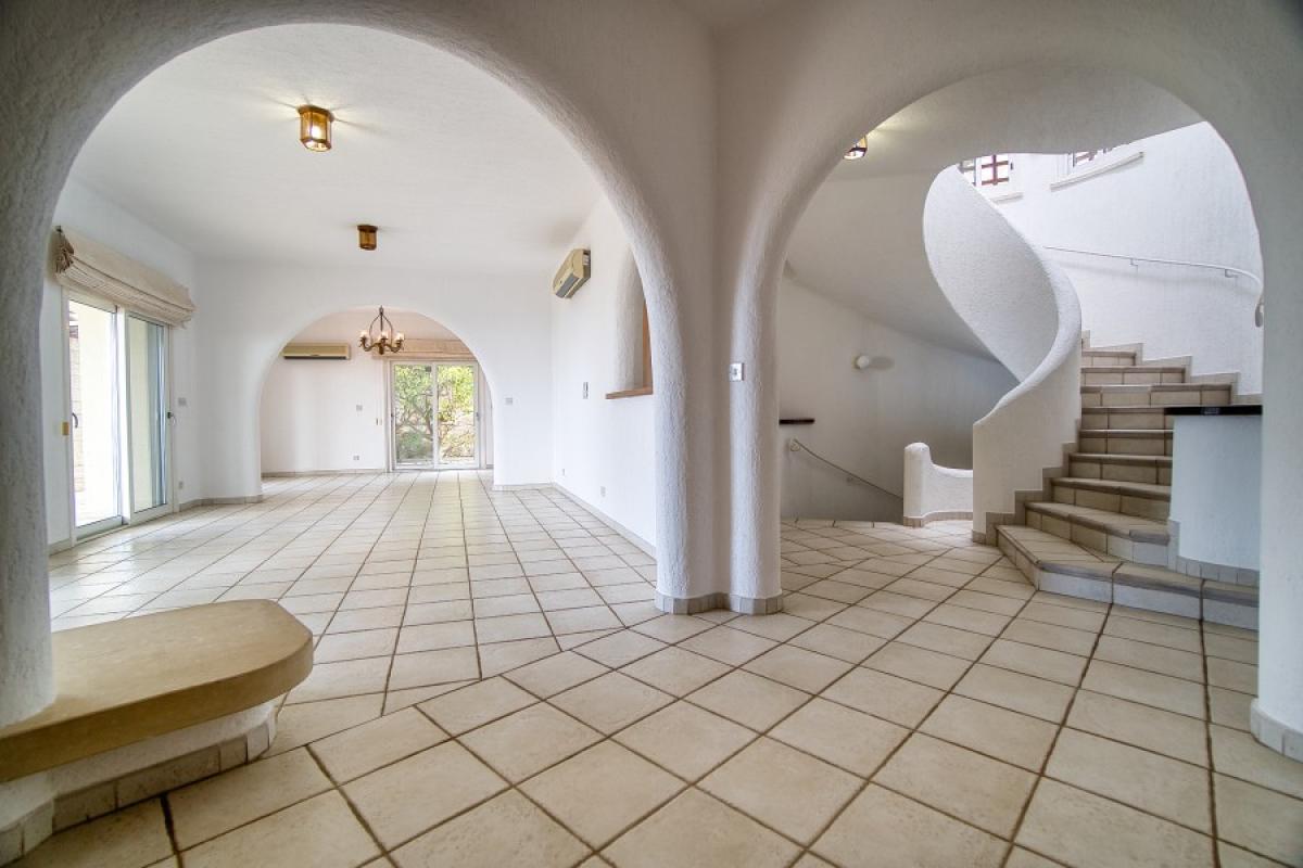 This enormous villa boasts majestic 180 degrees of the whole Paphos Coastline with incredible Mediterranean blue seas and breathtaking sunsets. Just walking distance from the Kamares Club House which offers all facilities - social club, concierge reception, restaurant, bar, events hall, swimming pool and medical centre. The quaintly pedestrianised Tala village square offers more entertainment, restaurants, pharmacy, supermarket and pubs which are only a short drive away. Located on the best road in Kamares - Kamares Avenue - the house is accessed by a private drive with turning circle for guests. Guests can enter through a private gate that takes them up a level to the pool area. Up another level is the front entrance and covered entertaining area. The lucky residents will enjoy a double electronic garage to safely protect their vehicles and they will use another internal staircase which was expertly crafted to look like a curved sea shell. The garage also offers a large storage area. The whole house is full of traditional arches in the classic Leptos style and is a masterpiece of the craftsmanship that propelled them to be one of the most successful developers in Cyprus. The architects designed every detail of the house to take advantage of the incredible views which can be enjoyed from every room with complete privacy! On the main level of the house there is a large open plan lounge with working fireplace to keep you warm and cozy. Central underfloor heating can be enjoyed during cold winter nights. Split level air conditioning units can change temperatures room by room to your comfort level. The open plan dining area leads out to a custom built BBQ designed by an Argentine expert. This connects to the large kitchen with a breakfast bar which is ideal for entertaining or large families. On the main level there is also a guest WC which is large enough to turn into another shower. Here there are 3 bedrooms. One was a music room, another an office and the 3rd was a guest room which has a large ensuite. The options are endless for a library, play area or gym. With all this space to play with, let your imagination run free and you can have everything that your heart desires. Upstairs on the top floor there are two further large bedrooms all with fitted cupboards and ensuites. Each bedroom also has a large uncovered balcony with fantastic panoramic sea views as a bonus. The house has a fully mature, irrigated garden with fruit and lemon trees for you to enjoy fresh lemons all year round! Please note that this house has been built on a DOUBLE plot and therefore the house is large and the grounds are extensiveThis wonderful home is pictured furnished but will be sold unfurnished. White goods may remain if the new owners wish to keep them.