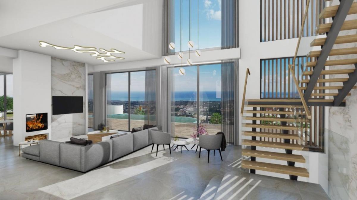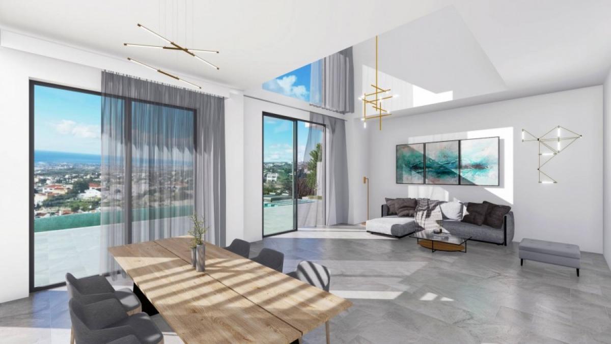 For sale spectacular unique villa with 4 bedrooms in Paphos, in a prime location of Tala hills.That villa was designed to enjoying the panoramic views from every room, offering contemporary luxury living. The masterfully designed residence blends effortlessly with the hillside, fusing indoor and outdoor living with floor-to-ceiling glass doors and windows. Living and dining areas capture views of the city lights, opening to the spectacular outdoors with infinity edged pool and sundeck. Tala is a village that is built at an elevated position of the Paphos district, at approximately 300m above sea level resulting in a cooler climate as well as a magnificent view of the sea and city below.A
