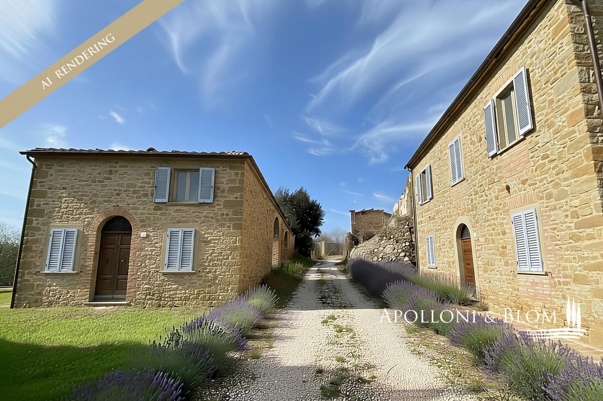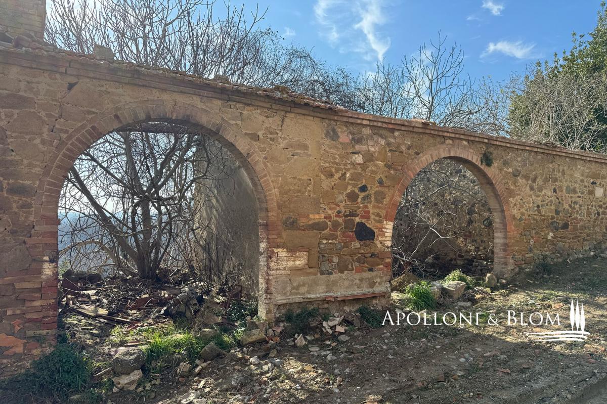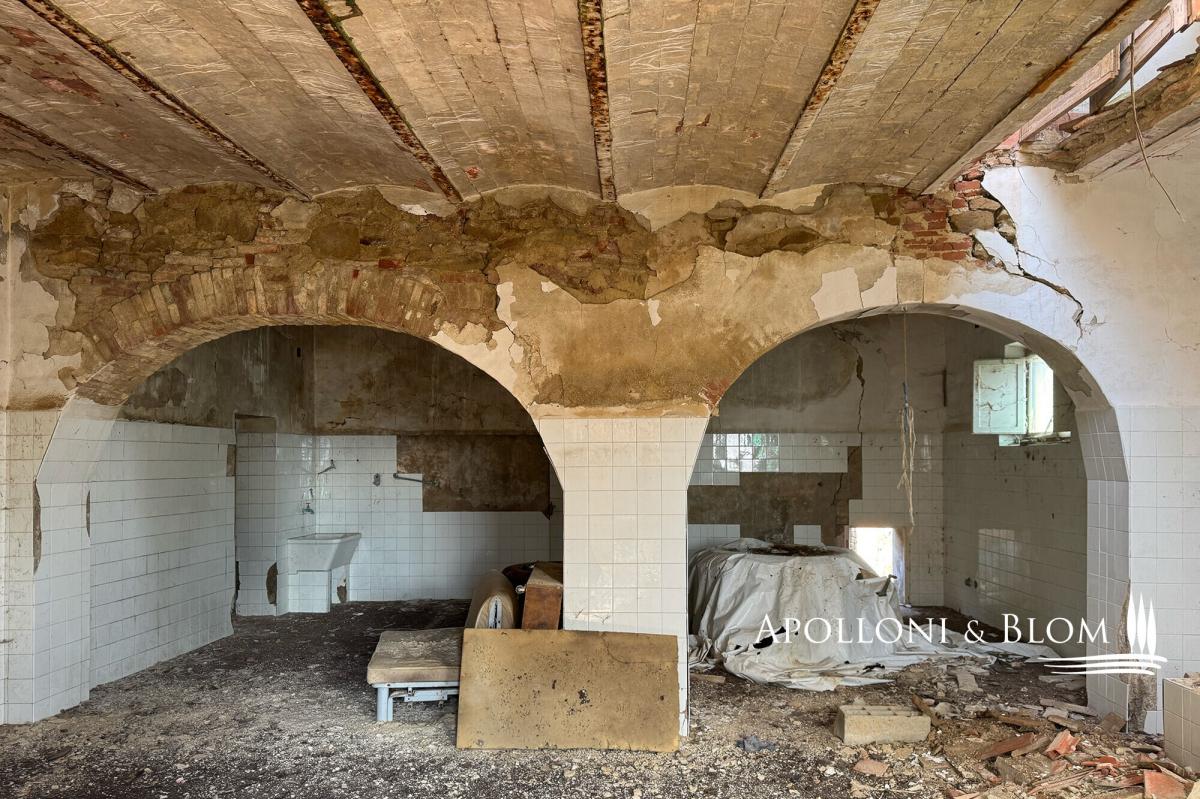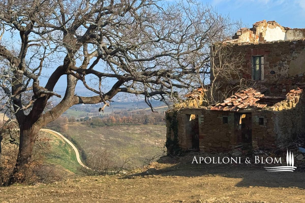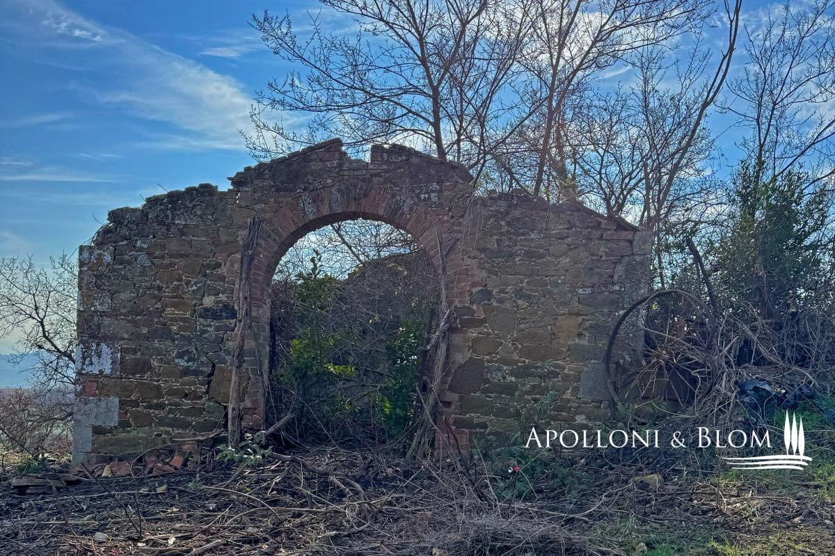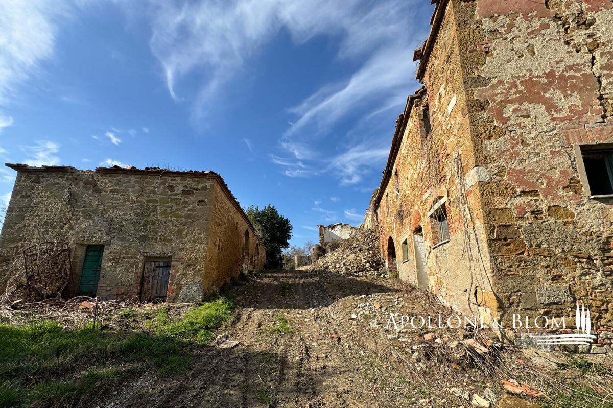 Investment Opportunity in the Heart of Tuscany: stone ruins to upgrade with 71 hectares of agricultural land for sale near Montepulciano. Located just 10 minutes from Montepulciano, in one of Tuscany’s most sought-after areas, this rural property offers a rare opportunity for investors and developers looking to establish a hospitality or agricultural venture in a highly touristic region. The estate enjoys sweeping views over the Val di Chiana countryside and is easily accessed via a 1.3 km gravel road, providing both seclusion and proximity to key services. Today’s photographs reveal what needs to be rebuilt: walls, roofs, floors; yet the future already takes shape in the architectural renderings. The property includes a traditional stone farmhouse on two levels, a detached annex featuring large original arches, and two agricultural sheds, for a total built surface of approximately 1,080 square meters (11.625 sq ft ) in need of full restoration. With the potential to create up to 30 rooms, the property allows flexibility in design and layout, it lends itself perfectly to redevelopment into a high-end agriturismo. Its architectural character and internal volumes are ideal for creating multiple guest apartments or suites, complemented by a swimming pool, landscaped gardens, or wellness areas. Alternatively, it could be transformed into a prestigious private estate with agricultural operations, combining lifestyle and land productivity. Surrounded by over 71.4 hectares (176 acres) of land, the estate combines arable farmland, mature olive trees, small wooded areas, and open fields, offering excellent potential for agricultural development, such as organic farming, olive oil production, or viticulture. Apolloni Blom offers full support throughout the redevelopment process, with a network of local professionals ready to assist with every aspect of the project, including permits, architecture, and turnkey delivery. For more information or to arrange a visit, contact us and explore the full potential of this investment opportunity in one of Tuscany’s most desirable locations. Property REF: MTP3369 Location: Montepulciano; Province: Siena; Region: Tuscany Type: ruin of farmhouse with external annex, arranged on two levels, totaling approx. 1,080 sq m/11.625 sq ft + 71.4 hectares/176 acres of agricultural land + a detached 120 sq m/1291 sq ft agricultural outbuilding + 2 agricultural warehouses Conditions: to be restored Land: 71.4 hectares/176 acres Layout: up to thirty rooms as per the original plan, but being a ruin, it can be re-designed Utilities: Well: not present but the soil is rich in water Water: mains city supply Electricity: available Distance from services: 5 km Distance from the main airports: Perugia 82 km, Florence 120 km, Rome 235 km Gravel road: 1.3 km- garden