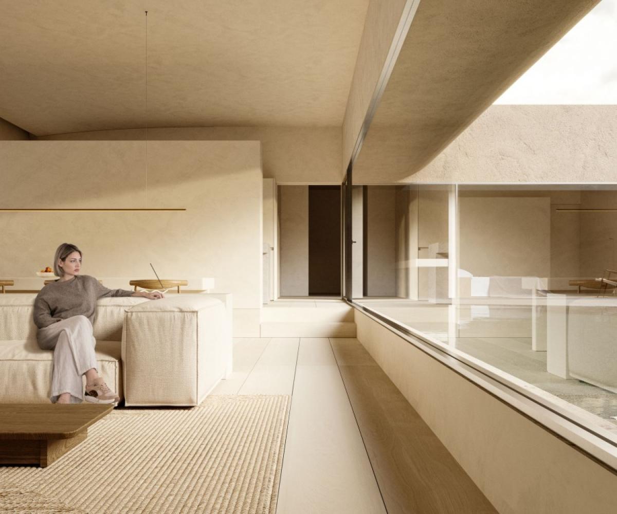 On the basis of the geotechnical study, the foundation is planned to be made of reinforced concrete using a system of isolated foundations and beams for bracing.StructureReinforced concrete structure formed by pillars, waffle slab and solid slabs in stairways. All in accordance with the requirements of strength, durability and quality established by the applicable regulations.RoofsThe roofs are flat and accessible for maintenance, inverted type, thermo acoustic insulation an waterproofing with asphalt membrane or similar. Protection layer with gravel in the color of the faA?ade.FaA?adeDouble enclosure of hollow brick wall leaving an intermediate air chamber with thermo acoustic insulation, and exterior finished with li me mortar cladding.WindowsAnodized aluminum windows with minimalist design, composed of large format sliding panels and, for greater comfort in the home, double glazing. The access door to the house is integrated into the living room window, with three point security locks and key operated opening.Interior carpentryDoors flush with the wall with aluminum frames, 50 mm thick, with double MDF board, top quality fittings and stainless steel handle. Lacquered finish in the same color as the wall. Wardrobe units with 19 mm MDF doors lacquered in white and interior structure of 19 mm chipboard veneered in textile melamine.Partition wallsThe partition walls are made of a lightweight plasterboard system with thicknesses depending on the areas of the house.Interior cladding Lime paint, breathable and waterproof, finished with paint glaze, onlaminated plasterboard. Natural stone tiles in bathrooms. False ceilings of laminated plasterboard throughout the house, with integration of technical and decorative coving.FlooringThe outdoor terraces have natural stone flooring. In the interior spaces, large format natural oak flooring has been selected. The bathrooms have natural stone tiles in combination with the walls.KitchenTall units and base units with door and drawer fronts finished in pollinate. Doors and drawers with automatic closing system. Natural stone worktop with stain protection. Includes waste recycling system, breakfast unit, induction hob, oven, microwave,extractor hood concealed in the ceiling and integrated fridge, freezer and dishwasher. All appliances are energy efficient. Specific area for washing machine and tumble dryer in a separate room.BathroomsCustom made stone washbasins. Shower trays flush with the floor and integrated fixed glass shower enclosure.White vitrified porcelain toilets with built in cistern. Premium quality mixer taps in chrome finish. Mechanical ventilation system for air renewal. Plumbing and sanitation Domestic hot water (DHW) production by means of aerothermal technology in compliance with current regulations. Indoor plumbing installation with multilayer PEXElectricityElectrical installation according to regulations and high degree of electrification. Top brand boxes and mechanisms.TelecommunicationsTV sockets in living room and bedrooms. Telephone sockets in living room and main bedrooms. Sockets for access to fibber optic broadband telecommunications services in living room and bedrooms.Air conditioningInstallation of ducted air conditioning in the home, with impulsions and returns hidden and integrated in the spaces.LightingClean ceilings and warm spaces with indirect lighting throughout thehouse, with direct light support in work or reading areas. Lighting system consisting of LED strips on terraces, plot access and toilets.Plot gardensA fence made of steel profiles and metal mesh to support the hedge will be installed along the garden dividing walls. The gardens will have a water supply.Swimming poolCeramic tiled infinity pool, with salt chlorination purification system and interior lighting.