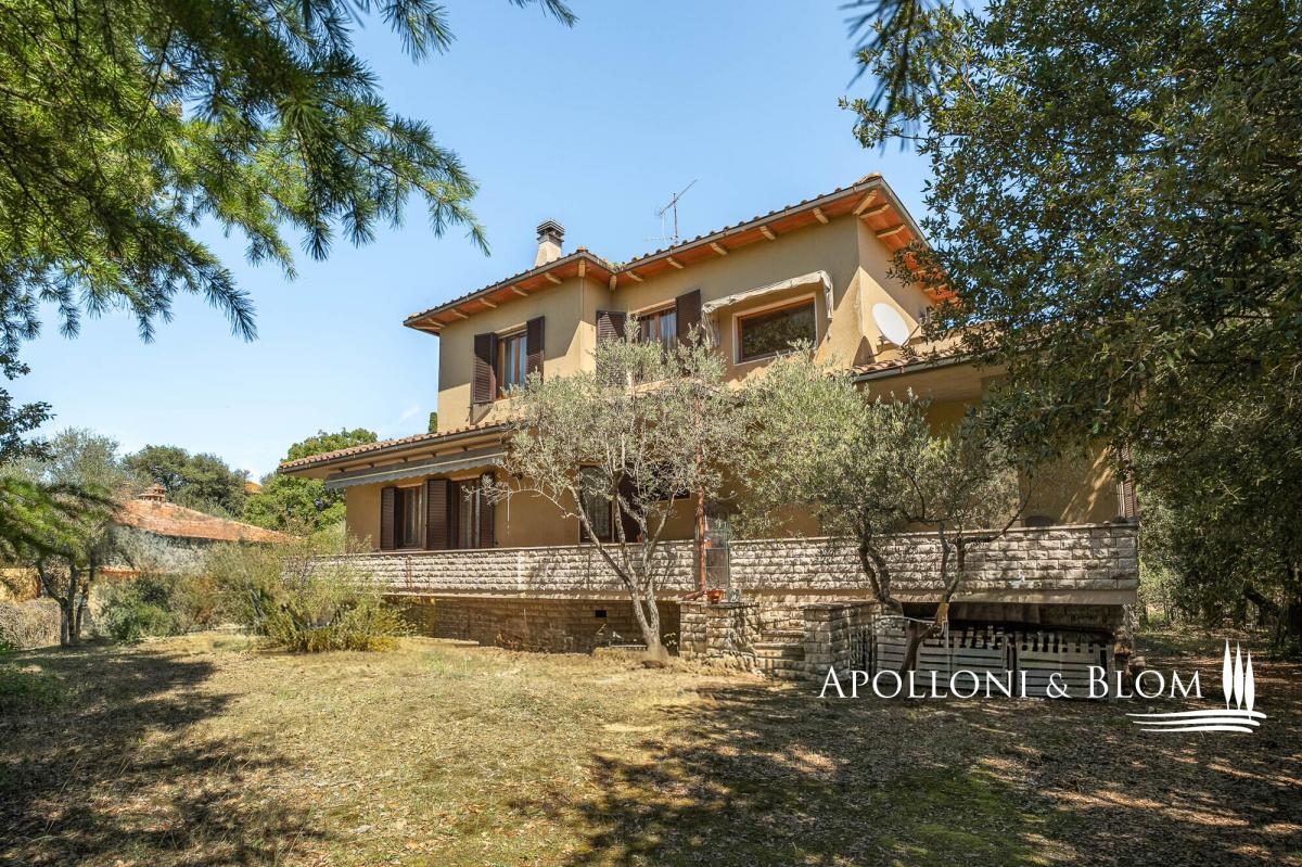 In a green and panoramic setting, on three levels with garage and fenced garden, to be re-styled, for sale in Trequanda, Siena. Prime Investment Opportunity to create a contemporary luxury residence in one of Tuscany’s most coveted landscapes. Located just beyond the ancient walls of the historic centre of Trequanda, the property enjoys a discreet residential setting surrounded by rolling hills and commanding sweeping views towards Montalcino and the UNESCO-listed Val d’Orcia. With convenient access via a private driveway, the house benefits from off-road parking and a basement garage. The accommodation extends over three levels, offering approximately 448 sq m/4,822 sq ft of versatile interiors. On the main floor, the entrance hall leads to a spacious double living room opening onto a terrace, along with a kitchen, study, hallway, bathroom with window, a bedroom, and a multipurpose room with a second entrance, ideal for conversion into a guest suite or leisure area. The first floor comprises a hallway with access to a second terrace, three double bedrooms, one single bedroom, and a bathroom with window. The basement level currently houses a kitchen, hallway, storage room, two spacious cellar rooms, and the garage. Outside, a fully enclosed landscaped garden of 1,820 sq m (0.44 acres), bordered by mature hedges and tall trees to ensure privacy. The grounds offer generous space for landscaping, vegetable gardens or outdoor leisure areas, and include a dedicated zone suitable for an in-ground swimming pool (subject to permit). Perfectly positioned to combine tranquillity with proximity to amenities, this house presents exceptional potential for restyling and upgrading into a refined modern villa with state-of-the-art comforts and technology. Whether envisioned as an elegant family residence or a high-yield investment in the heart of southern Tuscany, it offers an enviable balance of location, scale, and opportunity. PROPERTY Ref: TRQ3251 Location: Trequanda, Province: Siena, Region: Tuscany Type: 448 sqm/4822 sq ft three-story detached family home with terraces, basement garage and cellar, garden Year of construction: 1990s Condition: good Garden: 1,820 sq m/0.44 acres, fully fenced with hedge borders, driveway, gated, mature tall trees, and space suitable for an in-ground pool (permit required) Terrace/Balcony: 20 sq m/215 sq ft ground-floor terrace; 15 sq m/161 sq ft first-floor terrace Parking: 25 sq m/260 sq ft basement garage Utilities: Fixed telephone network: available Internet: broadband available Heating: methane Water: mains city supply Electricity available: Water waste: mains city connection Distance to services: 300 mt Distance to main airports: Perugia 72 km, Florence 80 km, Rome 230 km Layout: Basement: kitchen, hallway, storage room, two cellar rooms (48 sq m/516 sq ft in total), garage Ground Floor: entrance hall, double living room with terrace, kitchen, study, hallway, 1 bathroom with window, 1 bedroom, and a multipurpose room (to be designated) of 32 sq m/344 sq ft with a second entrance First Floor: hallway with access to terrace, 3 double bedrooms, 1 single bedroom, 1 bathroom with window- garage