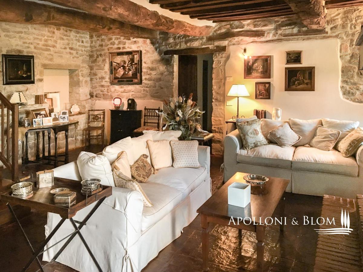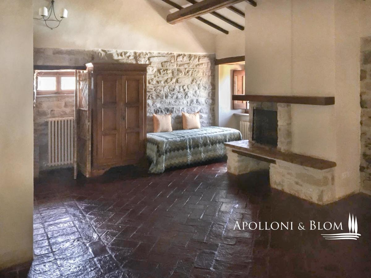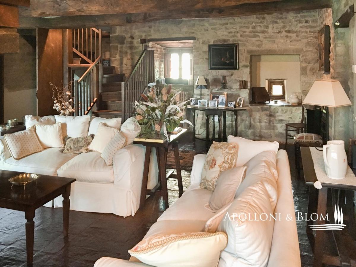 Historic Country Estate with three-story stone villa, guest cottage, annex, panoramic pool, park and land for sale in Umbertide, east from Perugia. Commanding a privileged hilltop position in the green heart of Umbria, this historic country estate ois surrounded by 18 hectares of woodland and pasture, it enjoys sweeping views and an atmosphere of peace and timeless charm, yet remains conveniently close to services and key connections. It is accessed via a well-maintained gravel road, which gently winds through the forest and opens to the estate, enhancing the sense of seclusion and arrival. At its centre stands a handsome three-storey stone residence spanning 637 square meters (6856 sq ft) of considerable character, restored with exacting attention to tradition and detail. Original stonework, exposed wooden beams, and handmade terracotta floors anchor the interiors in the region’s rural vernacular, while thoughtful restoration has introduced understated elegance and comfort throughout. The atmosphere is one of warmth, authenticity, and quiet sophistication. On the ground floor, generous living spaces flow naturally from room to room, including a sitting area with fireplace, a second reception space, two bedrooms, a bathroom, and a cellar. One wing of the house features a private entrance from the garden and is currently used as a wine cellar and storage area. A separate self-contained apartment is also located on this level, perfect for guests or staff, arranged over two floors with a cosy living space, kitchenette, bathroom, and mezzanine sleeping area. The first floor is centred around a luminous salon with a grand stone fireplace, leading into a spacious country kitchen and an additional lounge. Two bedrooms and a bathroom complete this level, with internal and external access allowing privacy and flexibility of use. The top floor offers a particularly charming living room with a fireplace, two bedrooms, both with double windows framing panoramic views of the valley, and a bathroom, creating a peaceful and private space ideal for owners or premium guests. Complementing the main house are two annexes: a two-level 1-bedroom guesthouse full of rustic charm, and a more recent structure designed for service use, complete with a kitchen and utility spaces, and fronted by a beautiful portico with arches—perfect for future conversion or expansion of hospitality services. A panoramic swimming pool, set in a quiet and sheltered spot within the grounds, offers an idyllic place to relax while enjoying unobstructed views. A significant country estate that combines historic character with architectural integrity and outstanding development potential, whether as an elegant private home, boutique accommodation, or luxury rural retreat in one of Italy’s most authentic and scenic regions. PROPERTY Ref: PER2349 Location: Umbertide, Province: Perugia, Region: Umbria. Type: 1160 sqm/12486 sqft estate consisting of a 637 sqm/6856 sqft three-story stone house, park with swimming pool, a 70 sq m/753 sq ft guest cottage on two levels, 86 sq m/925 sq ft annex + porch of 60 sq m/645 sq ft; 307 gross sq m/3304 sq ft tool shed, agricultural land Land: approx. 18 hectares/44,5 acres, of which 1,5 ha of pasture and the rest of woodland Swimming pool: panoramic and private, 6x12 mt Utilities: Fixed telephone network: available Wi-Fi: available Heating: autonomous, there are three gas condensing boilers Water: city water network Electricity: active Automatic gate Distance from services: 2.6 km Distance from main airports: Perugia 41 km, Florence 157 km Layout: Country House: Ground Floor: living room, another living area, 2 bedrooms, bathroom, cellar, closet First Floor, with access from both the outside and the inside: central living room with large fireplace, kitchen, additional living room with stone fireplace. 2 bedrooms, bathroom Second Floor: living room with fireplace, 2 bedrooms, both with double window openings with panoramic views and ceilings with wooden trusses, bathroom Independent apartment on the ground floor of the country house, 50 sqm: Ground Floor: living room with bathroom and kitchenette Mezzanine Floor: bedroom Guest House - 70 gross sqm/753 sqft: Ground floor: entrance porch with stone columns and wooden truss, living room with fireplace, kitchenette, bathroom First floor: double bedroom Annexes: toolshed of 307 gross sq m/ 3304 sq ft, main annex of 86 gross sq m/925 sq ft + porch of 60 gross sq m/645sq ft- garden