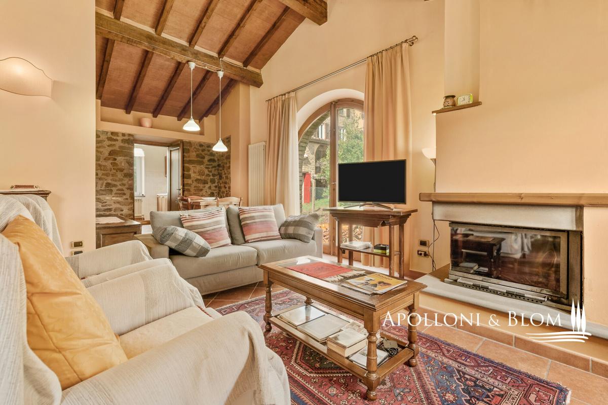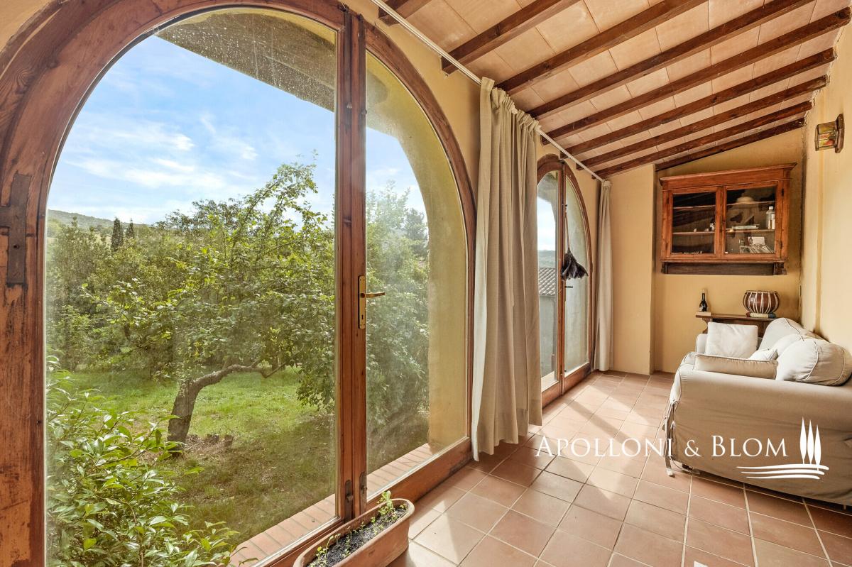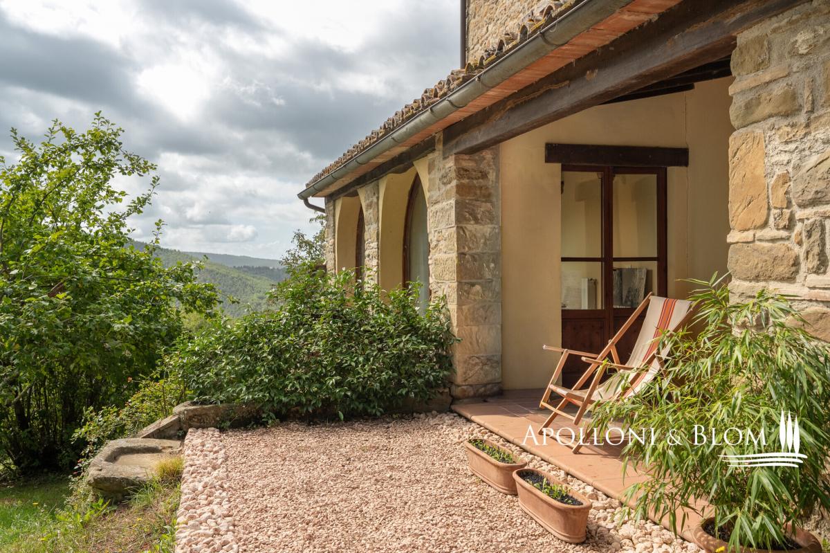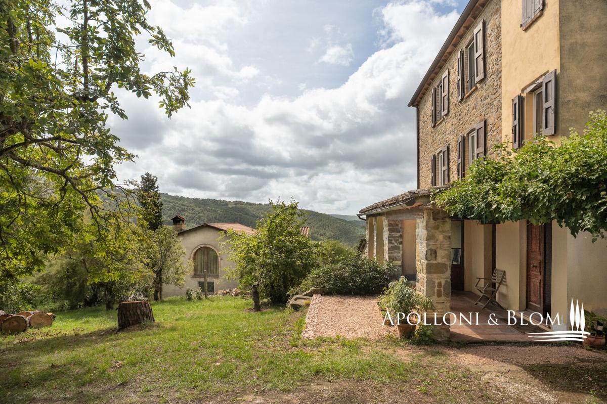 35-ha/86-acres estate with olive grove, two renovated country houses and annex for sale in the umbrian country side near Lisciano Niccone. A Timeless Estate Amidst the Green Heart of Italy. Set in the unspoiled countryside near the charming hamlet of Preggio, this enchanting estate unfolds across 35 hectares (86 acres) of organic olive groves, arable land, and forest. Reached by a winding road that begins at the tranquil shores of Lake Trasimeno and meanders through fields and forests, the property offers a rare combination of authenticity, natural beauty, and income potential. At the heart of the estate lies a 500 square meters residential complex, comprising two exquisitely restored stone country houses and an agricultural annex awaiting transformation. The dwellings, thoughtfully positioned to ensure privacy and functionality, blend seamlessly into their environment, an ideal setting both for private living and for refined hospitality ventures. The first house is arranged across three levels, showcases a versatile and welcoming layout. The ground floor features a tavern, an en-suite bedroom, a veranda, and deposit rooms. On the first floor, a spacious living room, kitchen, bedroom, and bathroom open towards the landscape, while the top floor offers two further bedrooms and a bathroom. Sunlit and elegantly proportioned, the interiors carry the timeless charm of Umbrian stone and traditional craftsmanship. The second house, distributed over two levels, retains its rustic character while offering modern comfort. The ground floor is dedicated to service and storage rooms, while the first floor, accessible from a panoramic veranda, welcomes with a warm living room and fireplace, a kitchen, two bedrooms, and a bathroom. An unfinished wing presents further opportunity for bespoke expansion and tailor the residence to individual needs. The agricultural annex, currently to be renovated, provides an additional canvas for creative development, whether for guest accommodation, atelier, or leisure facilities. Beyond the architecture, the estate’s vast grounds are its true crown: a centuries-old olive grove producing organic oil, fertile arable land, and dense woodland alive with birdsong. Manicured gardens and a private access road complete the picture of serene seclusion. This is a property of distinction, where landscape, heritage, and opportunity converge, an exclusive retreat in the most authentic corner of Umbria, capable of offering both elegance of lifestyle and the rewards of sustainable cultivation. PROPERTY Ref: PER3535 Location: between Preggio and Lisciano Niccone, Municipality: Umbertide, Province: Perugia, Region: Umbria Type: 35-ha/86-acres estate with olive grove and a 500 sqm/5,181 sq ft complex made of 2 country houses plus an annex Land: 35 ha/86 acres of land including a garden area, 1,5 ha/3.7 ha of centuries-old olive grove, 12 ha/29.6 acres of arable land, and the remaining mainly forest Utilities: Fixed telephone network: available Internet: available Heating: LPG Water: 1 well Electricity: available Water waste: Imhoff tank Distance from services: 2 km/1.2 miles Distance from main airports: Perugia 45 km/27 miles, Florence 140 km/86 miles and Rome Fiumicino 220 km/136 miles Gravel Road: 480 m/1,574 feet Layout: First Country House 240 sq m/2,583 sq ft: Ground Floor: tavern, 1 bedroom with 1 bathroom en suite, veranda, bottoms; First Floor: bedroom, bathroom, living room, kitchen; Second Floor: 2 bedrooms, 1 bathroom, laundry Second Country House 246 sq m/2,647 sq ft: Ground Floor: deposit rooms; First Floor: entrance with veranda, living room, kitchen, 2 bedrooms, 1 bathroom; (a part of this farmhouse is to be renovated) Annex: 24 sq m/258 sq ft, to be renovated- garden