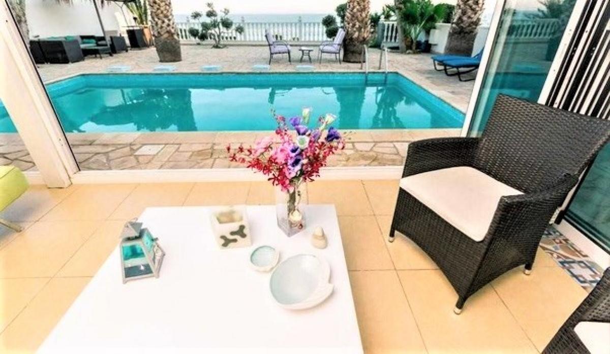 Stunning seafront 4 bedroom detached villa located in Zygi with private beach access. The property is situated on a plot of 670, offering spacious accommodation from 180 covered areas. It has been thoughtfully designed in a very attractive layout and has a large fitted kitchen, a very spacious dining and living area and a guest toilet. Upstairs there are three good sized bedrooms including the master bedroom with en-suite shower room and family bathroom. Outside there is a beautiful garden with barbecue, private swimming pool with outdoor shower, veranda with gazebo, maid's room with shower and covered parking for two cars. The house is located in a very quiet and safe area and is the last corner house of a small community of 5 houses. The property is located in the middle of 3 cities, Larnaca, Limassol and Nicosia are 25 minutes drive away, as well as the international airport. The hike is considered to be the most famous fishing village in Cyprus, it also has a very nice marina.