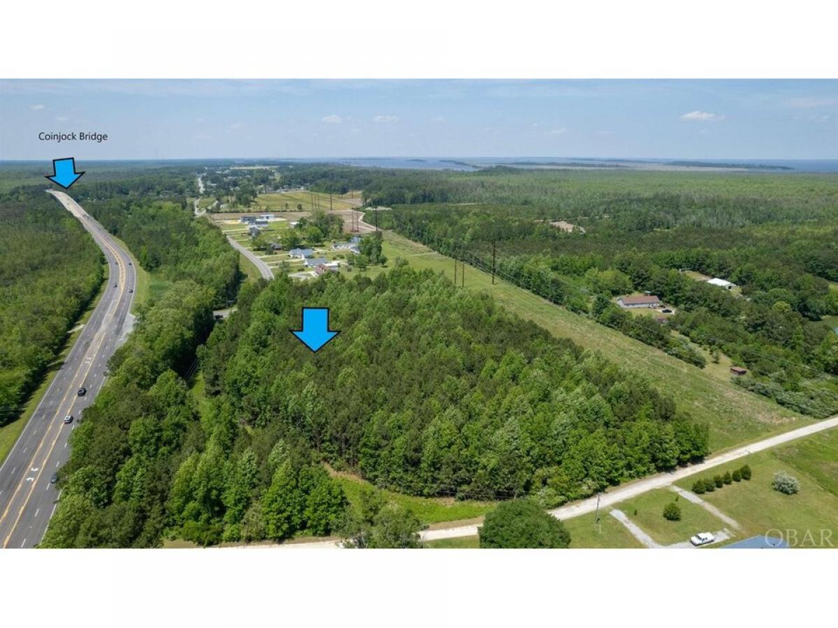 Opportunities Abound in this high traffic area by the Coinjock Bridge. Over 6 acres zoned General Business. Some day, service road to new bridge may run along this area, a great opportunity for catching tourist traffic! See multiple documents, maps and information in the listing for more details. UPDATE: NCDOT has notified Seller that there is a possibility that the property could have a service road coming through that would split the acreage. Working to confirm if this is actually an approved project and if so, when. See last map in associated docs.