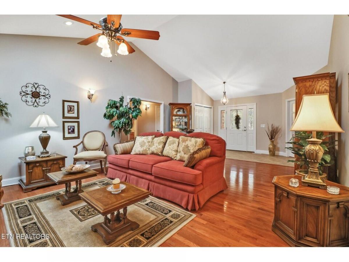 Lovely custom built 3 bd, 2 ba, 2377 sq ft home on corner lot. Many upgrades such as natural gas furnace, gas hot water heater and hardwood floors (except 2 guest rooms) and many plantation blinds. Split floor plan offers privacy, and cathedral ceiling in great room and natural stone gas log fireplace will charm you. PLUS you have to see to believe the private 19#039;x14#039; outdoor living area. This 3 season room just steps off existing deck is covered and fully screened. Add your seasonal television, refrigerator and spectacular views for outdoor enjoyment. Kitchen features alder wood cabinets, new granite countertops and new subway tile backsplash. Stainless steel appliances and over and under counter lighting are recent additions as well. Formal dining room/office has a bay window, glass paned double entry door off foyer and a pocket door closing or opening to kitchen. Owners#039; suite has plantation blinds, a large walk in closet, bath with dual sinks, new large walk in shower, 2 linen closets and ceramic tile floor. Bedroom 2/office features plantation blinds, ceiling fan and carpeted flooring. Bedroom 3 has ceiling fan, carpeted flooring and lots of natural light. Guest bath has a step-in shower, transom window and ceramic tile flooring. Laundry room has extra cabinetry, laundry tub and pocket door for privacy and quiet. Sunroom is located just off the kitchen eating area and has a window seat with storage and wood floors. Maintenance free deck with solar lights connects to outdoor living area. Garage is oversized and easily houses 2 cars and additional storage/shelving. Very tall crawl space has a large cement slab and workshop area. Fairfield Glade charges a $5,000 amenity fee to buyer at closing.