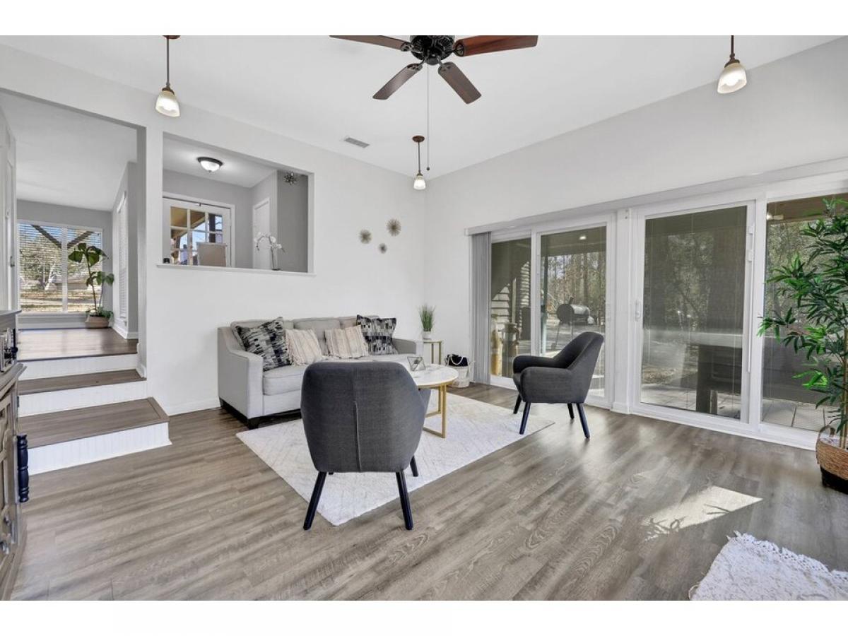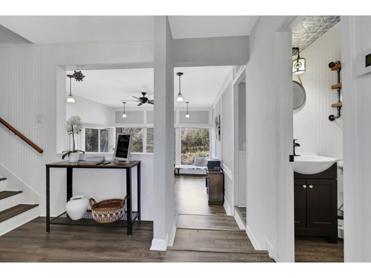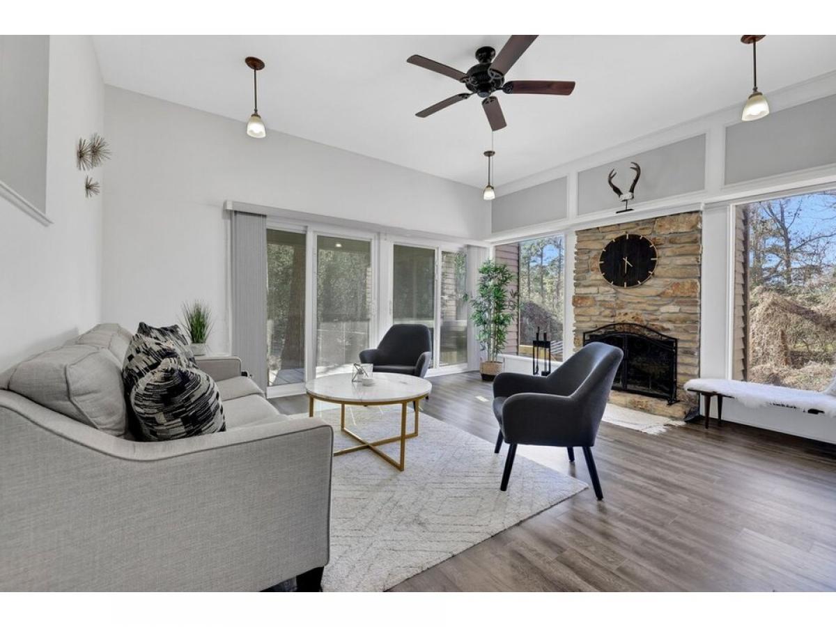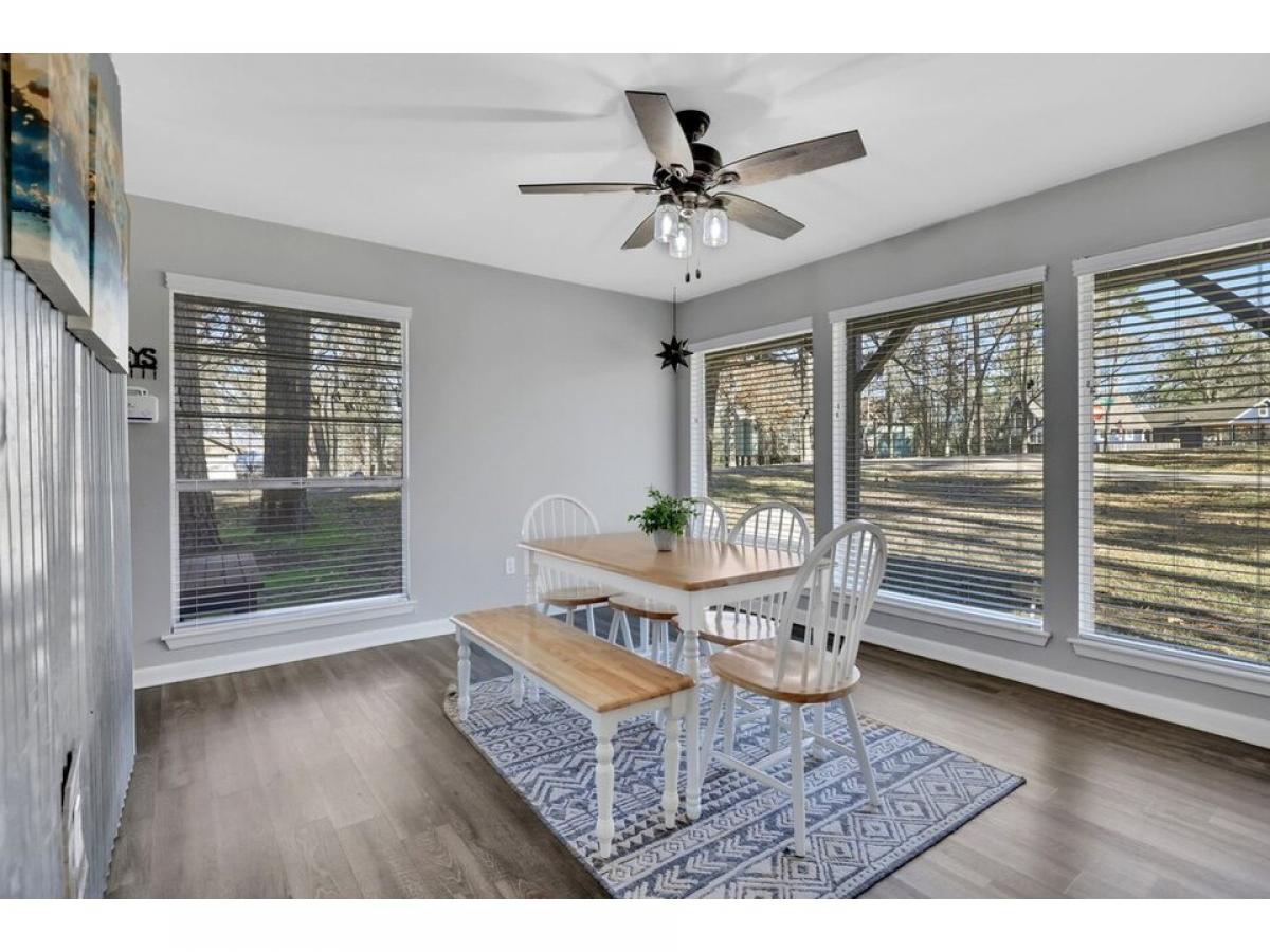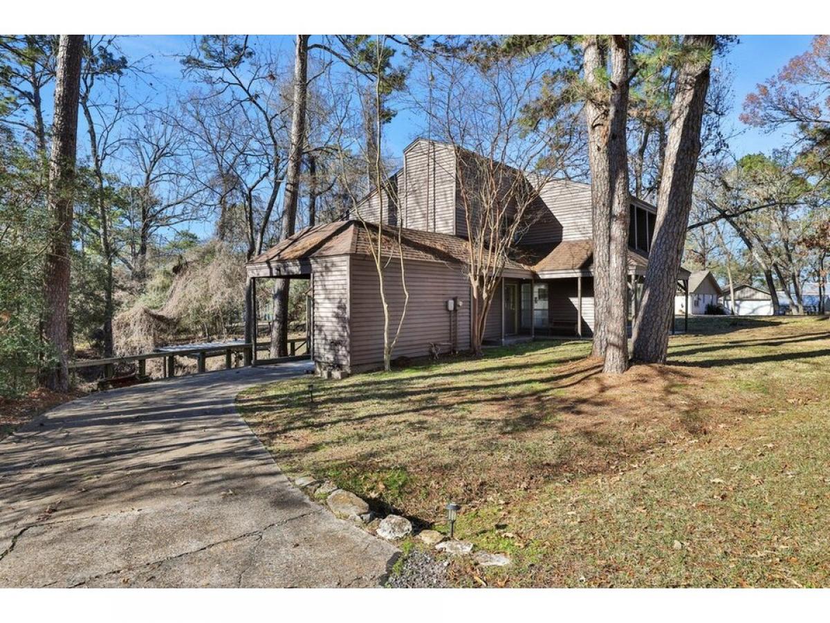 Escape to the serene beauty of Lake Livingston with this charming home situated on a corner lot. Thoughtfully updated and move-in ready, this home has been painted in a soft, neutral palette with wood grain vinyl flooring throughout and rustic style ceiling fans/light fixtures. Start your mornings with a cup of coffee as you watch the deer and red foxes wander through from the large windows in the living area. Or retreat to the peaceful gazebo outside, nestled lower in the terrain, where you can enjoy a front-row seat to the incredible deer population that frequently wanders through. The kitchen which features stainless steel appliances, mosaic tile-patterned backsplash and granite countertops, easily flows to the dining area for meals and entertaining. The carport has a storage room and utility room for convenience. Located in the sought-after Cape Royale community, residents enjoy a gated entrance, marina, community swimming pool, tennis courts, parks and more.