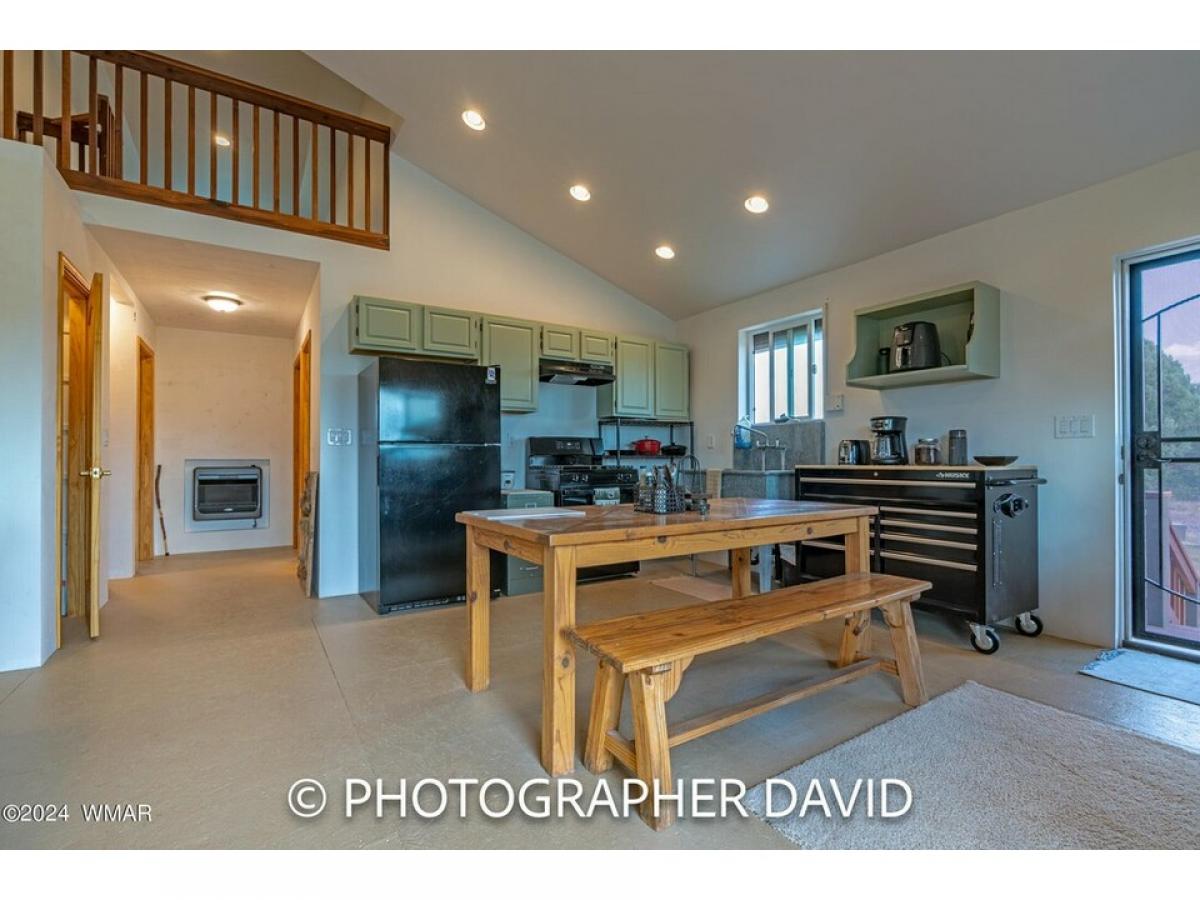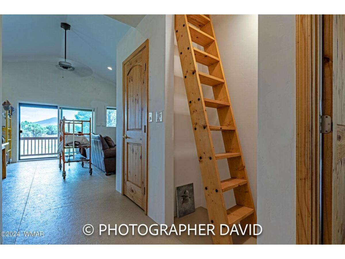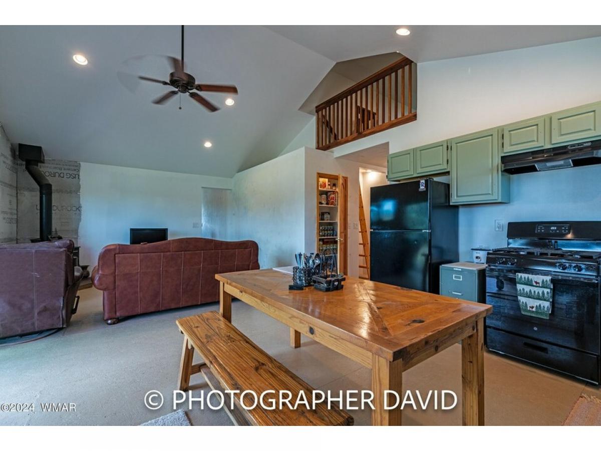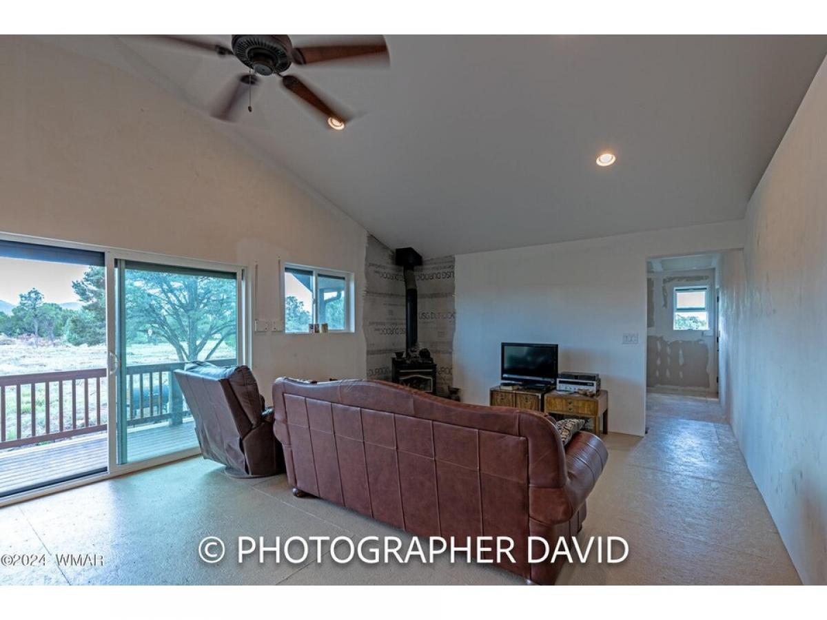Private 2 bedroom home on 7.75 acres. Good access roads and close to town. This home sits on fenced property on heavily wooded 7.75 acres. Site built home on stem wall that has both gas and wood heat. The vaulted ceiling gives a spacious feeling and views from the loft boasts incredible views of the White Mountains. This home has a metal roof and a large front deck, with a single attached garage. Near BLM Land and National Forest. Great for those looking for trails for ATV's and hiking. Lots of wildlife to enjoy. Property has additional septic system, water and power for RV parking on included lot next to property.