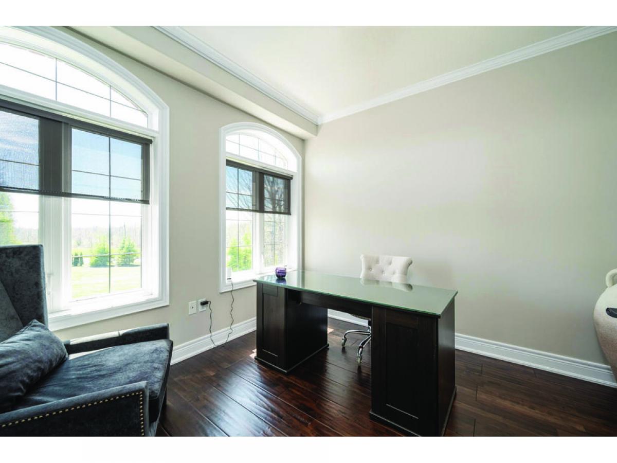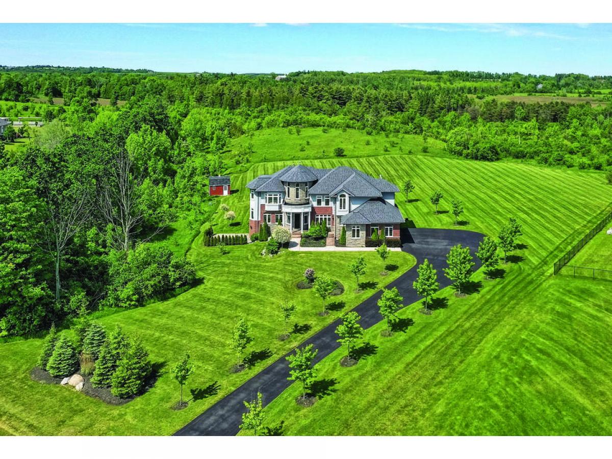 Ideally situated at the end of a private cul-de-sac lies this custom built beauty by Winzen Homes. Ensconced on over eight acres and bordering conservation protected lands and trails, this property offers a level of privacy unheard of. Thoughtfully curated to accommodate large families, with careful attention to detail, make this estate home highly desirable and a wonderful home to raise a family. Over 6,000 total square feet of luxury abounds over three levels of this home. Once you enter the welcoming formal front foyer, the home unfolds itself with a seamless floor plan. The main level offers an open concept layout but allows for private spaces to relax, work or play. Two home offices allow for the work at home experience with enticing views! The second level provides five generous bedrooms including an oversized primary suite with its own private den area and spa like ensuite. The fully finished lower level boasts a walkout to the rear yard, two further bedrooms and several lounging and recreational spaces, something for the whole family. The home also has energy efficient Geothermal heating. Once outside, the beauty of the landscaped property becomes apparent. With over eight acres to explore, along with walking trails and wooded areas, the imagination can run wild. The large deck with pergola and custom concrete basketball pad allows for family gatherings and entertaining friends.