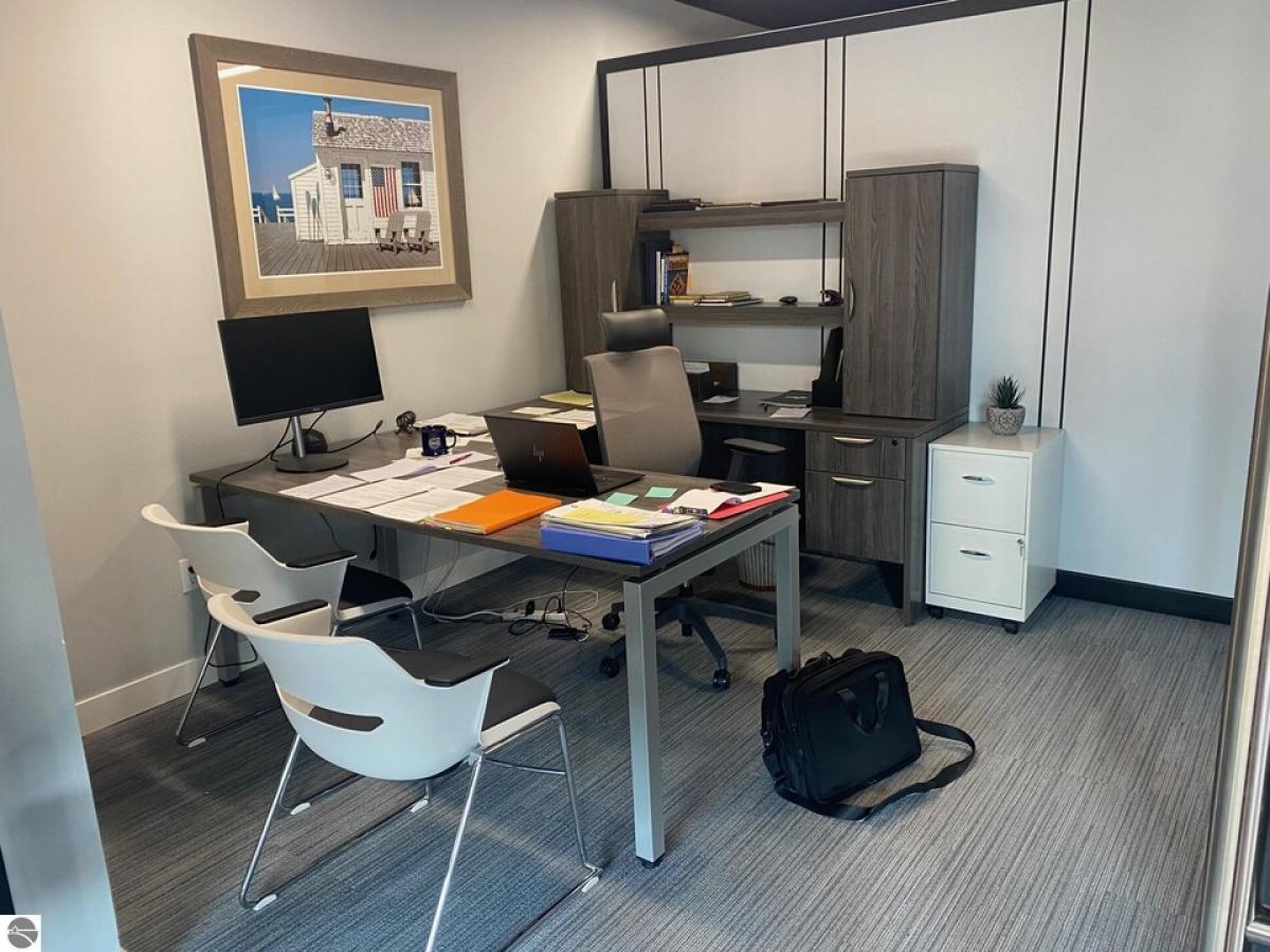 Completely updated main floor commercial space with high-end finishes! Several offices, conference room, kitchenette, private bath, glass partition walls offer great options/flexibility!