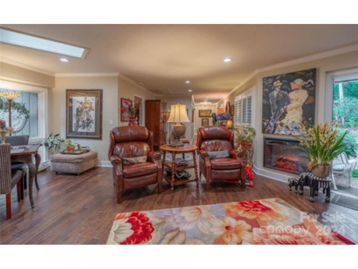 Nestled in Tryon, NC, 100 Stone Circle Drive is a beautifully renovated home blending rustic charm with modern luxury across 3,725 sq. ft. Features include a living room with mountain views, exposed brick, and three fireplaces. The luxe primary suite offers tray ceilings, dual vanities, a walk-in shower, and dual closets. The lower level has a guest suite and den with exterior entrance. Outdoors, enjoy a deck with a pergola, an outdoor fireplace, and manicured landscaping on 1.78 acres. A separate studio/man cave provides a serene retreat. Located near Harmon Field Park, downtown Tryon, and scenic mountain drives, it's 45 minutes from Asheville & Greenville. $450,000 in renovations since 2015 include a new roof, HVACs, master and guest suites, an expansive deck, Pella windows, and more. Additional features: whole house generator, security system, irrigation, low voltage lighting, and heated/cooled garage. View could easily be expanded. Stunning, manicured gardens and paths throughout.