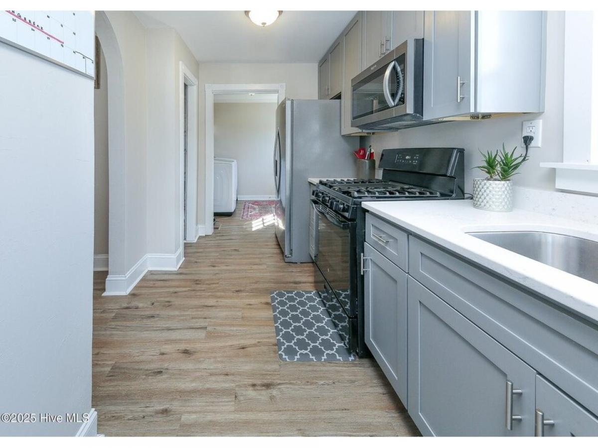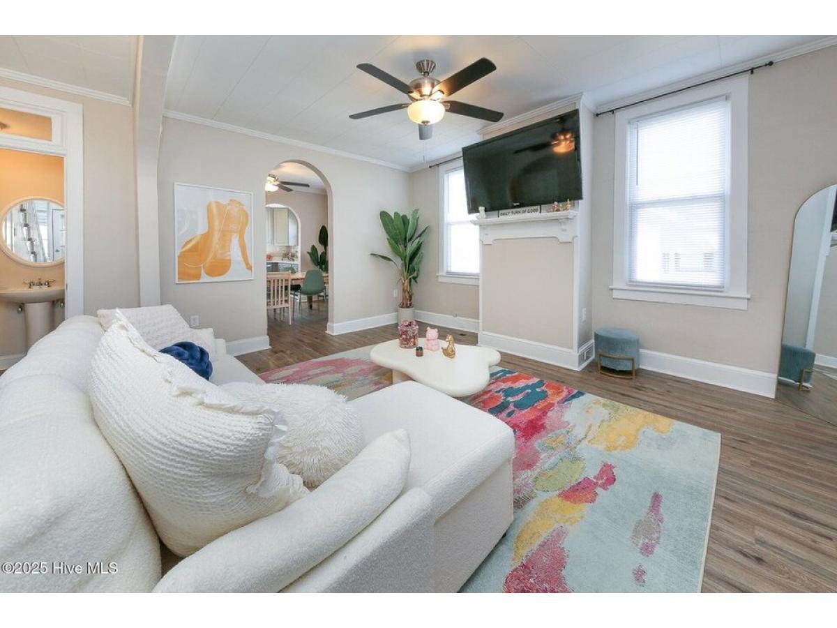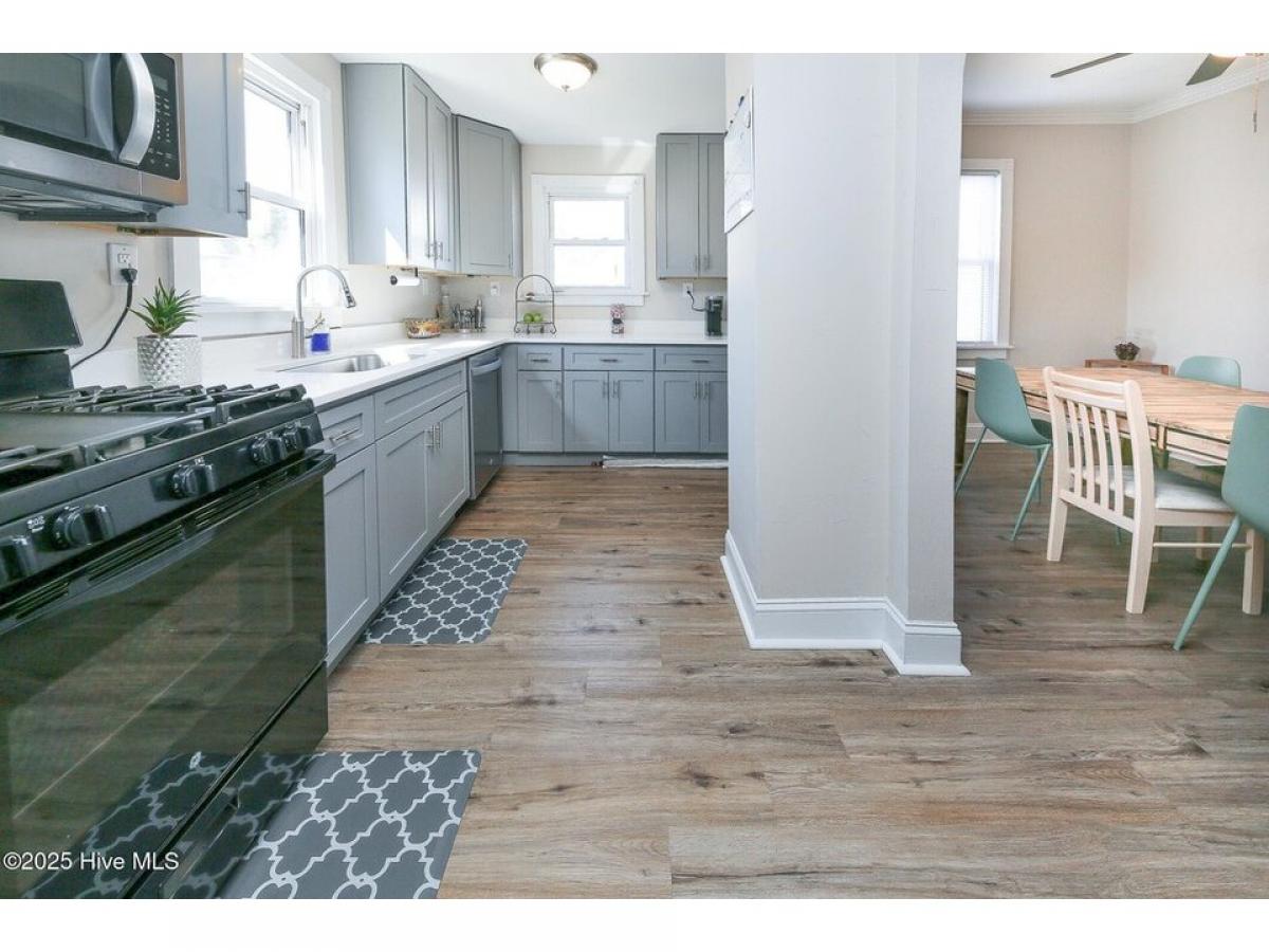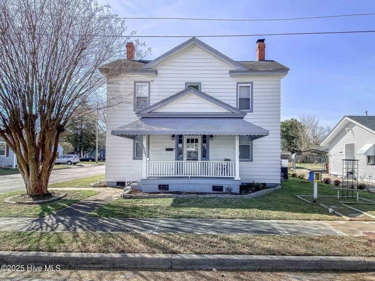Picture yourself in this charming historic home located on a spacious corner lot in the historic district of Elizabeth City, within walking distance of the restaurants, breweries, and specialty shops the downtown area offers. Southern charm welcomes you, from the front porch to the elegant arches of this beautifully updated home. It features spacious rooms and neutral interiors, ready for your personal touch. Updated flooring has been installed throughout. The primary bedroom is conveniently located on the first floor and includes a sitting area and a walk-through closet that leads to the en-suite bathroom, which boasts a whirlpool soaking tub. A modern kitchen design setup with stainless/black appliances, a 5 burner gas range amp; a built in pantry space. A patio courtyard is nestled between the house and the detached building, inviting you to create your ideal atmosphere. You can design it to include an outdoor kitchen and dining area, a dedicated lounging and seating area, a container garden, or a combination of all three. Enhance this outdoor space by adding an umbrella or shade sail, and enjoy the pleasant North Carolina climate throughout the year. The detached building is currently used for storage, but a simple modification could restore it to its original design as a garage. Are you looking for a historic home with modern amenities and easy access to local activities? This property is a must-see; don#039;t miss out!