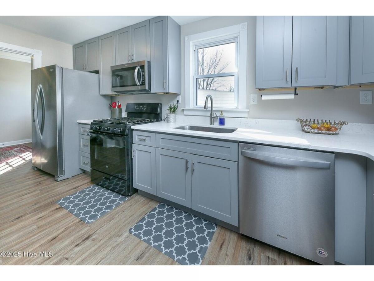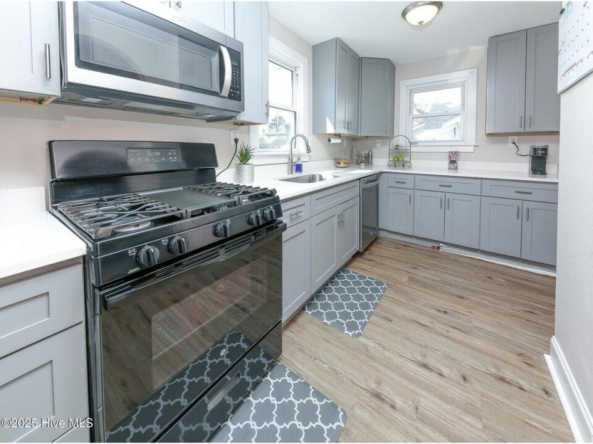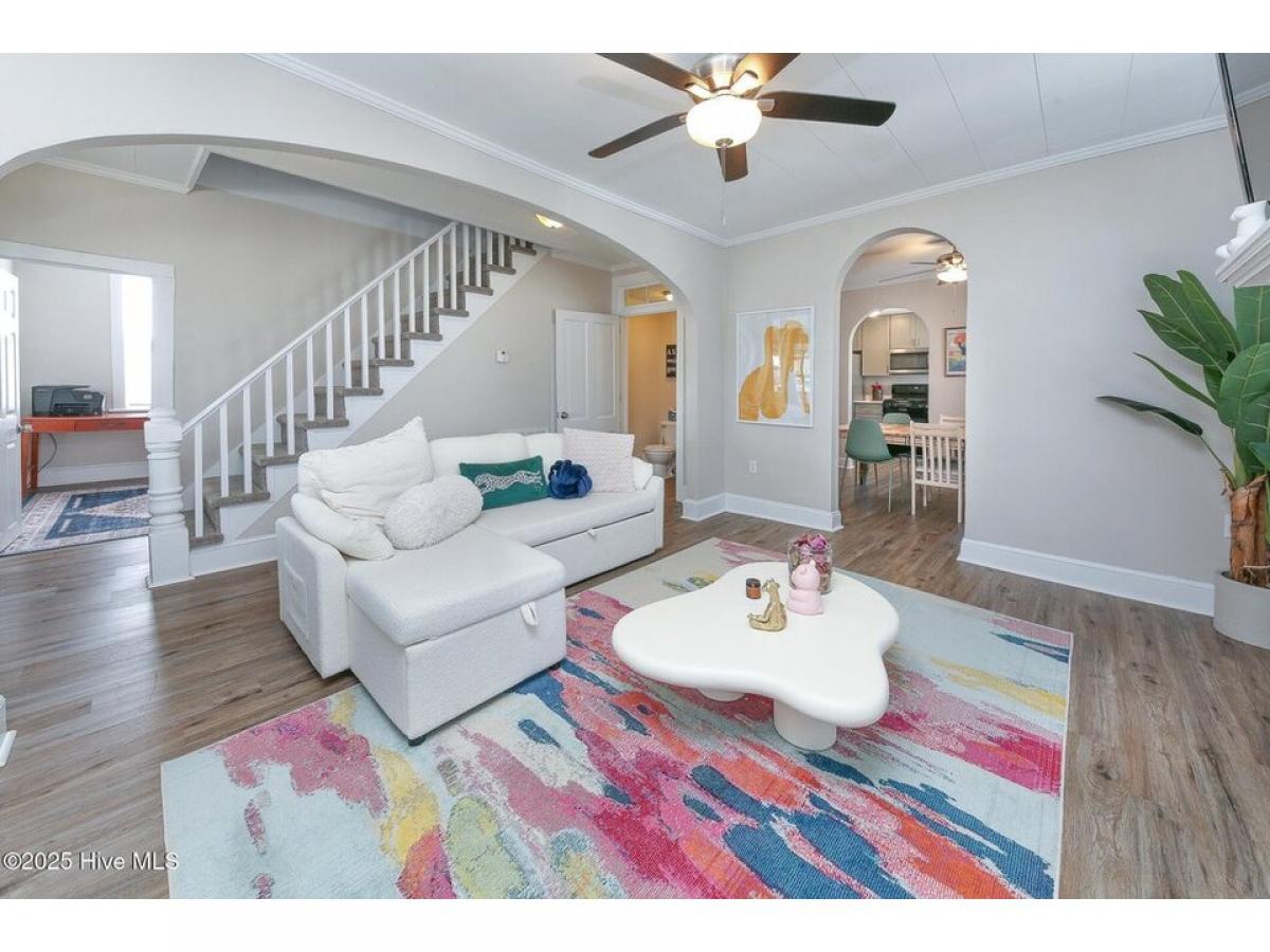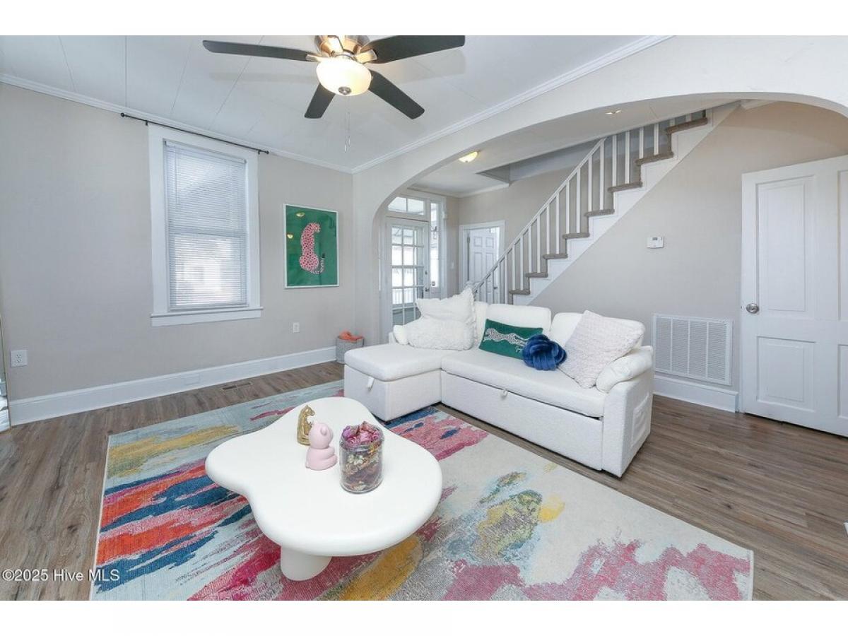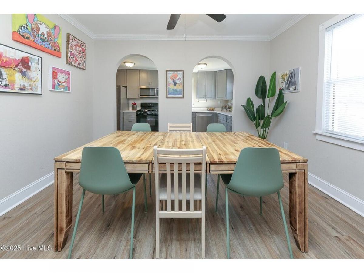 Picture yourself in this charming historic home located on a spacious corner lot in the historic district of Elizabeth City, within walking distance of the restaurants, breweries, and specialty shops the downtown area offers. Southern charm welcomes you, from the front porch to the elegant arches of this beautifully updated home. It features spacious rooms and neutral interiors, ready for your personal touch. Updated flooring has been installed throughout. The primary bedroom is conveniently located on the first floor and includes a sitting area and a walk-through closet that leads to the en-suite bathroom, which boasts a whirlpool soaking tub. A modern kitchen design setup with stainless/black appliances, a 5 burner gas range amp; a built in pantry space. A patio courtyard is nestled between the house and the detached building, inviting you to create your ideal atmosphere. You can design it to include an outdoor kitchen and dining area, a dedicated lounging and seating area, a container garden, or a combination of all three. Enhance this outdoor space by adding an umbrella or shade sail, and enjoy the pleasant North Carolina climate throughout the year. The detached building is currently used for storage, but a simple modification could restore it to its original design as a garage. Are you looking for a historic home with modern amenities and easy access to local activities? This property is a must-see; don#039;t miss out!