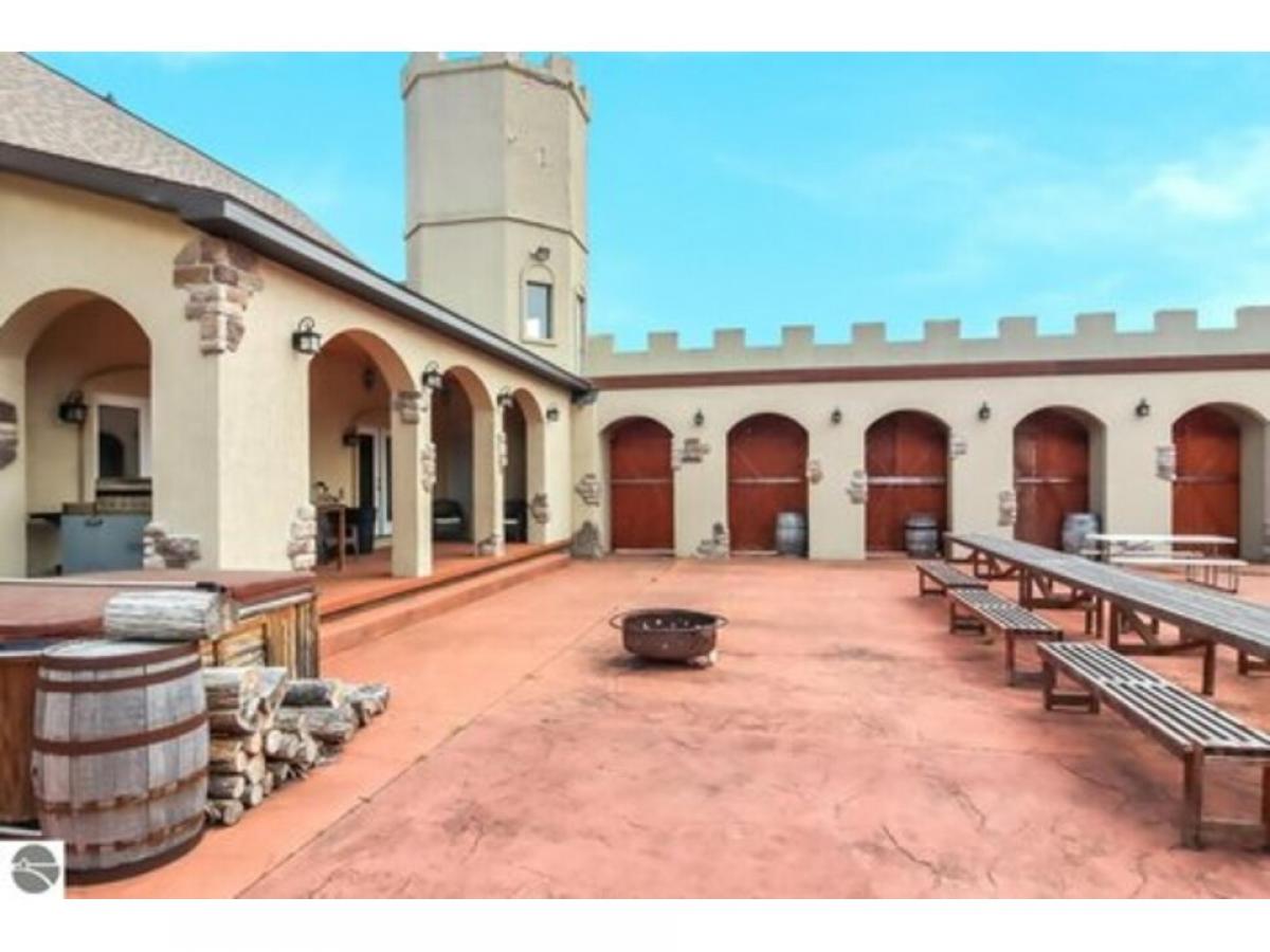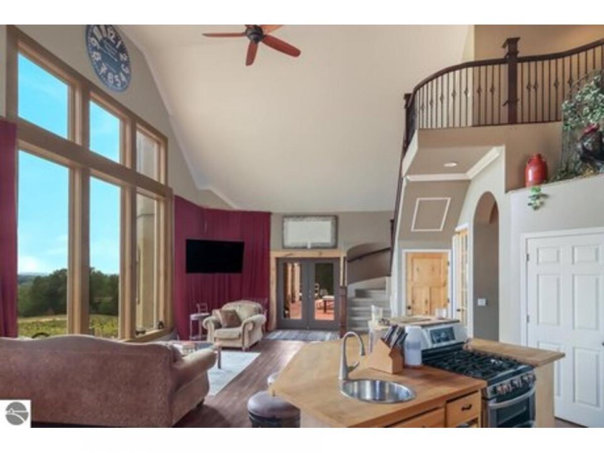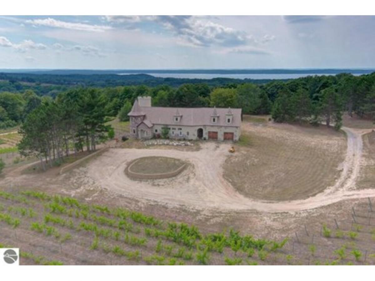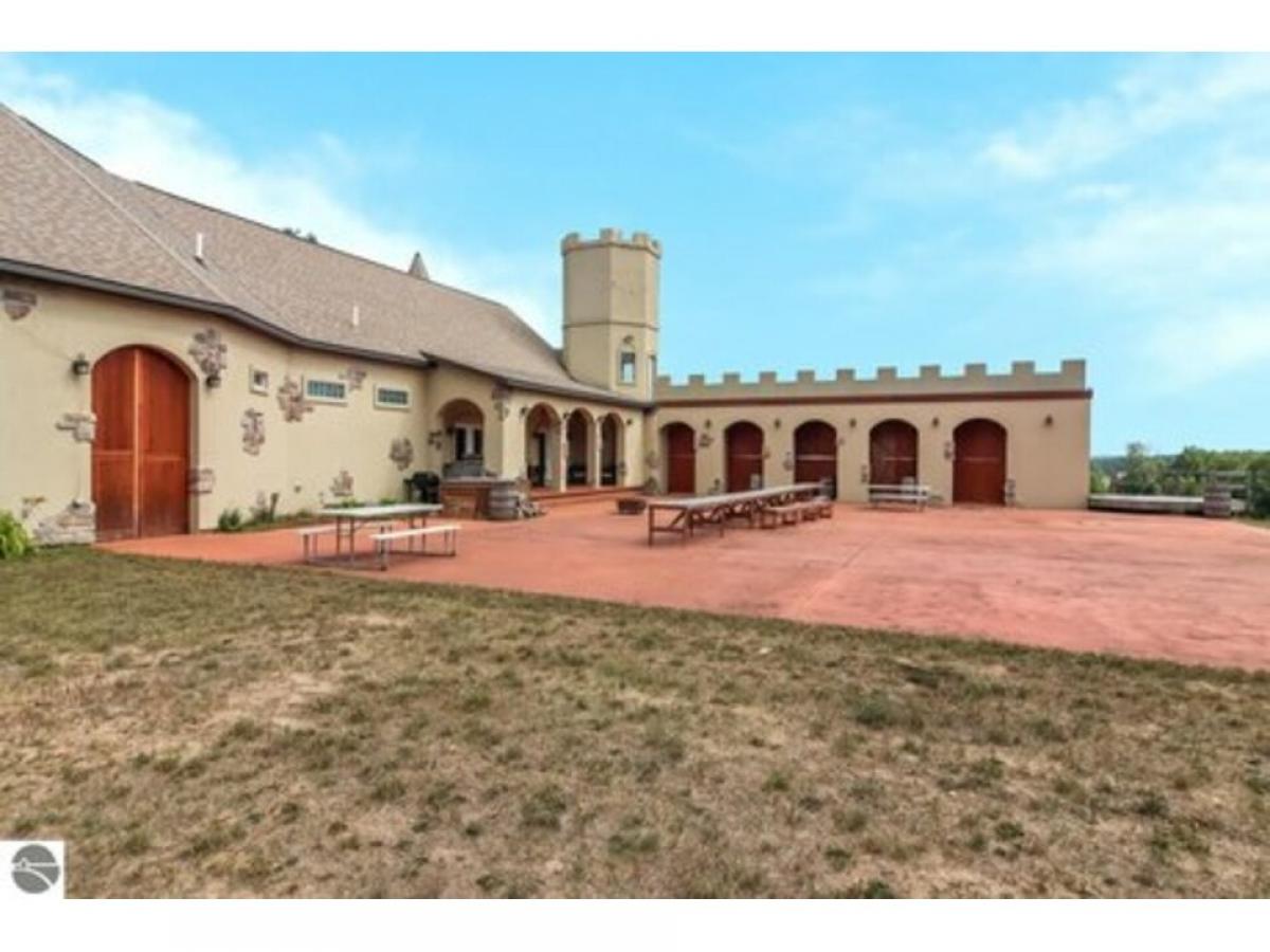Sweeping views from this castle on a hill! Custom home has many features including 20 ft ceilings, private primary suite, media room, in-floor radiant heat, stainless steel appliances and more. Upper level is framed to finish, adding 3 more bedrooms and another bathroom. French doors lead from several rooms to the covered porch which opens to the oversized courtyard, perfect for hosting everything from intimate dinner parties to large celebrations. Finished garage space has sink and counters for party prep. Pole barn has RV hookup. Here is your opportunity to own a unique home with endless possibilities!