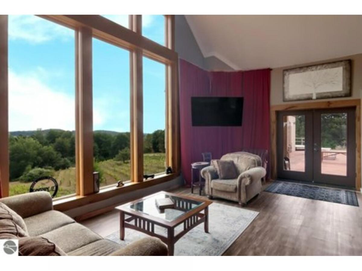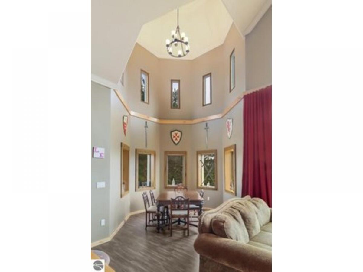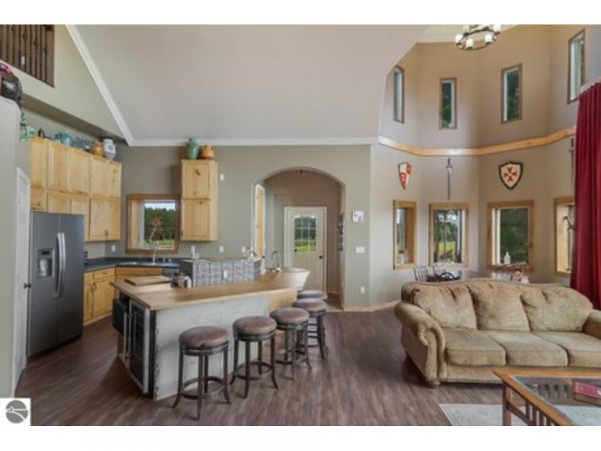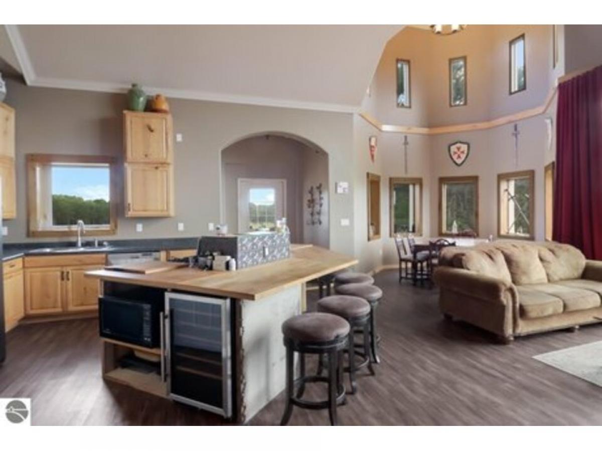 Sweeping views from this castle on a hill! Custom home has many features including 20 ft ceilings, private primary suite, media room, in-floor radiant heat, stainless steel appliances and more. Upper level is framed to finish, adding 3 more bedrooms and another bathroom. French doors lead from several rooms to the covered porch which opens to the oversized courtyard, perfect for hosting everything from intimate dinner parties to large celebrations. Finished garage space has sink and counters for party prep. Pole barn has RV hookup. Here is your opportunity to own a unique home with endless possibilities!