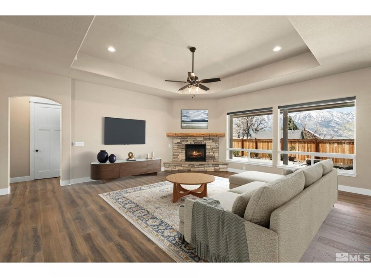 Nestled beneath the majestic Sierras with stunning views of Jobs Peak, this exquisite 3-bedroom home offers luxury at every turn boasting 2,709 sq ft. Kitchen features leathered granite and a beverage fridge, flowing seamlessly into a fireplace-adorned great room. Each bedroom features its own en-suite, while the entertainer#039;s backyard showcases a spa, water feature amp; gas fire pit. W/approx. $100K in landscaping amp; luxury finishes throughout, this Sierra paradise sits moments from Lake Tahoe#039;s adventures.